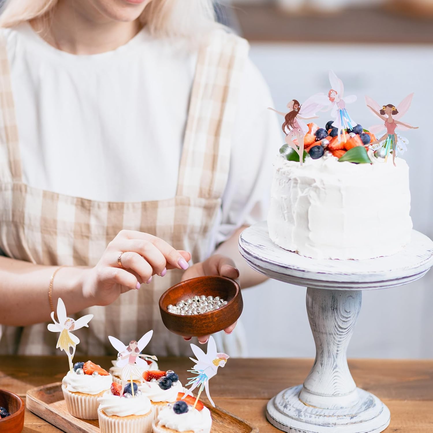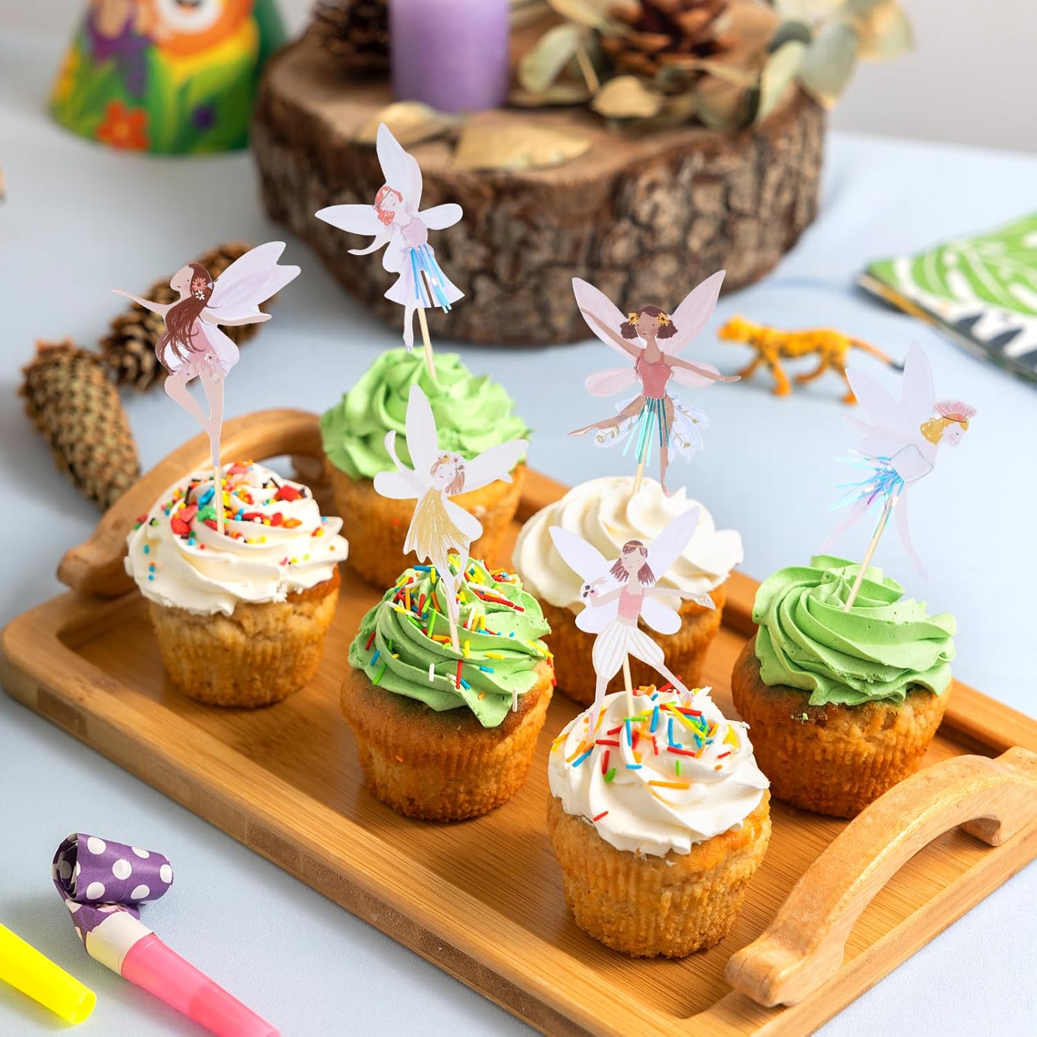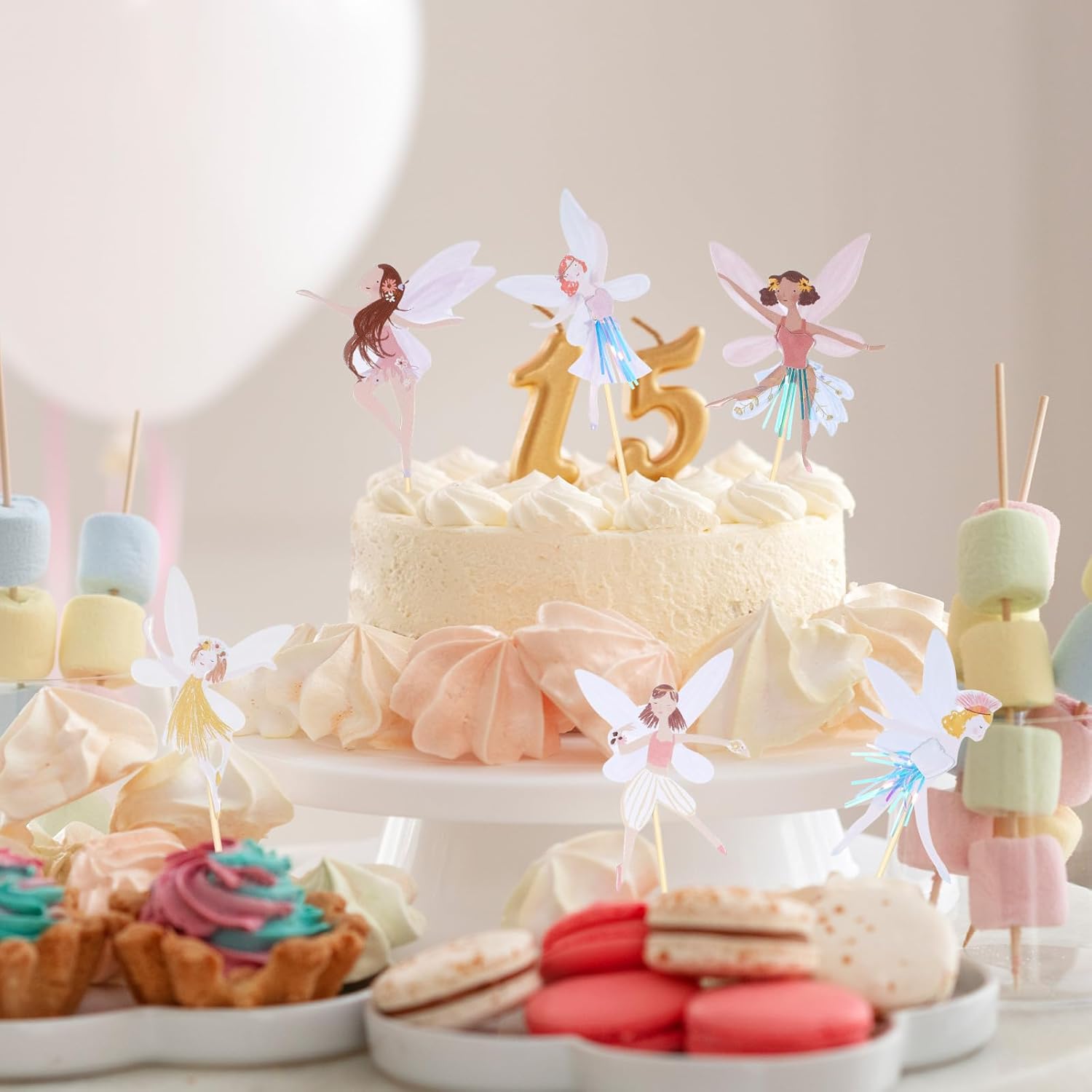 Decorazioni per la festa di compleanno delle fate: migliora la tua festa di compleanno delle fate con questi affascinanti toppers per cupcake con le fate. Perfette per creare un'atmosfera magica, queste decorazioni renderanno i vostri cupcakes il momento clou della festa. Topper per cupcake con fata: ogni set include 24 toppers per cupcake in 6 design unici, realizzati con carta e legno di alta qualità. Queste decorazioni sono preassemblate e pronte all'uso, aggiungendo un tocco stravagante ai tuoi dessert. Decorazioni per feste fatate: queste versatili decorazioni per feste fatate sono ideali per varie occasioni, tra cui compleanni, baby shower e matrimoni. Usali su cupcakes, torte, muffin e altro per deliziare i tuoi ospiti. Bastoncini per decorare cupcake: realizzati con robusti bastoncini per decorare cupcake, questi toppers per torta da favola sono facili da inserire nei tuoi dolcetti. I colori vivaci del bianco, del legno naturale, del rosa, del blu e del giallo completeranno qualsiasi tema della festa. Topper per torta con fata: con toppers per torta con ali d'angelo e un topper per torta con fata ballerina, questi toppers sono progettati per affascinare e incantare. Sono perfetti per aggiungere un tocco di eleganza e fantasia al tuo evento.