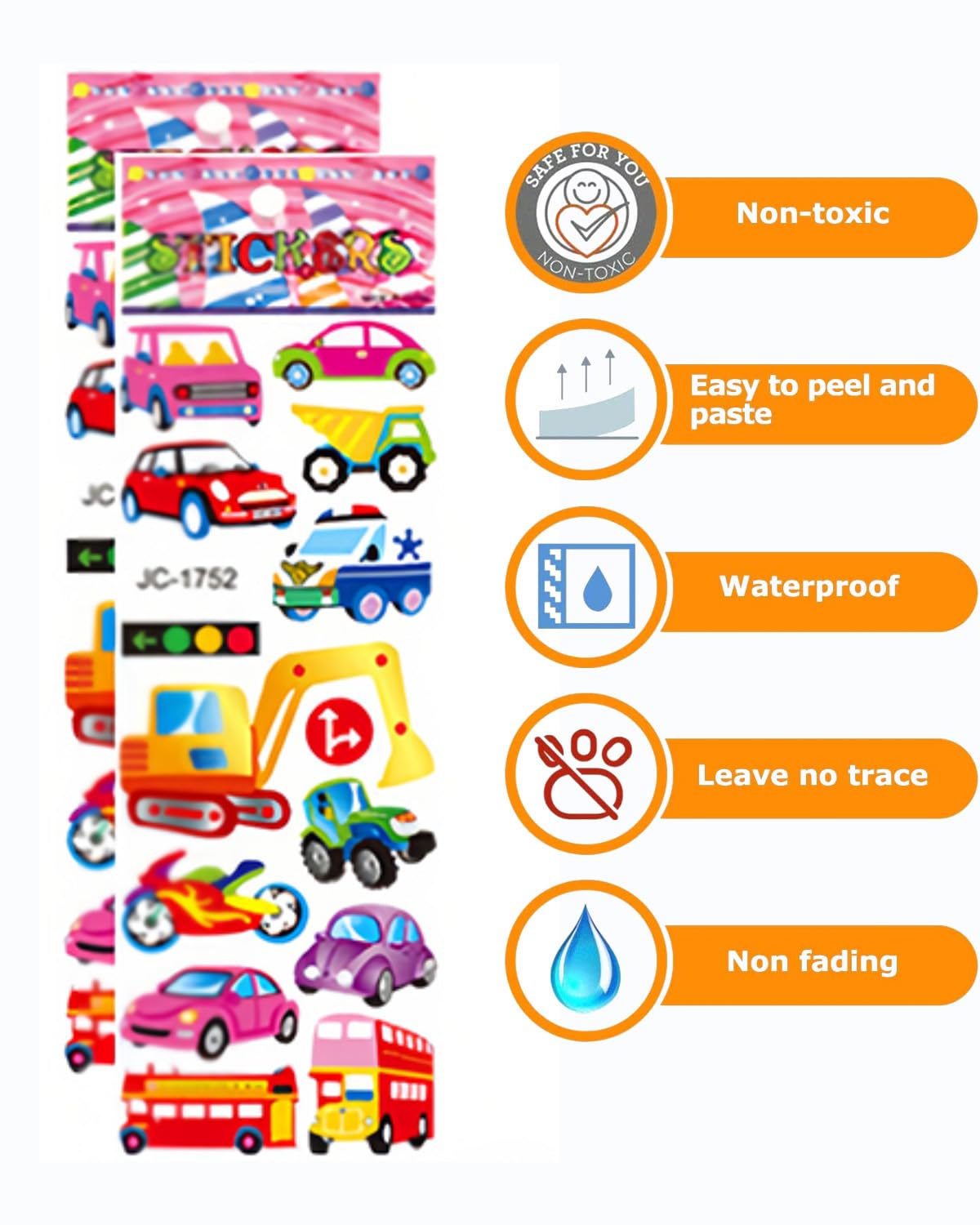 Adesivi 3D per bambini: ogni confezione contiene 24 adesivi. Quasi tutti i modelli sono apprezzati dai bambini. L'ampio contenuto offre ore di divertimento creativo e influenza sottilmente l'immaginazione e la creatività dei bambini. Facili da staccare e attaccare: questi adesivi per bambini sono realizzati in materiale degradabile, impermeabile, si applicano perfettamente a qualsiasi oggetto piatto e sono facili da staccare e attaccare senza lasciare segni. ADATTO PERFETTO: gli adesivi per bambini sono di grande aiuto per ispirare entusiasmo per l'apprendimento e celebrare il successo. Insegnanti e genitori che utilizzano questi adesivi elaborati possono insegnare ai propri figli più conoscenza e buon senso mentre giocano e promuovere le loro capacità pratiche, l'immaginazione e l'interesse per l'apprendimento. Allo stesso tempo, in questo processo il rapporto tra noi e i nostri figli diventa sempre più stretto. ASSISTENTE ALL'APPRENDIMENTO PER BAMBINI: ispira l'amore per l'apprendimento con soffici adesivi 3D per bambini con colori vivaci e immagini vivaci e celebra i successi con questi adesivi carini e divertenti che faranno sentire ogni bambino come una stella e mostreranno loro ciò che hanno fatto bene. Amato sia dai ragazzi che dalle ragazze. Premi e regali: insegnanti e genitori premiano i bambini con adesivi come regali, e i bambini saranno molto felici e sorpresi. I bambini regalano adesivi ai loro amici, che possono anche rafforzare l'amicizia. Borsa ideale per bambini, vacanze come Halloween, Natale o compleanni dei bambini.