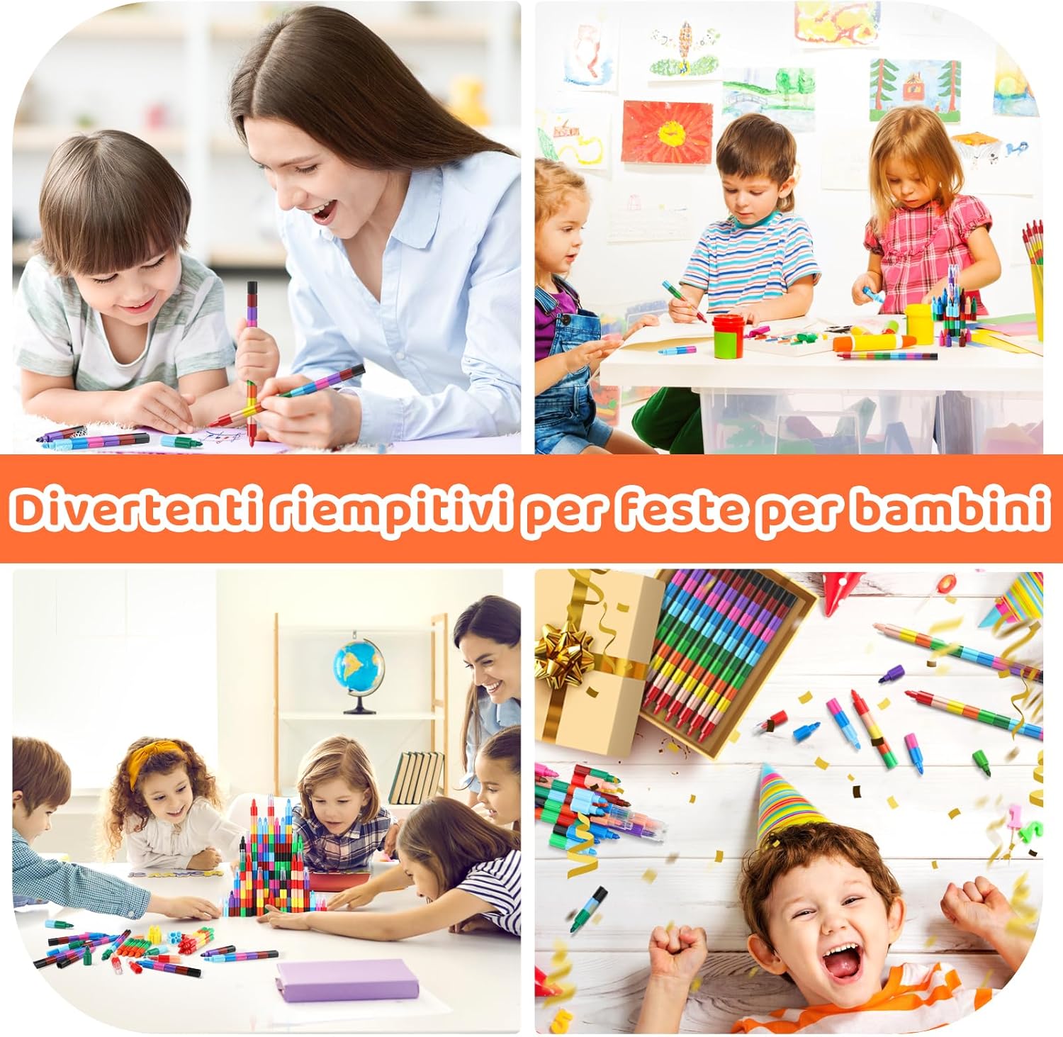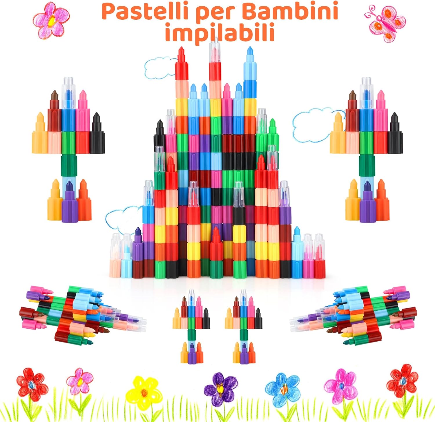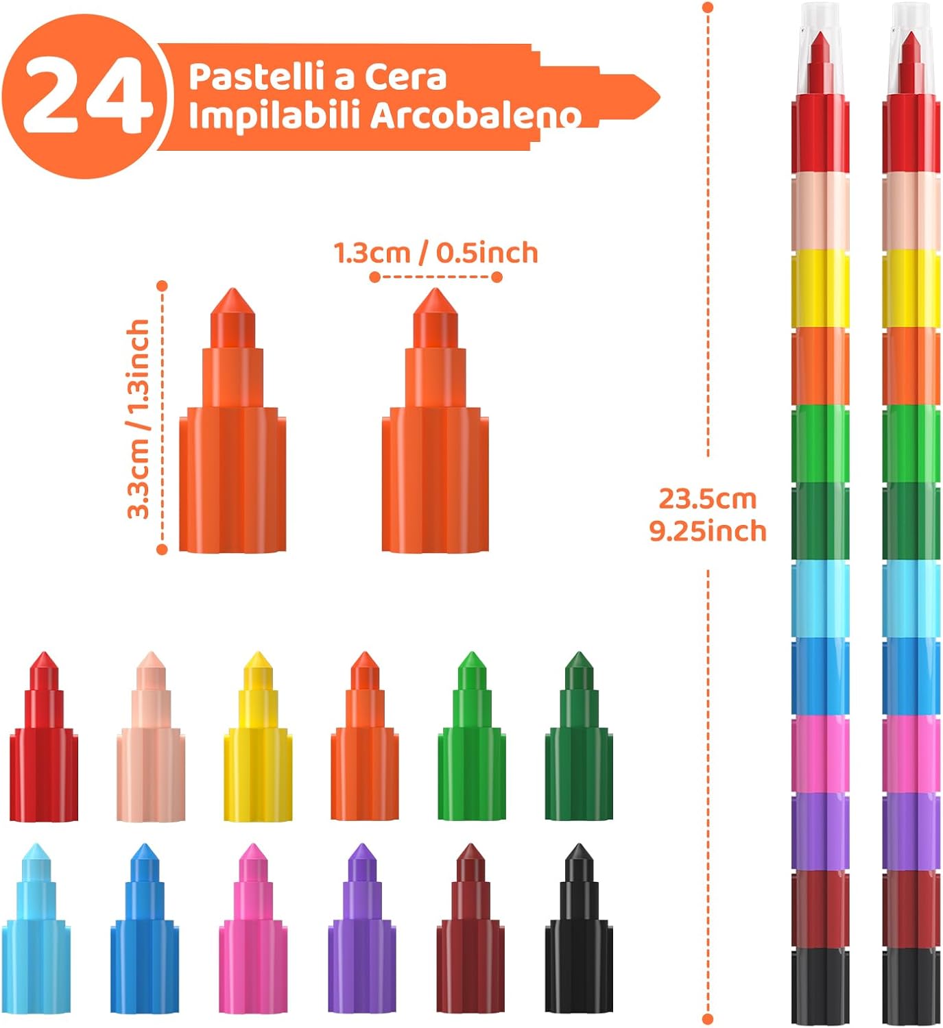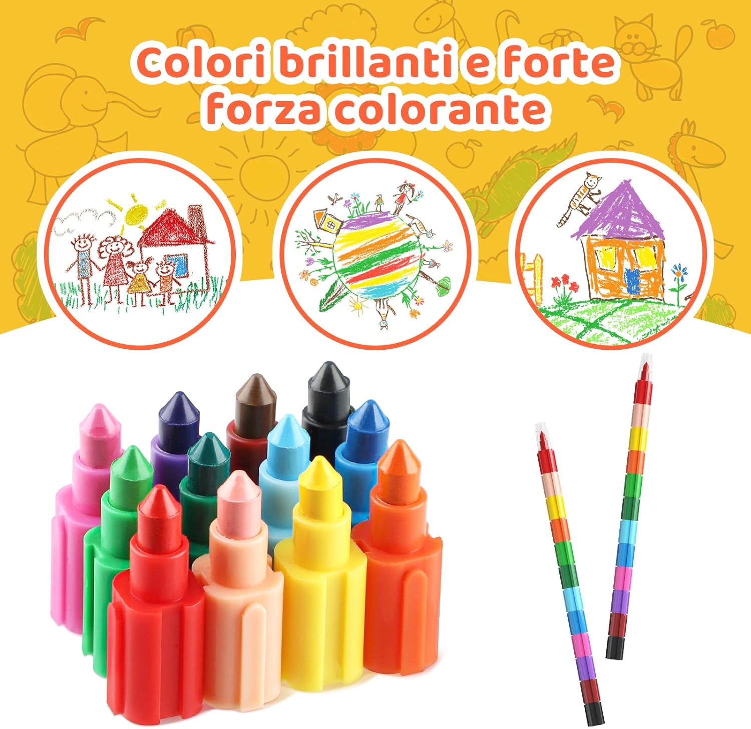 Pastelli a Mattoncino per Bambini Lunghezza Regolabile e Facile da Afferrare Disegno Facile, Sicuro e Durevole Colori Accesi e Accattivanti per i Bambini Svariati Impieghi
