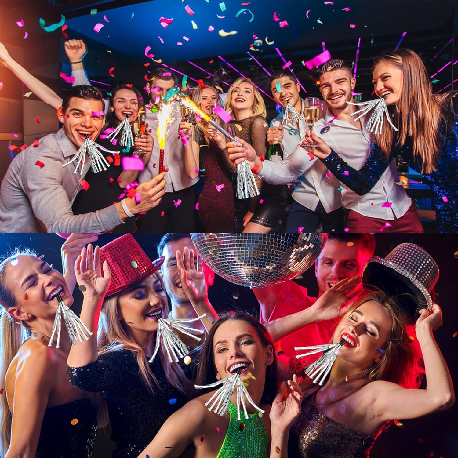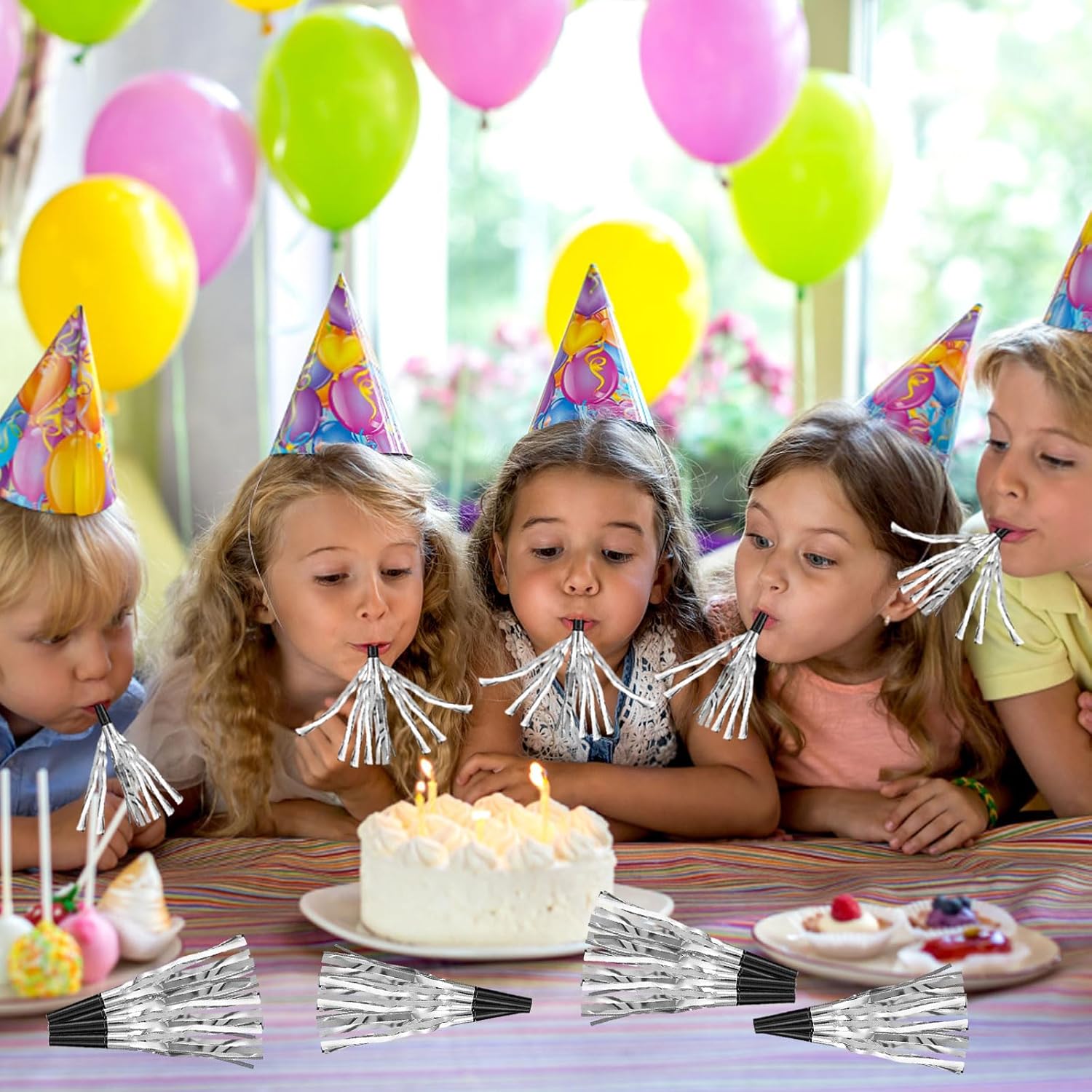 【Contenuto della confezione】 Questo set di giocattoli per bambini contiene 24 pezzi di rumori con frange metalliche, quantità adeguata e colori classici per decorare diversi tipi di feste. 【Sicuro da usare】 I nostri corni di compleanno per bambini sono realizzati in plastica di alta qualità, sicuri e non tossici, non facili da rompere o strappare, affidabili da usare a lungo, adatti per produrre suoni divertenti e interessanti. 【Dimensione corretta】 Ogni generatore di rumore per feste misura circa 0,59 x 6,3 pollici/ 15 x 160 mm, dimensione corretta che può essere facilmente tenuta dalla maggior parte dei bambini, leggero e portatile da tenere con te. 【Forniture perfette per le feste】 Questo corno per feste può vibrare furiosamente e rapidamente, il che è utile per creare suoni interessanti ed effetti visivi allegri, porterà feste di strada, giochi sportivi, eventi di raccolta, attività scolastiche e un'atmosfera più divertente. 【Ampiamente usato】 I nostri divertenti clacson per feste possono produrre suoni divertenti e allegri e ravvivare l'atmosfera della festa. Possono essere utilizzati per decorare feste per bambini, baby shower, addio al nubilato, feste di Capodanno, feste di Natale, feste di compleanno, celebrazioni e altre feste.
