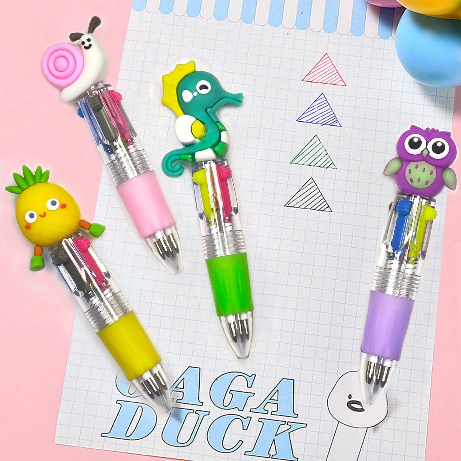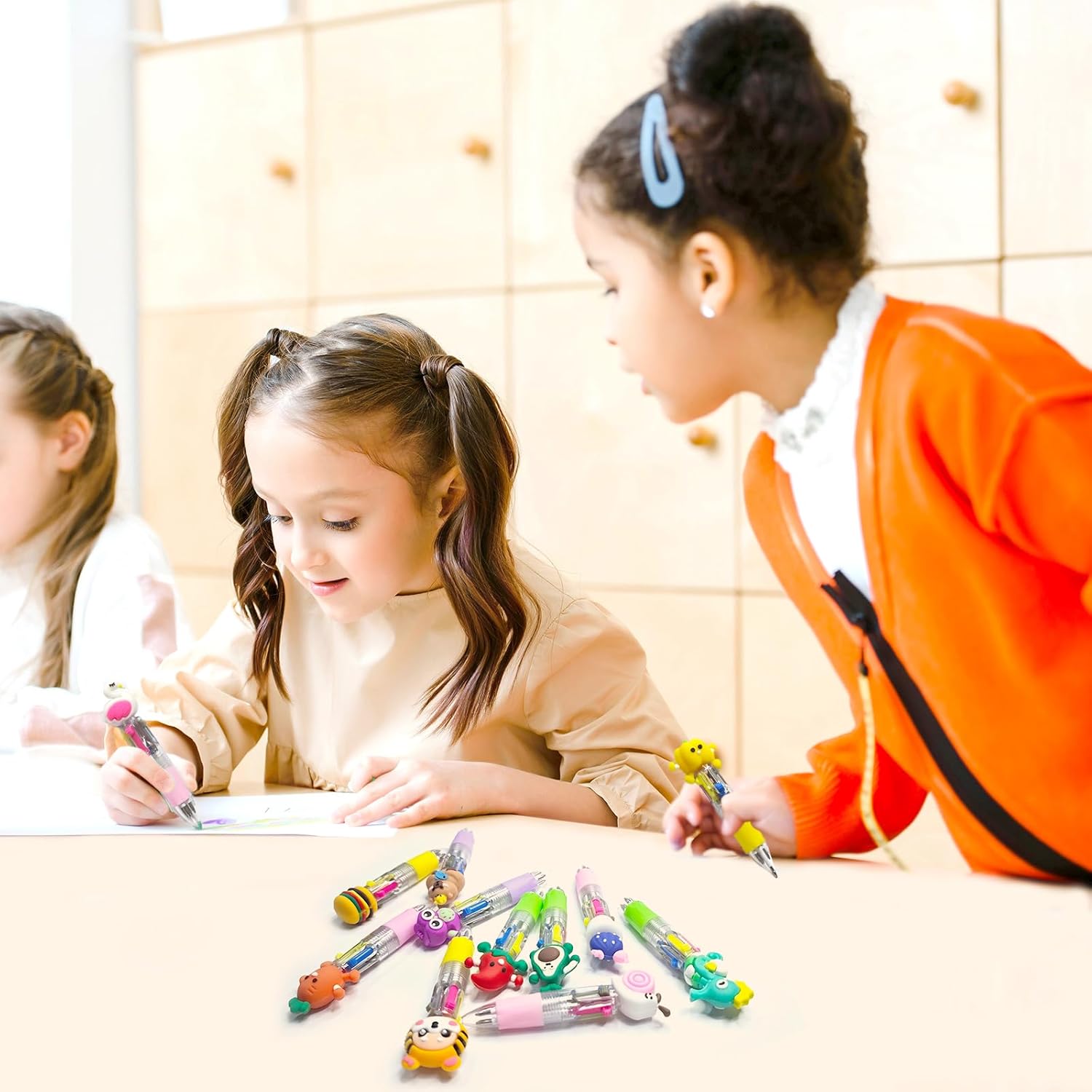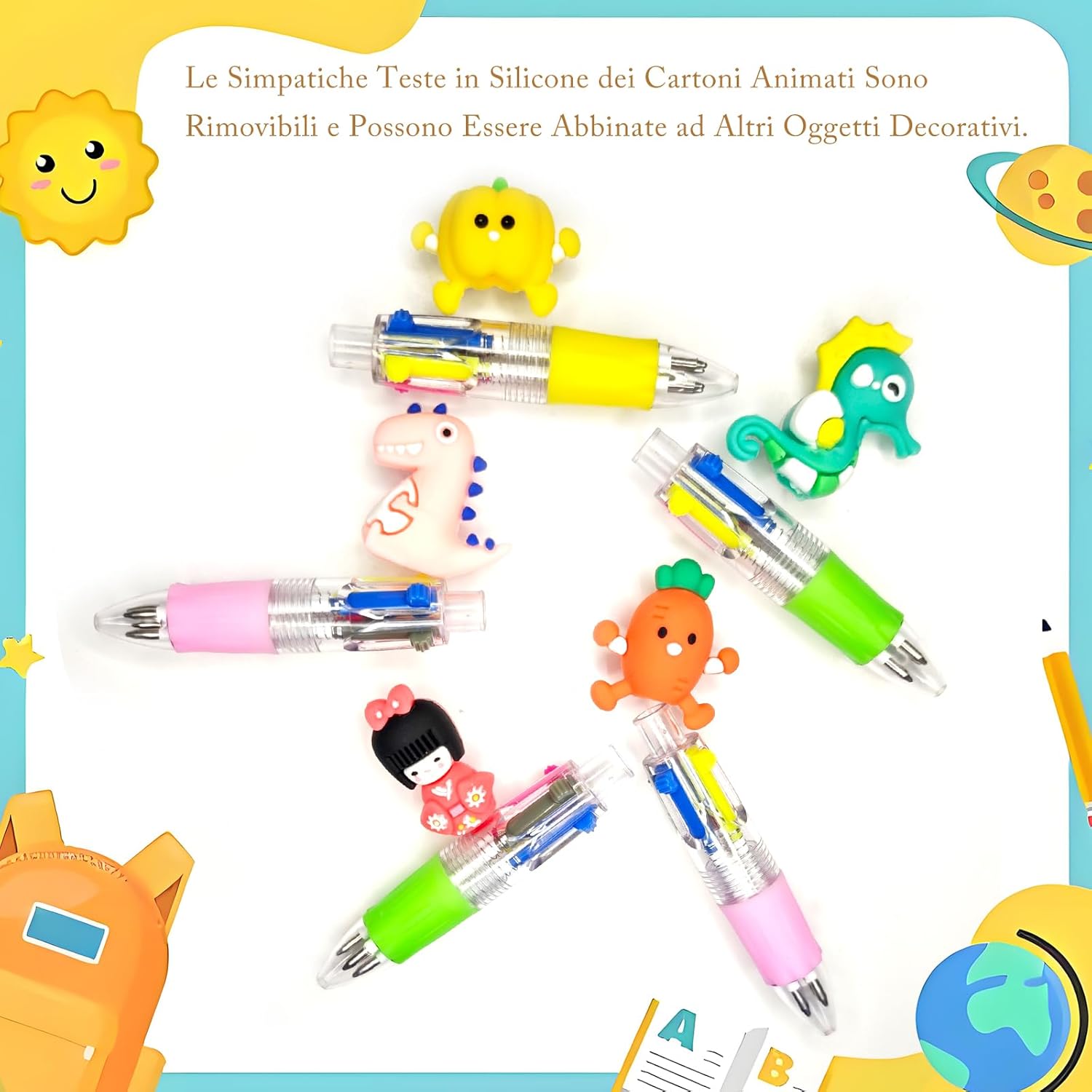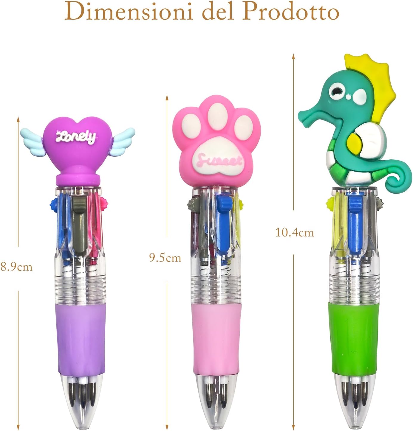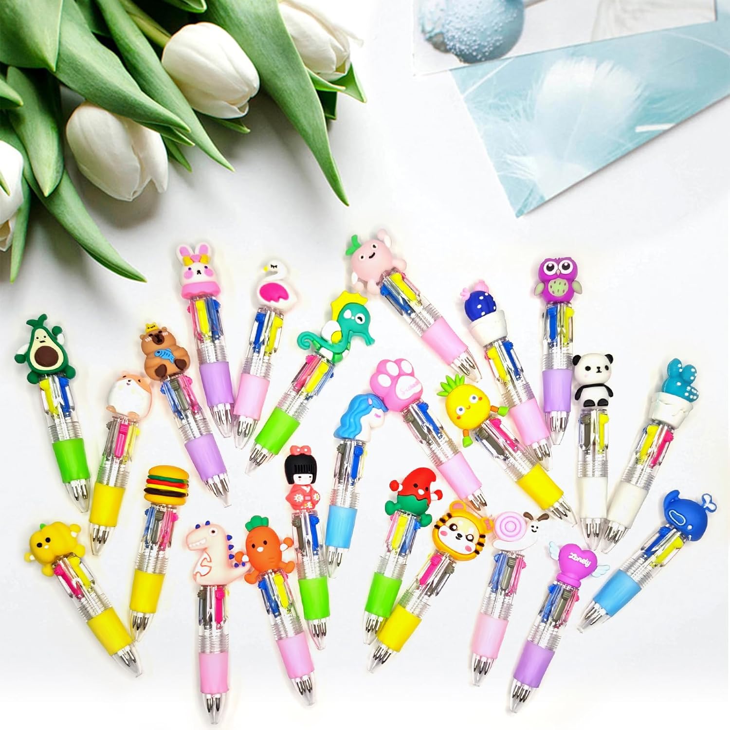 Penne Regalo del Festival per Bambini - Il set comprende 24 penne multicolore, ciascuna con un cappuccio decorato da immagini come ragazze in kimono, hamburger, cigni, dinosauri, criceti, gufi, lumaca, panda, cactus, ananas, zucca, ecc. Penna Multicolore per Bambini - Queste penne multicolore composto da 4 colori brillanti - blu, rosso, verde e grigio, permettono ai bambini di creare biglietti festivi e decorazioni. Soluzione ideale come regalino per la festa a scuola o per caccia al tesoro, aggiungendo magia alle attività del festival. Penne a sfera Carine - Ogni penna presenta un adorabile design a fumetti, penne 4 colori sono ideate per porta gioia e divertimento illimitato ai tuoi bambini.I deliziosi motivi e i colori vivaci stimoleranno la fantasia e la creatività dei vostri bambini. Regalo di Festival per Bambini - Ogni penna Kawaii ha un design adorabile che i bambini adoreranno, Il penne animali Kawaii sono perfette regalo per bambini per compleanno,Pasqua,Giornata dei bambini,Regali di Halloween, Natale,Capodanno per bambini. Sono perfette come regalini fine festa compleanno o come premi incentivanti in classe, stimolando la voglia di apprendere tra i più piccoli. Regalini Festa Compleanno per Bambini - Questi set di penne a sfera colorate sono l'aggiunta perfetta come gadget compleanno bambini, ideali per aggiungere un tocco di colore unico alla celebrazione. Il set penne multicolore sono perfette regali compleanno bambini.