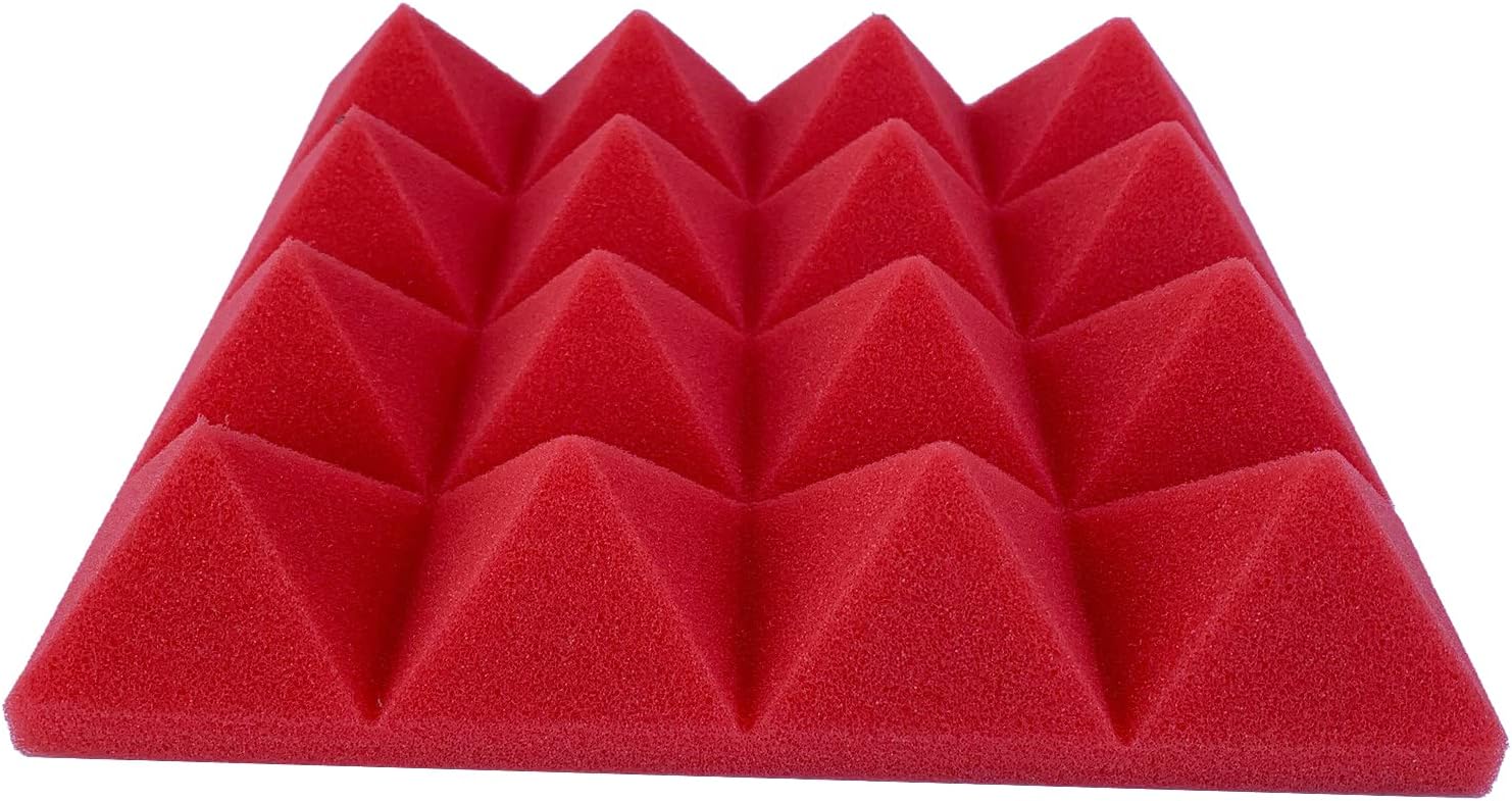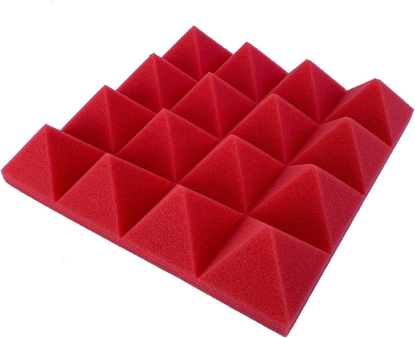 24 Pezzi 25X25X5Cm Studio Acustico Schiuma Insonorizzata Piramide Isolamento Acustico di Trattamento Assorbimento Acustico Nero + Rosso