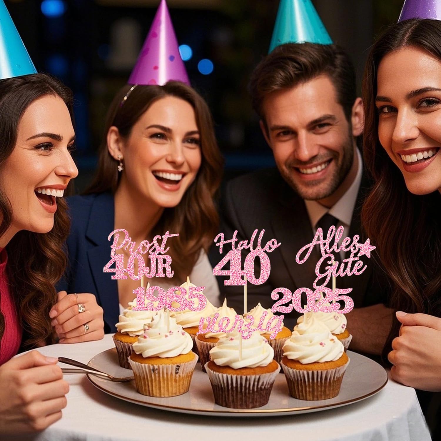 Contenuto della confezione: 24 decorazioni per cupcake in 6 diversi modelli, tra cui "Cheers 40", "1985", "2025", "Hello 30" e "forty". Possono essere abbinati a diverse tipologie di cupcakes per rendere la vostra torta ancora più invitante. Materiali di alta qualità: la decorazione della torta del 40° compleanno è realizzata in cartone scintillante e bastoncini di legno da 2 mm x 8 cm. È atossico e sicuro per gli alimenti, durevole e robusto. La parte anteriore è liscia. Facile da usare: queste decorazioni per il 40° compleanno per donna devono solo essere incollate ai bastoncini di legno con tratti adesivi. Facile da usare. Devi solo inserirli nella torta o nel cupcake e regolare l'altezza di conseguenza per ottenere risultati migliori. Eccellente decorazione per torte: questi toppers per torta di 40 anni sono adatti per decorare torte, cupcakes, gelati, frutta, dessert, biscotti e formaggio, ecc. Ciò renderà il tuo cibo ancora più delizioso e la tua festa più divertente! Nota: la nostra priorità è la vostra soddisfazione. Se non sei completamente soddisfatto del prodotto, ti rimborseremo completamente! Queste decorazioni per cupcake non sono destinate al consumo e servono solo come decorazione. Non utilizzarli nel forno o nel microonde. Descrizione del prodotto