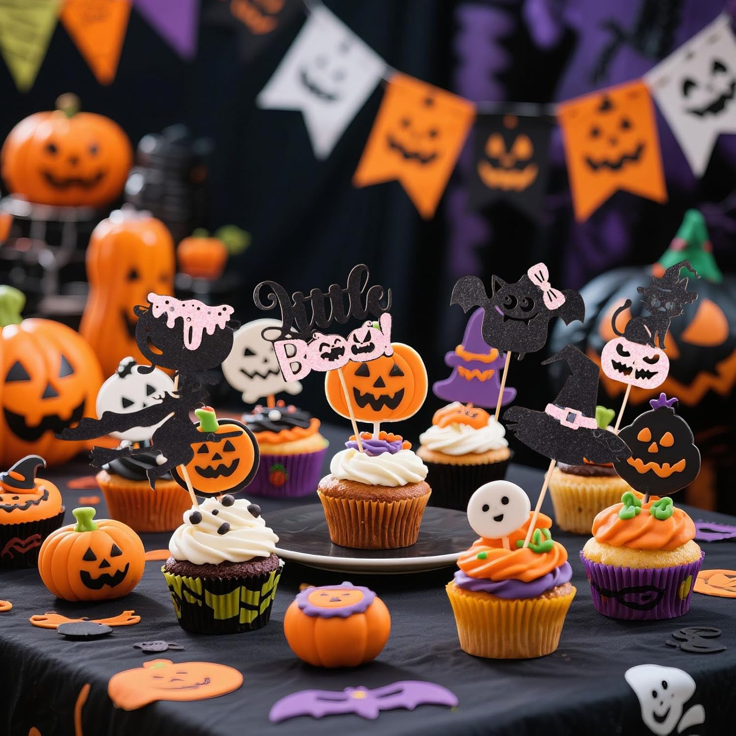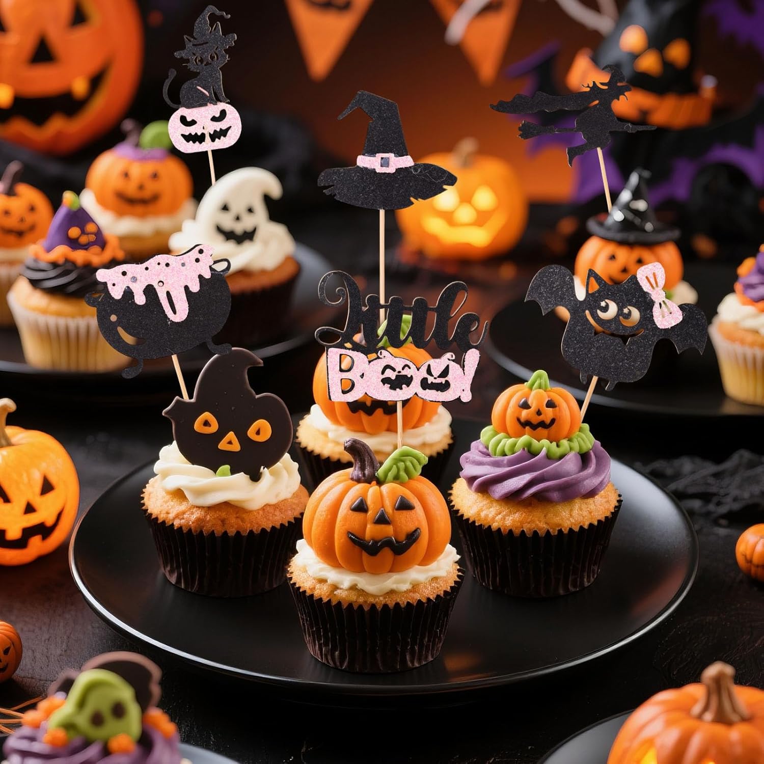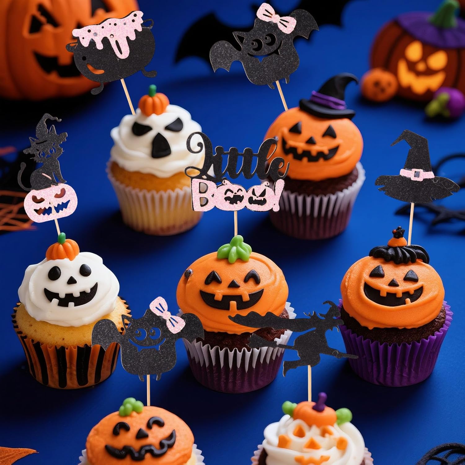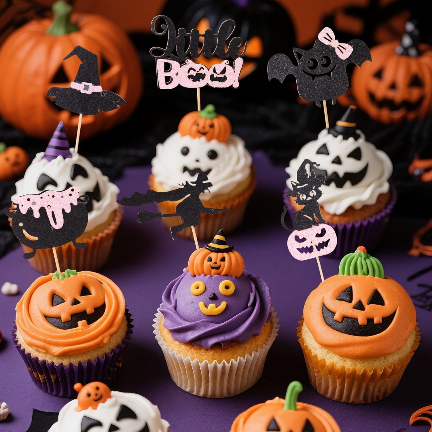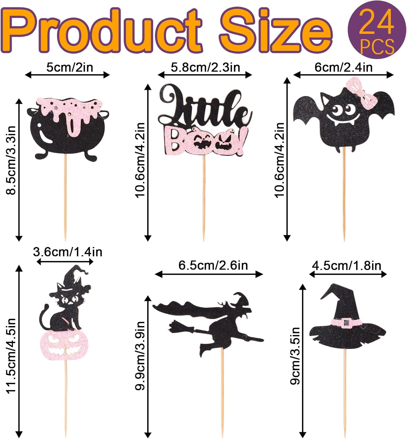 Contenuto del pacchetto: riceverai 24 pezzi di topper per decorazioni per torte di Halloween glitter rosa e nero, che possono essere inseriti nella torta per rendere la torta della tua festa più interessante e festosa. La quantità è sufficiente per decorare tutti i tuoi dessert di Halloween. Materiale premium: questi topper per torte sono realizzati con carta di buona qualità e scelte di legno, che sono durevoli e non facili da piegare e sbiadire. I bordi sono fluidi per garantire la sicurezza, quindi puoi usarli con fiducia. Dimensione del prodotto: questi topper per torta hanno sei diversi design, con dimensioni di 9x4,5x0,2 cm per cappello, 9,9x6,5x0,2cm per strega, 8,5x5x0,2cm per pentola, 10,6x6x0,2cm per bat, 10,6x5,8x0,2cm per piccolo boo e 11,5x3,6x0,2cm per nero gatto. La dimensione è adatta per soddisfare le esigenze dell'uso. Facile da usare: ogni decorazione di torta di Halloween è assemblata, basta inserirle in torte, cupcakes, gelati, dessert e altri dessert e regolare l'altezza per ottenere l'effetto di presentazione perfetto, rendendo il tuo dessert di torta più attraente. Decorazione perfetta: queste graziose decorazioni per la torta glitter a tema Halloween sono perfette per feste a tema di Halloween, docce per bambini, compleanni dei bambini e attività di dolcetto o scherzetto, brillano brillantemente sotto la luce e migliorano l'atmosfera della festa.