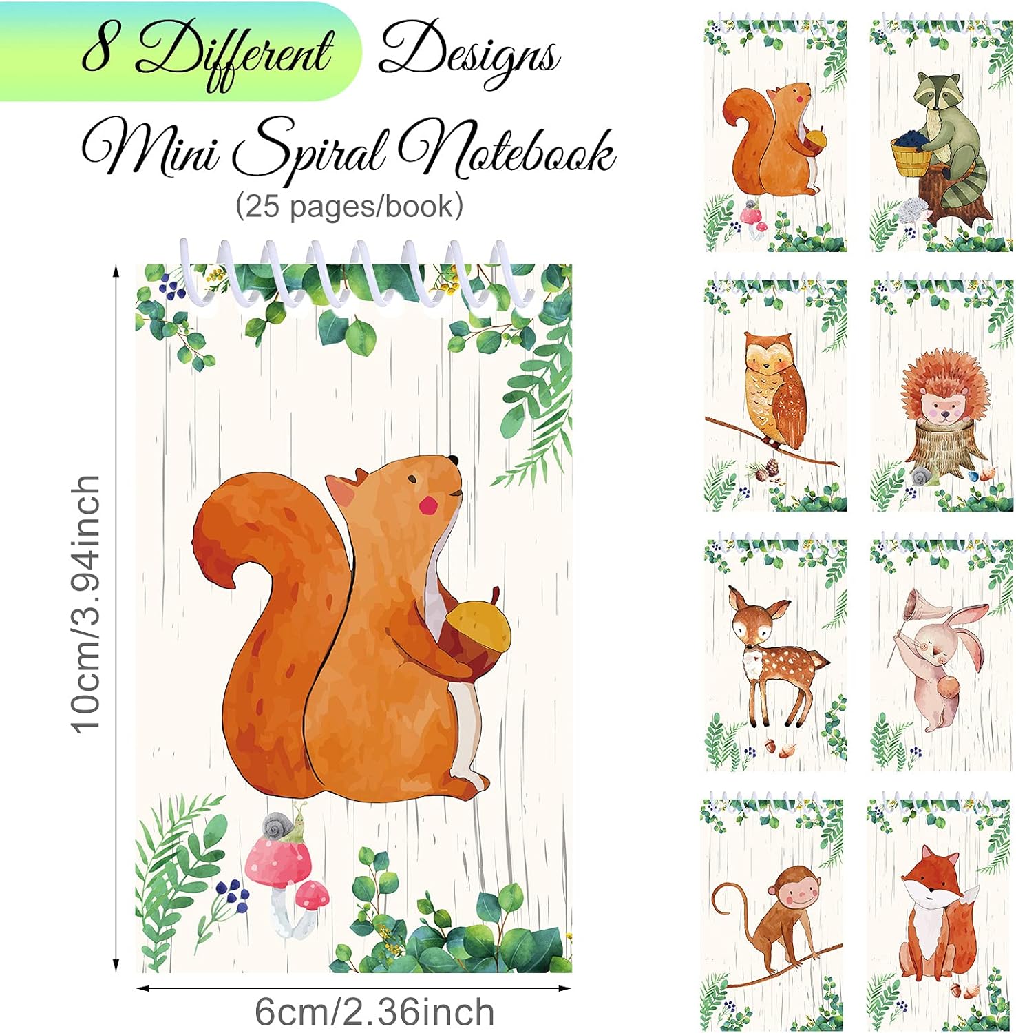 Grande quantità: il set di bomboniere per le creature degli animali del bosco include 24 mini quaderni a spirale, un grande successo per la festa di compleanno a tema delle creature dei boschi; Squisito e adorabile, accolto dalla maggior parte delle persone Elemento a tema creatura del bosco: i mini quaderni con creatura del bosco includono 8 disegni diversi, come procione, scoiattolo, gufo, cervo e così via, 3 per ogni disegno, aggiungendo un tocco colorato alla tua festa di compleanno a tema creatura del bosco. Dimensioni adatte per l'uso: il mini quaderno a spirale con animali del bosco misura circa 6 x 10 cm/ 2,36 x 3,94 pollici, piccolo e leggero, comodo per il trasporto quotidiano; Inoltre ogni quaderno include 25 fogli di carta, sufficienti per scrivere e disegnare; Bello per i premi in classe Comodo da usare: i quaderni delle mini creature sono vuoti e lisci, comodi per scrivere o disegnare bellissime immagini, 8 diversi design tra cui scegliere; Il tuo piccolo membro della famiglia può scrivere un diario personale in questi quaderni delle creature del bosco Accolto con favore dalla maggior parte delle persone: il quaderno delle creature del bosco è applicabile per feste a tema animali della foresta, feste di compleanno a tema creature del bosco, regali; Anche una grande ricompensa nelle aule o nelle attività scolastiche per gli studenti; Nel frattempo, puoi regalarlo alla tua famiglia, ai tuoi amici, agli studenti, ecc., aggiungendo un tocco di animale della foresta al tuo materiale scolastico e alle feste