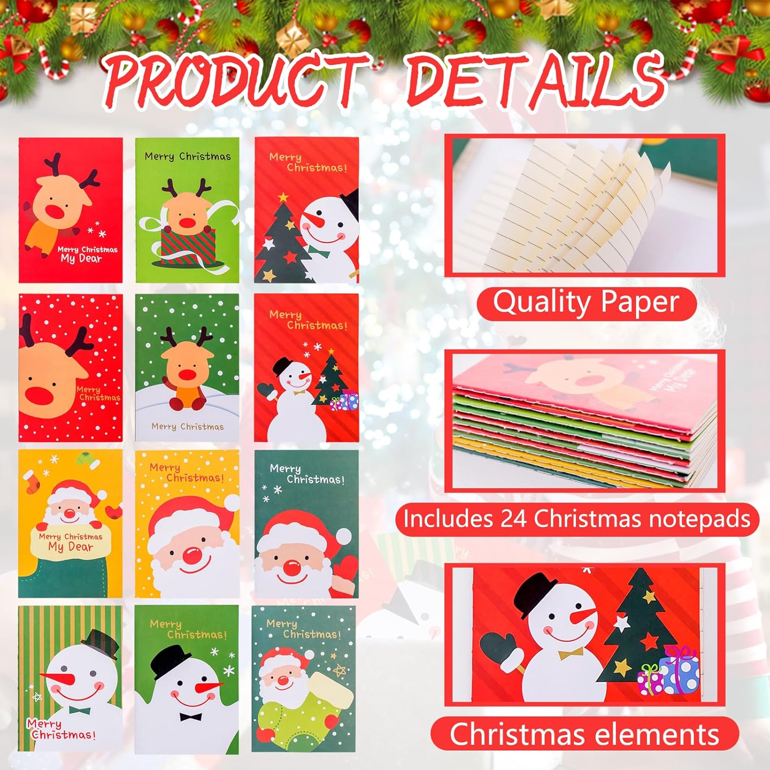 Perfetto per le vacanze di fine anno: ogni quaderno è decorato con un iconico motivo natalizio, come l'albero, il pupazzo di neve, la renna o anche Babbo Natale: questi elementi festivi immergono subito grandi e piccini nella calda atmosfera delle feste natalizie. Questi block notes sono ideali per ravvivare le merende invernali, scambiarsi piccoli regali o decorare la tavola delle feste con un tocco di cancelleria originale. Formato pratico da portare ovunque: ogni mini taccuino misura 8,5 x 12 cm, un formato compatto perfetto da infilare in tasca, in borsa o in un cassetto: puoi tenerlo facilmente a portata di mano per appuntare idee, disegnare o scrivere un dolce bigliettino durante le vacanze. Questo formato intelligente è adatto sia ai bambini che agli adulti ed è adatto a tutti i momenti di ispirazione spontanea durante le festività. Ideale per regali e premi scolastici: con 24 pezzi per set, questi quaderni sono perfetti come piccoli regali scolastici, giochi di classe o premi per gli studenti durante le feste di Natale: il loro design allegro e la pratica utilità li rendono ideali per riempire una calza di Natale o accompagnare un biglietto di auguri. Un indispensabile per insegnanti, facilitatori e genitori che cercano sorprese economiche e apprezzate. Ampia varietà di disegni festivi: ogni quaderno presenta un motivo casuale tratto da una serie di disegni invernali colorati e allegri, garantendo una sorpresa ogni volta che lo apri: la diversità delle illustrazioni mantiene i bambini interessati e arricchisce la decorazione a tema dei tuoi eventi di fine anno. Che si tratti di un calendario dell'Avvento fai da te o di una fiera, questi quaderni fanno sempre scalpore. Imballaggio accurato e pratico: i 24 quaderni sono raggruppati in un'unica scatola, ideale per la conservazione e la distribuzione: questo imballaggio è pensato per un facile accesso e un trasporto senza preoccupazioni, perfetto per insegnanti, organizzatori di eventi o famiglie numerose che desiderano condividere lo spirito natalizio con semplicità e organizzazione.