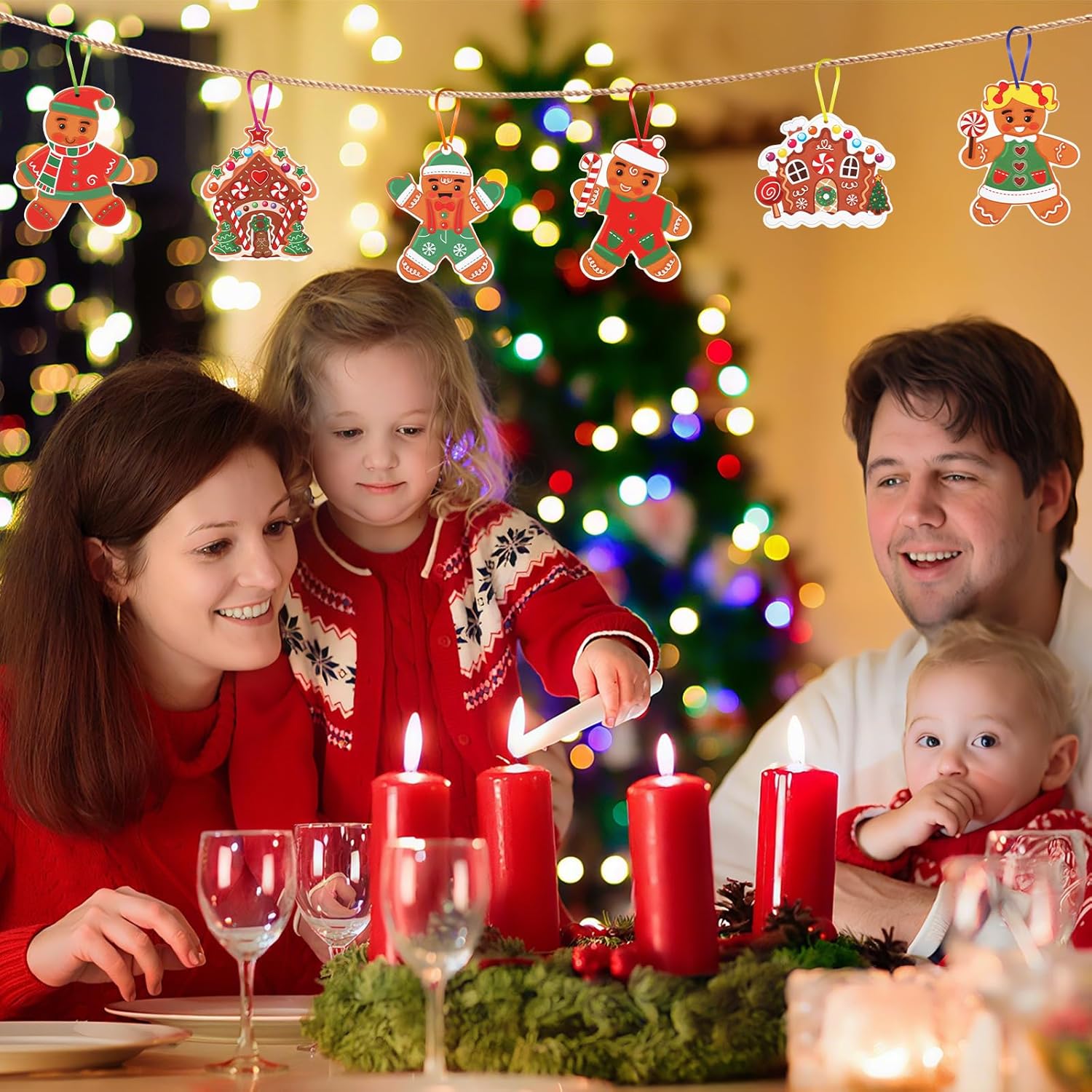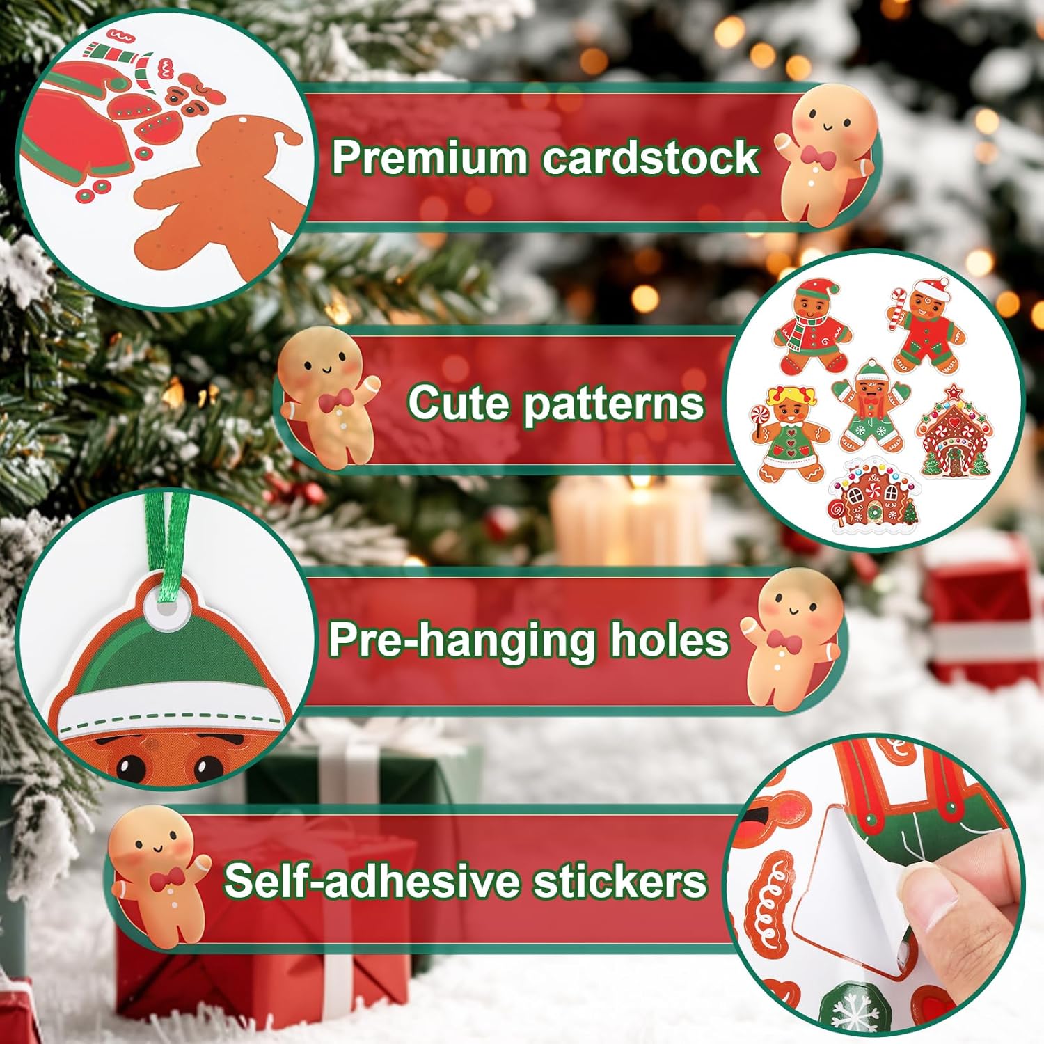 Set di decorazioni a forma di omino di pan di zenzero: il set include 24 biglietti decorativi con omino di pan di zenzero, 24 adesivi e 24 nastri. I ciondoli a forma di omino di pan di zenzero comprendono una varietà di elementi carini come cappelli di Natale, sciarpe, caramelle, bastoncini, ecc. e aggiungono un'atmosfera festosa alla vostra festa di Natale Materiali di alta qualità: i set fai da te per bambini sono realizzati in carta di alta qualità, ecologica e durevole, sicura ed ecologica, colorata, non facile da sbiadire, splendidamente stampata e rifinita con angoli lisci che non danneggiano le mani, in modo che i bambini possano usarlo tranquillamente Divertimento fai da te: fai da te per il fai da te per bambini, un lato può essere decorato con adesivi; l'altro lato è bianco per dipingere e scrivere benedizioni, stimola pienamente l'immaginazione e la creatività dei bambini, ispira il potenziale artistico e migliora le abilità artigianali Facile da appendere: nella parte superiore del fai da te si trova un piccolo foro. Con il nastro in dotazione puoi appenderlo ovunque tu voglia decorare: su finestre, porte, caminetti, pareti, alberi di Natale, cucine, ecc., rendendo il tuo Natale più interessante e natalizio Ampia applicazione: le decorazioni per albero di Natale a forma di Babbo Natale sono molto adatte per ragazze e ragazzi e possono essere utilizzate come decorazioni natalizie, decorazioni invernali, regali di compleanno, decorazioni per feste, ricompense di classe, libri di collezione, ecc. Sono anche molto adatti per compiti scolastici, lavori artigianali a casa, ecc.
