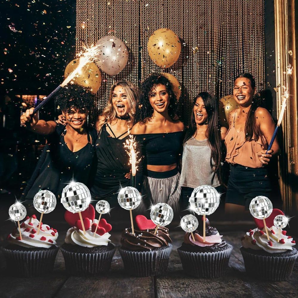 Splendido fascino visivo: le decorazioni della palla da discoteca sono progettate con lenti in vetro riflettente quadrato che riflettono la luce in angoli eccentrici, contribuendo a creare un display eccezionale e accattivante. Le 4 diverse dimensioni aggiungono spettacolare senso di profondità alla decorazione della tua festa. Alta qualità e dettagliati: questi toppers per cupcake con palline da discoteca sono realizzati in schiuma e rifiniti con rettangoli a specchio lucidi. Ogni pezzo è realizzato meticolosamente per catturare l'atmosfera retrò e la vibrante energia della scena disco degli '70. Flessibile per qualsiasi evento o celebrazione: i nostri toppers sono perfetti per aggiungere un tocco '70 a qualsiasi evento. Che si tratti di addio al nubilato, , baby shower, feste di compleanno o feste a tema '70, queste decorazioni per torte renderanno sicuramente memorabile il tuo evento. Confezione impressionante e dimensioni : questa confezione include un totale di 24 toppers per torta. Perfetto per personalizzare e ravvivare le torte o i cupcakes della tua festa. Crea un'atmosfera da discoteca : porta il divertimento e l'eccitazione di una festa in discoteca degli '70 direttamente ai della tua celebrazione. La finitura lucida e la caratteristica che respinge la luce dei toppers per cupcake con sfera da discoteca aggiungeranno sicuramente una scintillante atmosfera da discoteca al tuo evento.