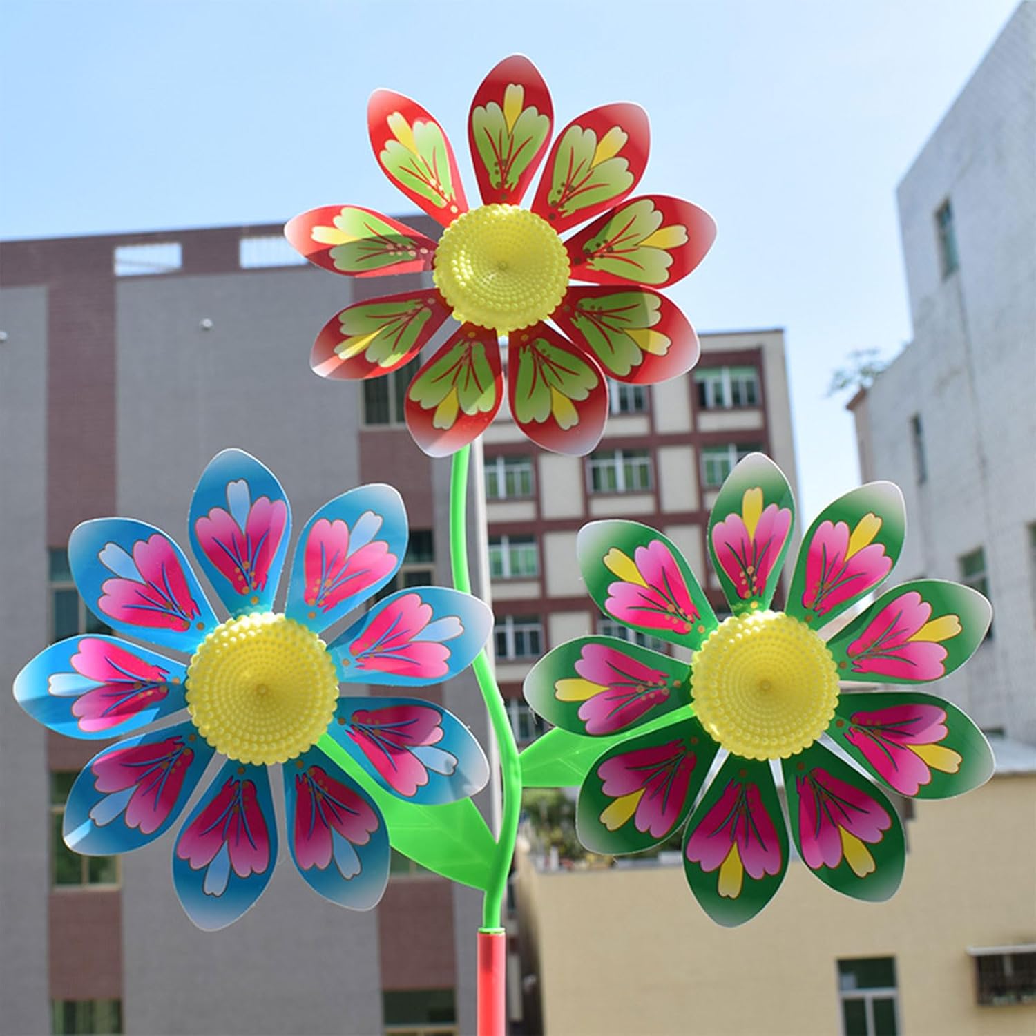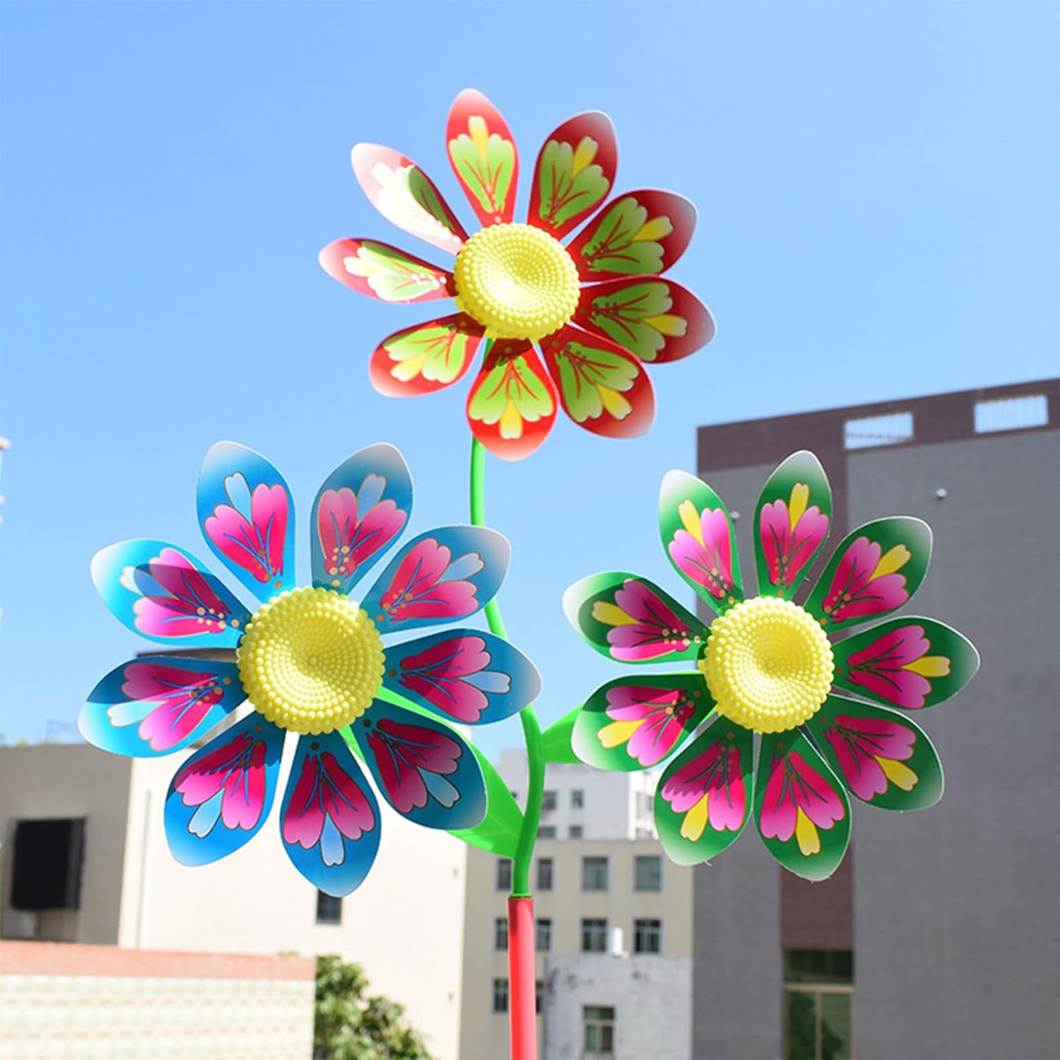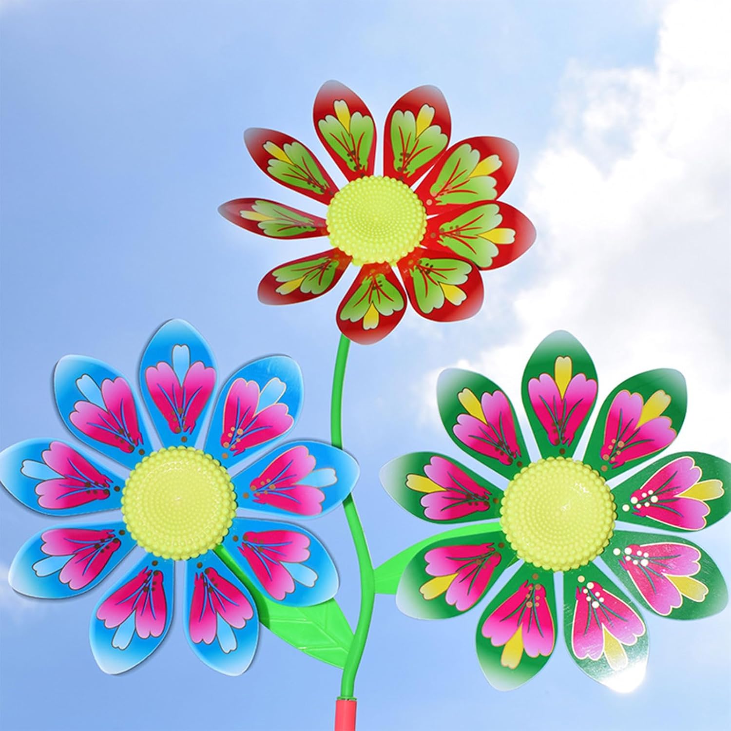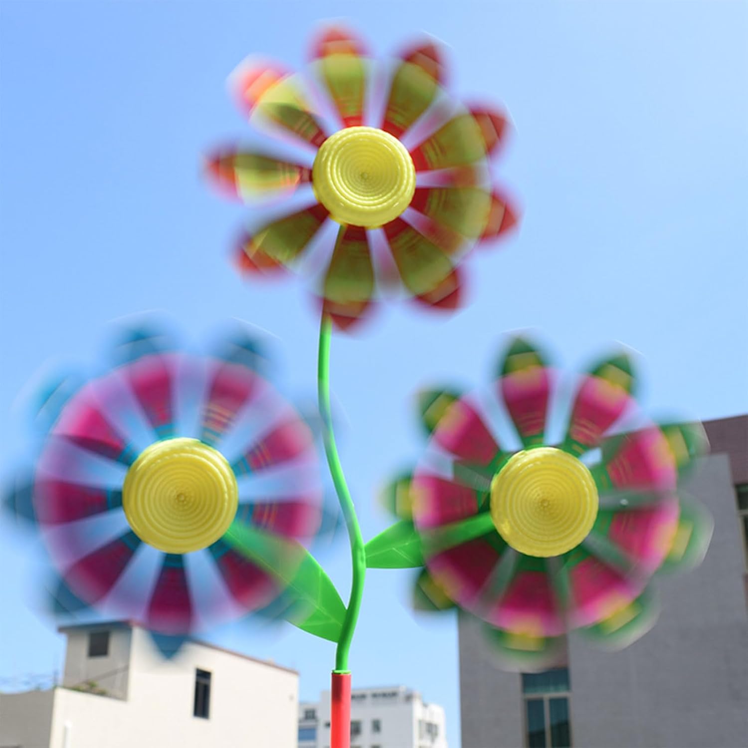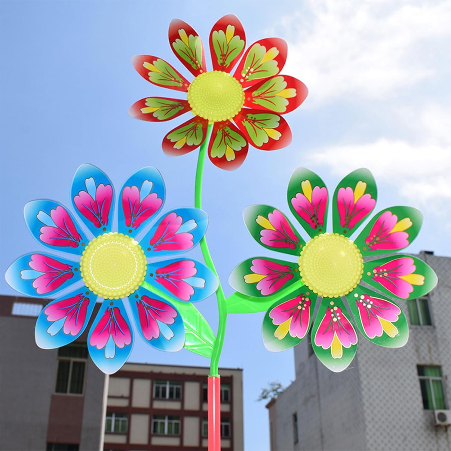 Colorful 3 Flower Designed Windmill: The windmill toy design with bright colors & triple flower rotary for head, 10 pezzi random color in pack, dazzling and wear resistant, the spinners you received are disassemble pieces, stimulate kids to their pinwheel portable size to carry out, promuovere la mano dei bambini coordinazione e mano s on ability Materiale di sicurezza: girandola realizzata in materiale plastico per qualificazione, non tossico con colorato Giocattolo classico mulino a vento: classico kit di giocattoli Windmill che il bambino potrebbe giocare all'aperto, quando corre veloce, il mulino a vento ruota di conseguenza, bellissimi e belli sport all'aria aperta per bambini, adatti per la decorazione di cortili o balconi Regalo ideale: uno per bambini come regalo di compleanno, regalo di Natale, set da gioco all'aperto, per bambini, bambini e ragazze adatto per giocare all'aperto, spiaggia, giardino, spiaggia. Il pinwheel può essere utilizzato anche come decorazione perfetta per feste di varietà, come matrimoni, anniversari, riscaldamento della casa, ecc Ampia applicazione: il giocattolo rotativo con ruote è adatto per il giardino del cortile, decorazioni, bambini all'aperto per giochi, decorazioni per il prato nuziale, campeggio, festa, decorazione per picnic
