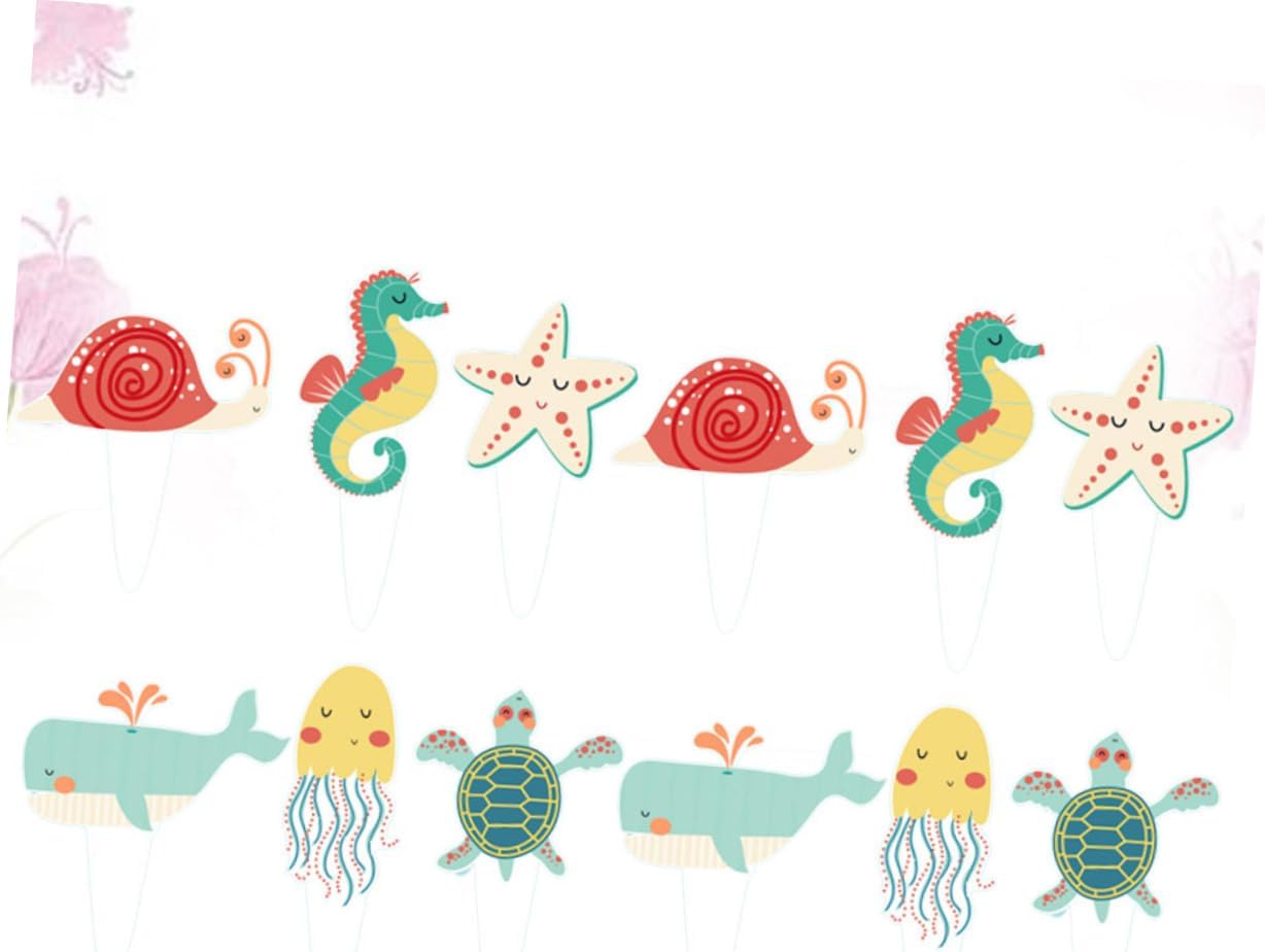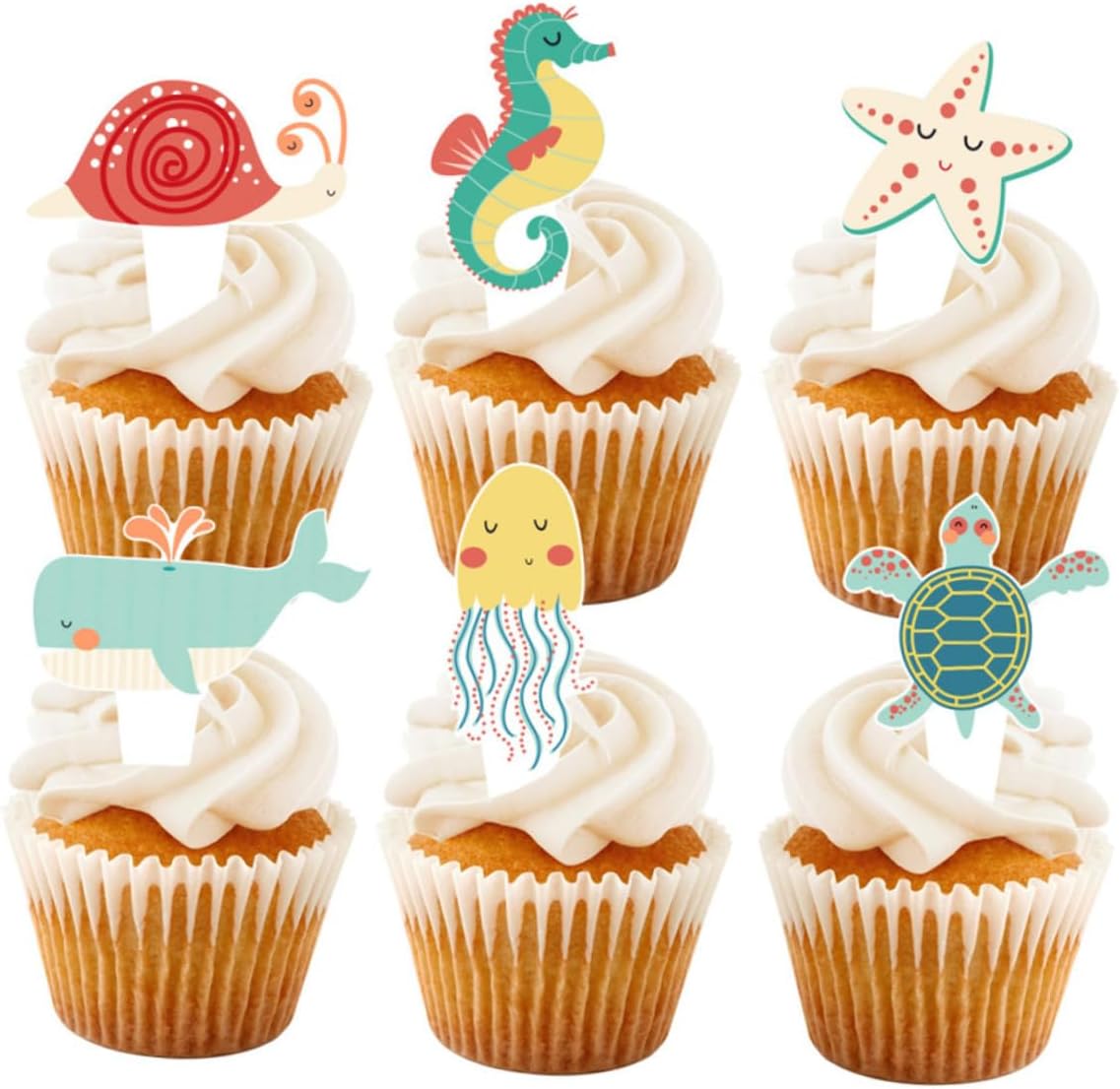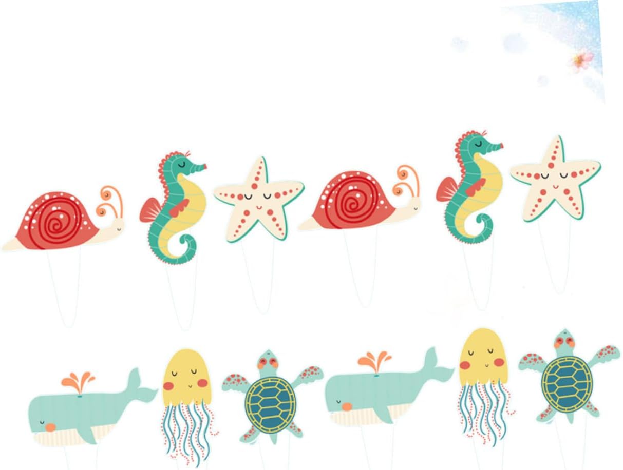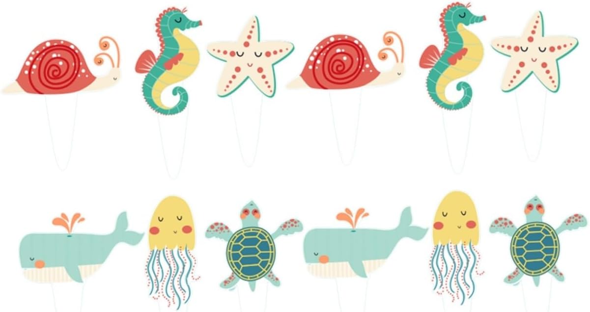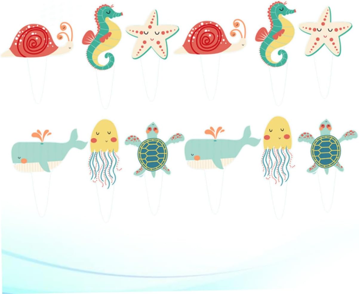 Decorazioni per torte: aggiungono divertimento, colore e atmosfera alle decorazioni di compleanno, ecc. Scelte per torte di compleanno: adatte per feste, riunioni, compleanni di bambini, ecc., toppers per cupcake di compleanno. Simpatico spiedino per torta: fantastiche decorazioni per cupcake, torte, dessert, frutta, ecc., toppers per torta con creature marine. Cupcakes: realizzati in materiale cartaceo, sono sicuri e leggeri, spiedino per torta alla frutta. -Spiedini di torta: il tuo bambino e la tua famiglia potranno godersi una festa felice e divertente con spiedini di torta colorati.