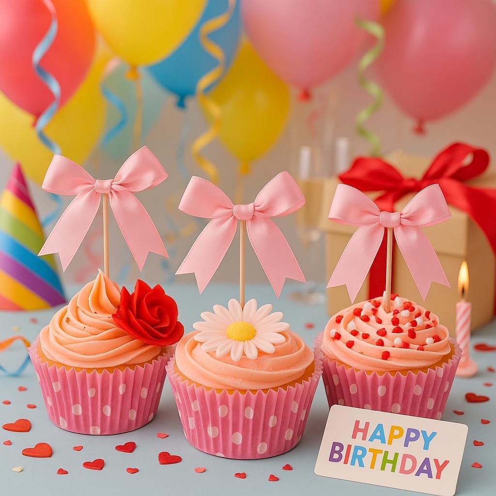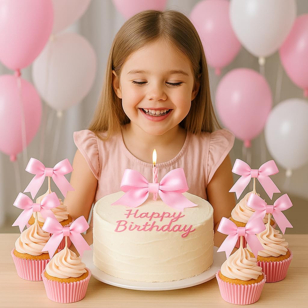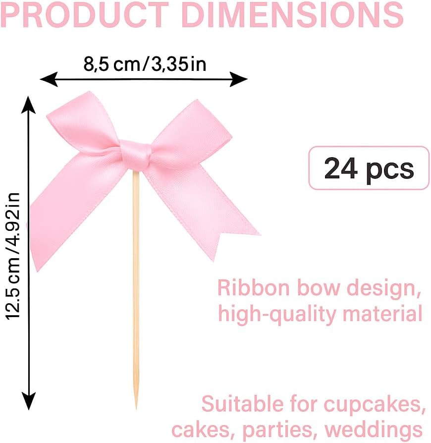 CONTENUTO - Set di 24 toppers per cupcake con fiocco in raso rosa, ca. 12,5×8,5 cm, perfetto per decorare i vostri dolci e buffet festivi MATERIALE – Nastri di raso di poliestere morbidi e resistenti, montati su robuste aste, riutilizzabili a seconda dell'uso e piacevoli da maneggiare DESIGN ELEGANTE – Raffinati fiocchi rosa che aggiungono un tocco chic e festoso ai vostri cupcakes, torte o pasticcini per eventi speciali SEMPLICE UTILIZZO – Da inserire direttamente nei cupcakes, muffin, torte o dessert, senza ulteriore preparazione e senza attrezzi OCCASIONI VERSATILI – Adatto per matrimoni, compleanni, baby shower, battesimi o feste scolastiche; creare un'atmosfera elegante e amichevole