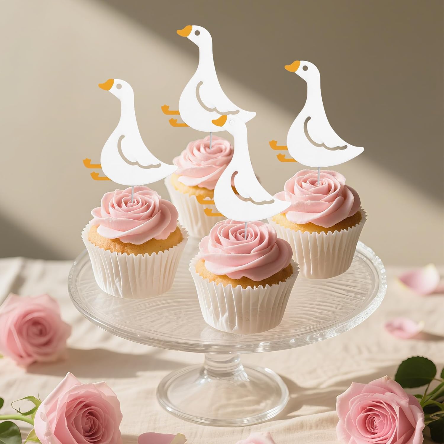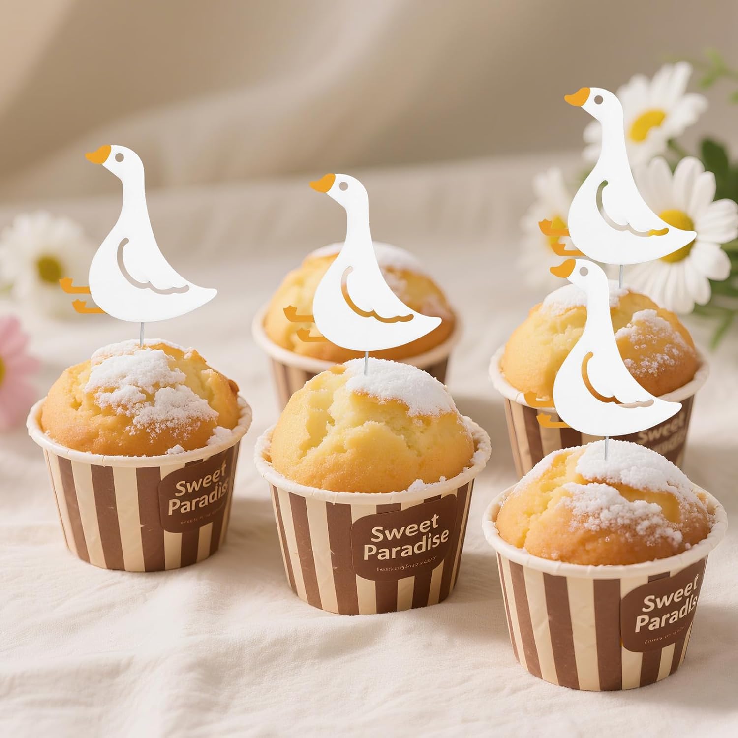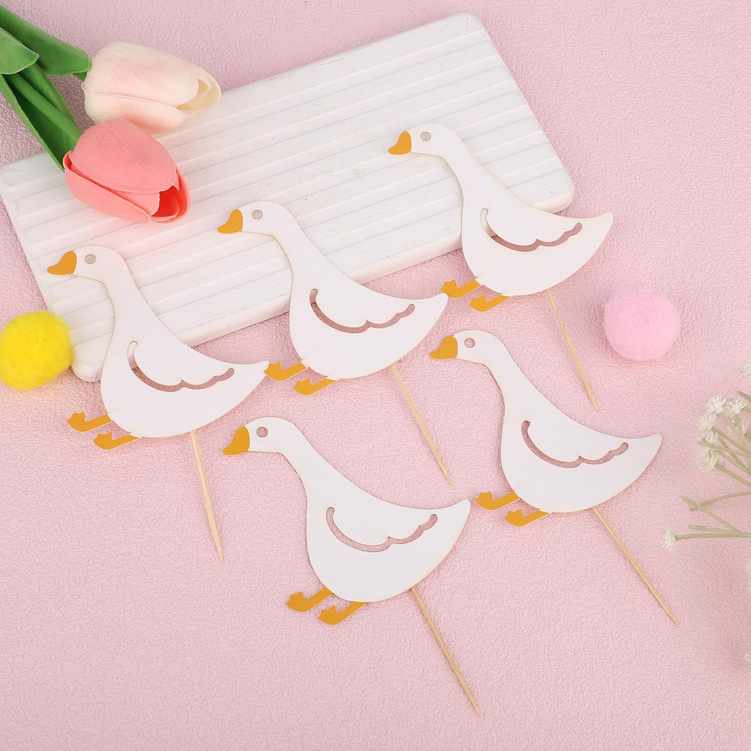 Elenco di imballaggio: riceverai 24 pezzi di toppers per cupcake party e 24 punti di colla nel pacchetto, quantità sufficiente per soddisfare gli usi e le esigenze della tua parte. Ottimo materiale: questi topper per cupcake di compleanno dell'oca sono realizzati con cartone bianco di buona qualità e bastoncino in legno, rendendoli affidabili, spessi, senza cattivo odore, sicuri da usare, non facili da rompere o danni. Puoi acquistarli con fiducia. Ampia applicazione: ideale per una vasta gamma di eventi, tra cui feste di compleanno, incontri a tema d'oca, celebrazioni a tema dei cartoni animati, feste per bambini, incontri di famiglia e altro ancora, portando un tocco divertente ai tuoi festeggiamenti. Design carino: questi toppers per cupcake dispongono di un design adorabile e giocoso, con colori vivaci e dettagli affascinanti, aggiungendo un tocco stravagante ai tuoi cupcakes e rendendoli un'aggiunta perfetta a qualsiasi celebrazione. Dimensioni adeguate: la dimensione di questi toppers per cupcake per feste dell'oca è di circa 9x8 cm che li rende perfetti per cupcake, muffin o come tocchi decorativi per antipasti e dessert.