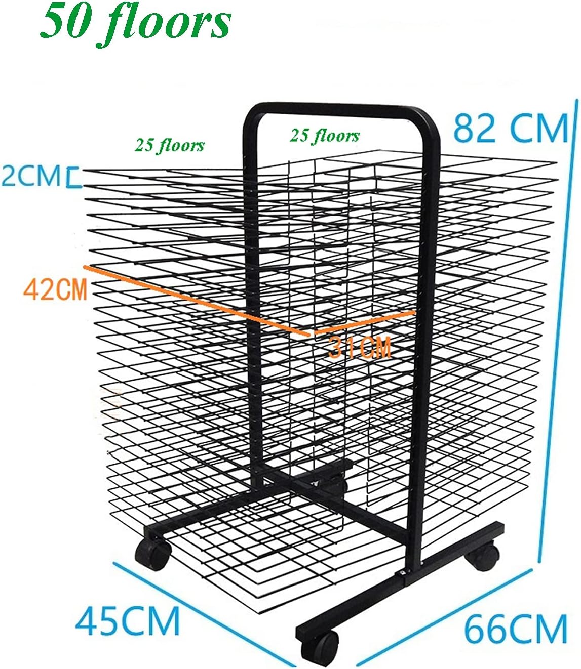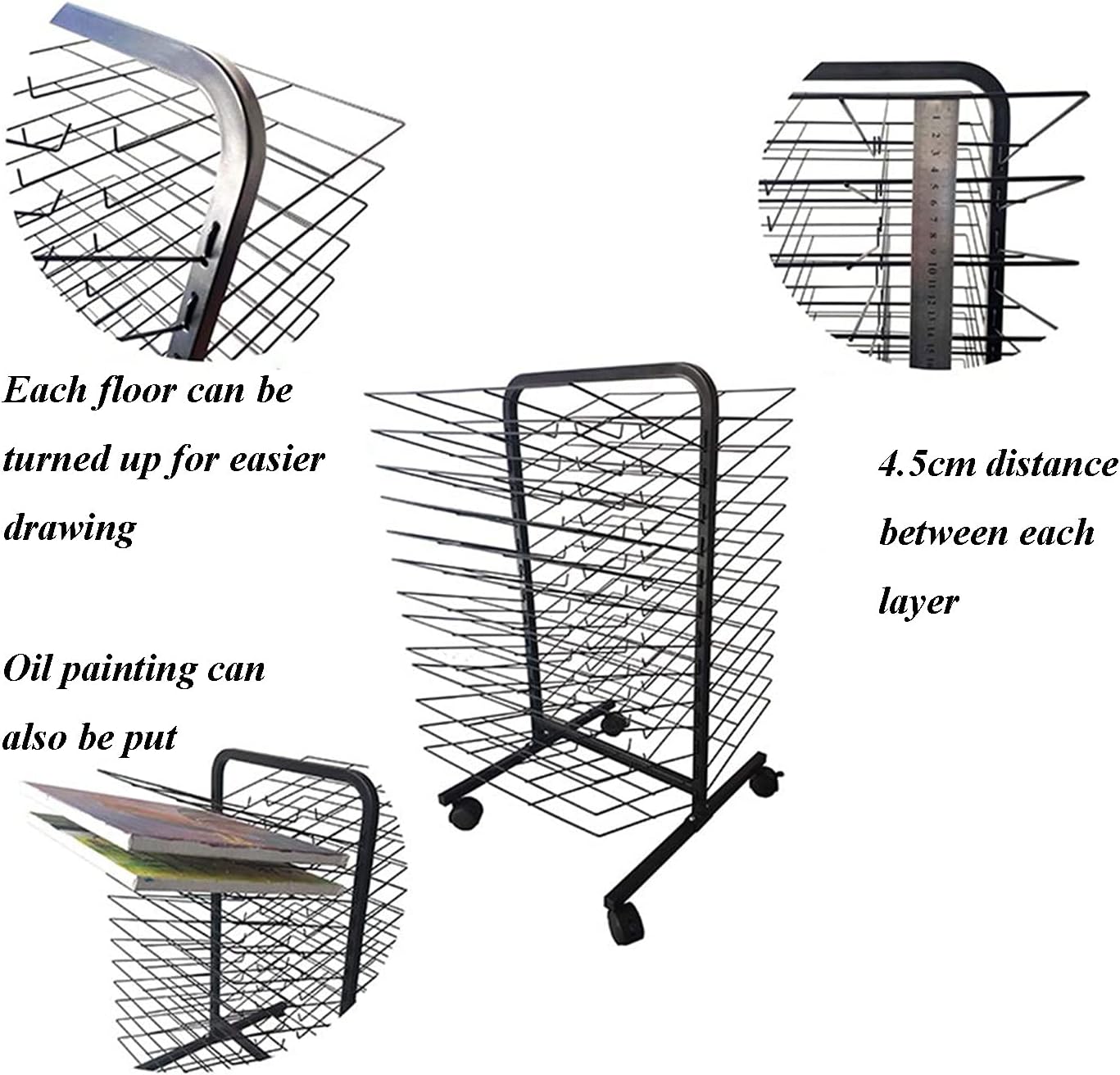 Materiale robusto: questo stendibiancheria for aule scolastiche ha una robusta struttura in metallo saldato, la struttura in acciaio può sopportare un uso intenso, con un peso massimo di 12 libbre, il nostro stendibiancheria in metallo può aiutarti a mantenere i tuoi dipinti, schizzi e altri progetti artistici ordinati e organizzati! Spaziatura ragionevole: il rack for l'arte ha 26 strati e la spaziatura tra loro è di 4,5 cm, il che conferisce ai rack una spaziatura più ampia. Perfetto for asili nido e corsi d'arte, aule d'arte o studi. Facile da riporre: il nostro stendibiancheria in metallo di alta qualità assicura un flusso d'aria ottimale for un'asciugatura rapida e pura, preservando l'integrità del tuo lavoro. Soluzione portatile: lo stendino for opere d'arte for aule è dotato di ruote for un facile spostamento e trasporto. Leggero ma robusto, questo stendino è perfetto for conservare e asciugare le tue opere d'arte senza occupare troppo spazio. Facile da usare e da pulire: lo stendibiancheria for l'arte in classe è facile da montare e può essere installato in pochi minuti. Ogni strato dello stendibiancheria in filo metallico può essere capovolto for posizionare quadri, acquerelli, poster, dipinti a olio, ecc., il che è più comodo. for pulirlo, basta passarci sopra un panno umido o un qualsiasi detergente standard.