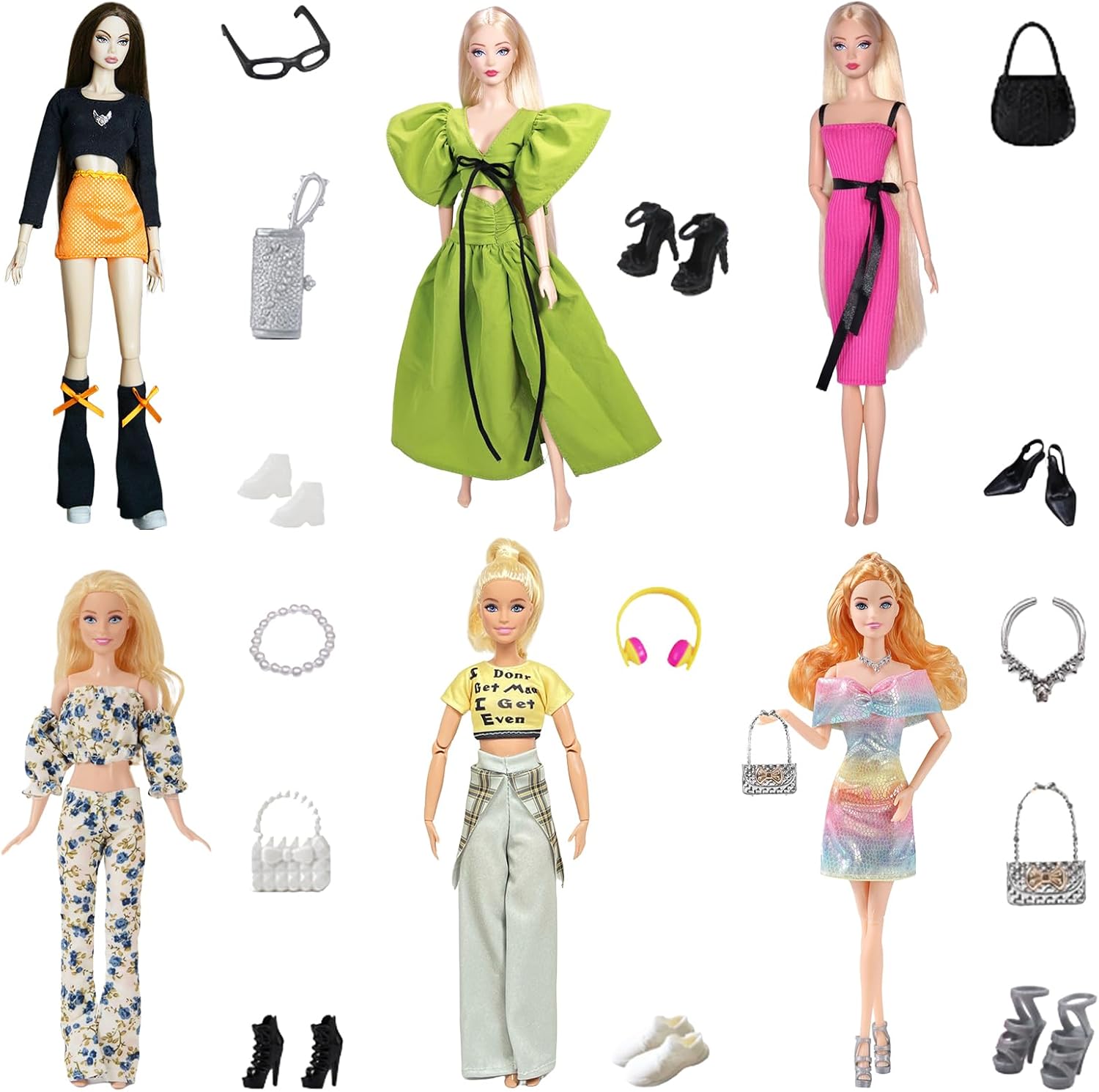 26 pezzi Rich Doll Wardrobe – La confezione include 6 diversi set di abbigliamento (abito a maniche a sbuffo, abito in maglia, pantaloni floreali, mini abito con spalle scoperte, set sportivo, calzini), più 3 borse, 1 occhiali, 1 cuffia, 2 collane e 6 paia di scarpe. (Bambola non inclusa). Stili alla moda e diversi: elegante abito da donna, tuta sportiva, ragazza chic e abiti casual. I bambini possono mescolare e abbinare per creare divertimento senza fine. Qualità premium e sicuro: i vestiti per bambole sono realizzati a mano con morbido tessuto di cotone, cuciture pulite, colori vivaci. Scarpe e accessori sono realizzati in plastica sicura, atossica e durevole. Facile da vestire: il tessuto elastico e il design in velcro rendono gli abiti facili da indossare e rimuovere. Dimensioni perfette per bambole da 29,2 cm, i bambini possono vestire le bambole in modo indipendente. Scelta regalo ideale: questo set di vestiti per bambole alla moda è un regalo eccellente per le ragazze che amano le bambole. Perfetto per compleanni, Natale, Capodanno, Pasqua, Halloween, Ringraziamento e sorprese per feste.