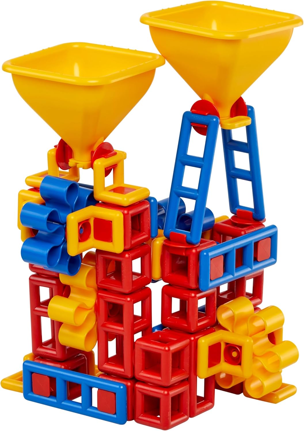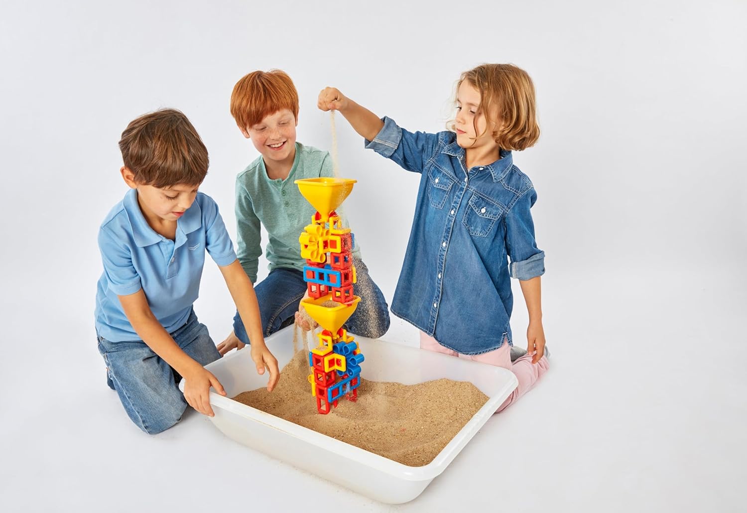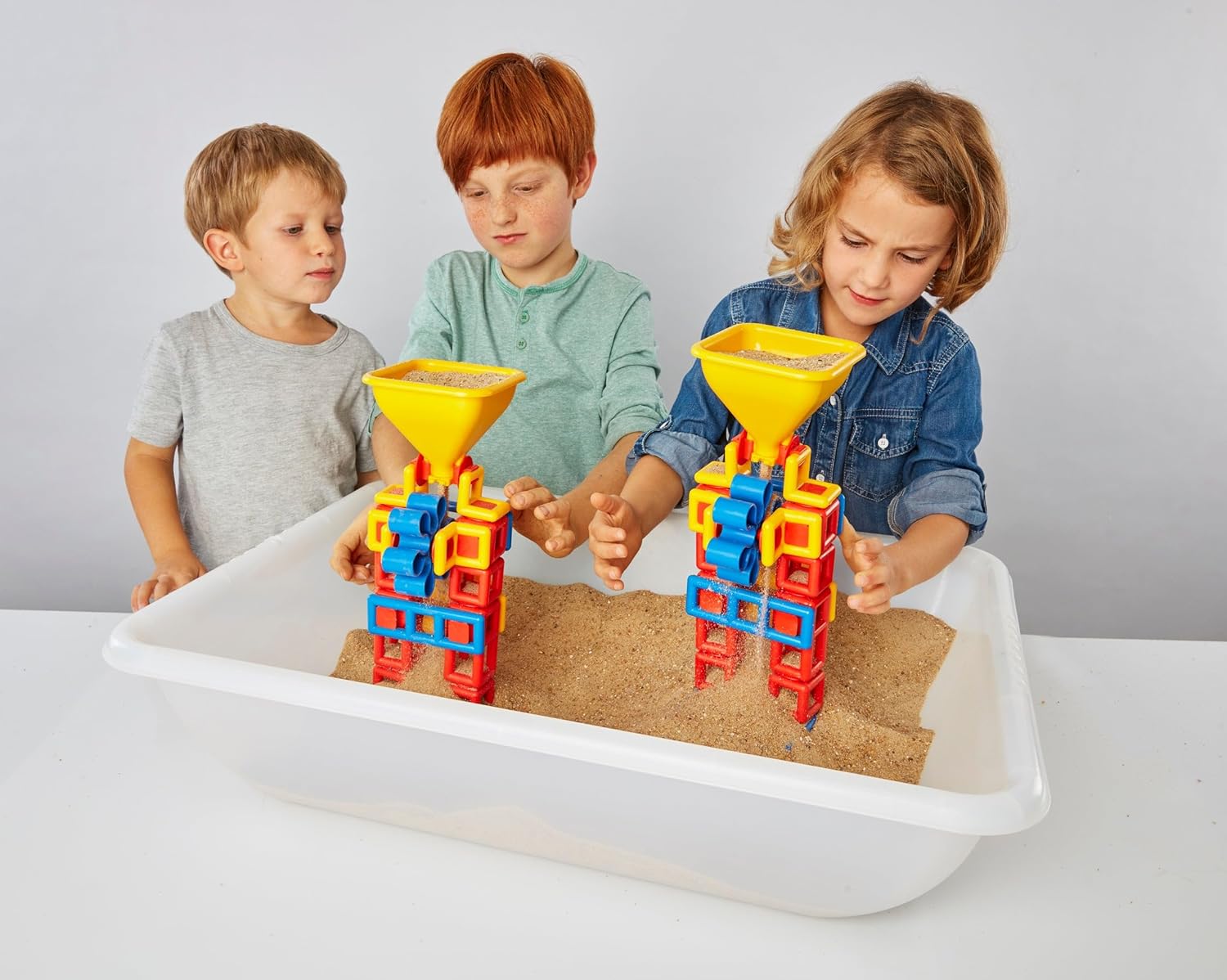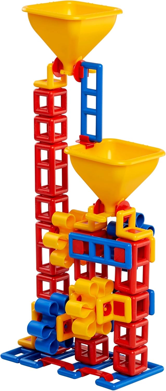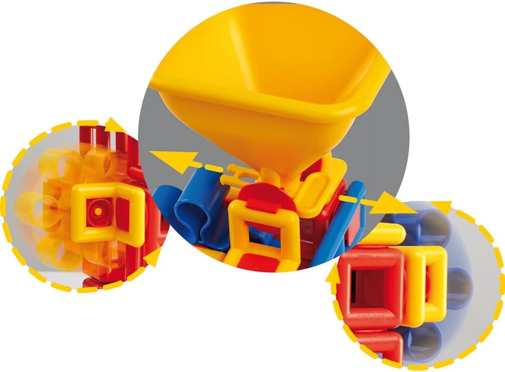 Plasticant Mobilo 262 - FLOW Advanced Ideale da 1 a 4 bambini. Per sabbia naturale fine e asciutta. Consegna in un pratico sacchetto a rete. Incluso: 2 imbuti con flusso regolabile e 4 ruote a pale, ruote più piccole e clip per maggiori possibilità di costruzione.