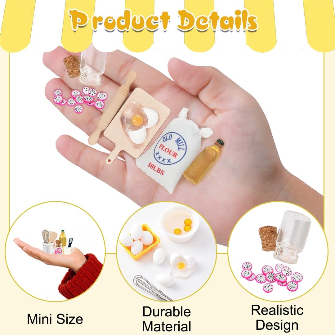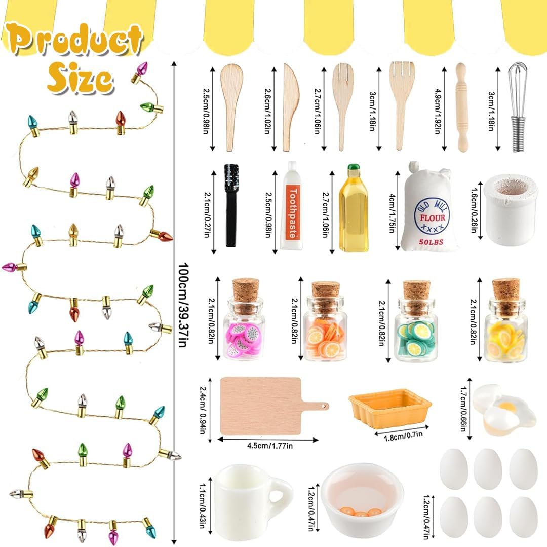 [Accessori in miniatura realistici] --I nostri accessori casa delle bambole miniatura presentano colori vivaci e texture trasparenti, conferendo a ogni cibo e mini utensili da cucina in miniatura un aspetto realistico. Sono l'accessorio perfetto per decorare spazi in miniatura e portare un divertimento decorativo senza fine nella tua casa. [Resina di alta qualità] --Realizzati in resina di alta qualità, gli accessori casa delle bambole miniatura sono leggeri ma resistenti, resistenti a rotture o sbiadimenti e sicuri per l'uso. Importante: gli articoli non sono commestibili. I bambini devono essere sorvegliati durante l'uso di questo prodotto. [Dimensioni mini per varie ambientazioni] --Le dimensioni degli accessori casa delle bambole miniatura variano generalmente da circa 1 cm ~ 5 cm. Il loro design realistico e accattivante li rende perfetti per decorare varie scene di case delle bambole e aggiungere un tocco di allegria a porte e ingressi fatati, integrandoli perfettamente nei mondi in miniatura. [Usi versatili] --Gli accessori casa delle bambole miniatura non sono adatti solo per decorare case delle bambole e scene fatate, ma anche per oggetti da collezione in miniatura, decorazioni per commemorative e splendidi oggetti di scena per foto. Questi accessori casa delle bambole miniatura non solo servono come oggetti didattici per aiutare i bambini ad apprendere il vocabolario, stimolare la loro immaginazione e divertimento a una varietà di ambientazioni. [Ispira la creatività] --Gli accessori casa delle bambole miniatura includono una varietà di cibi e mini utensili da cucina in miniatura, come mini uova, mini mattarello, mini sbattitore per uova e un barattolo di caramelle natalizie. Sono inoltre dotati di una mini catena luminosa (non luminosa). Questi mini accessori per la casa delle bambole consentono di creare facilmente numerose scene natalizie e rappresentano un fantastico regalo di Natale.