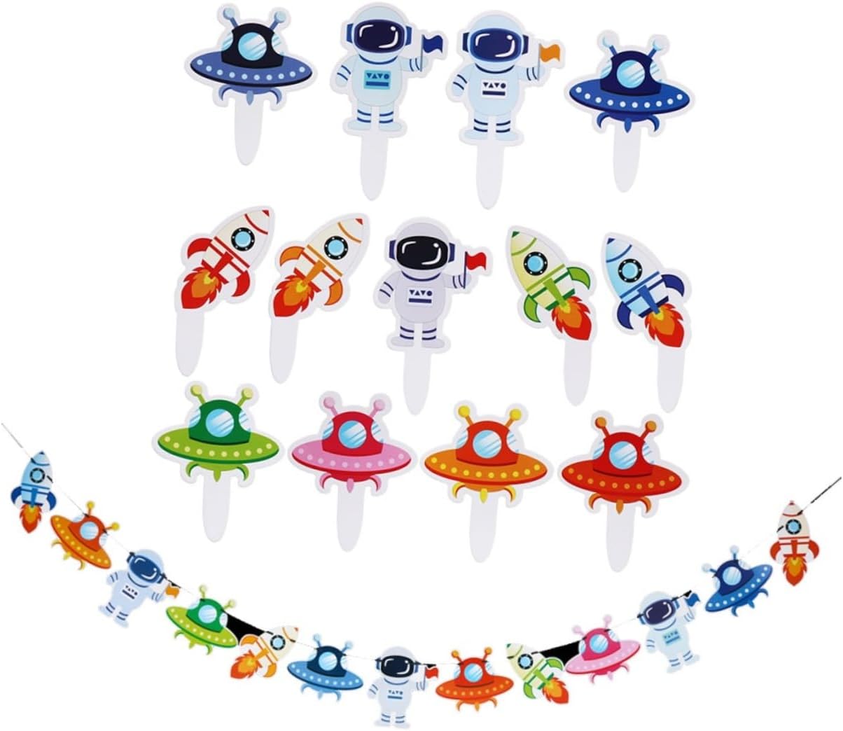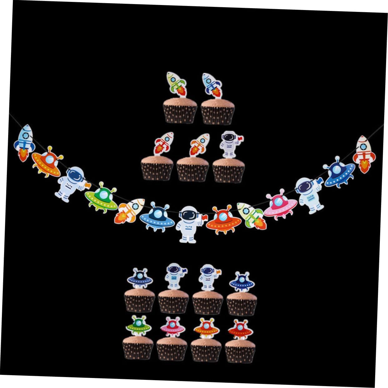 Banner per festa astronauta: adatto per la decorazione della festa del primo compleanno, usalo per ravvivare il luogo della festa di compleanno. Banner dell'universo: con queste decorazioni puoi dare un po' di freschezza e abbellimento alla festa a tema. Decorazioni per torte universe: con queste decorazioni potrai aggiungere un po' di freschezza e abbellimento alla festa a tema. Striscioni stamina: appendili alla finestra o alle porte, aggiungi un po' di freschezza a qualsiasi stanza noiosa. Ghirlanda di razzi: appenderli alla finestra o alle porte, un po' di freschezza in ogni stanza noiosa.