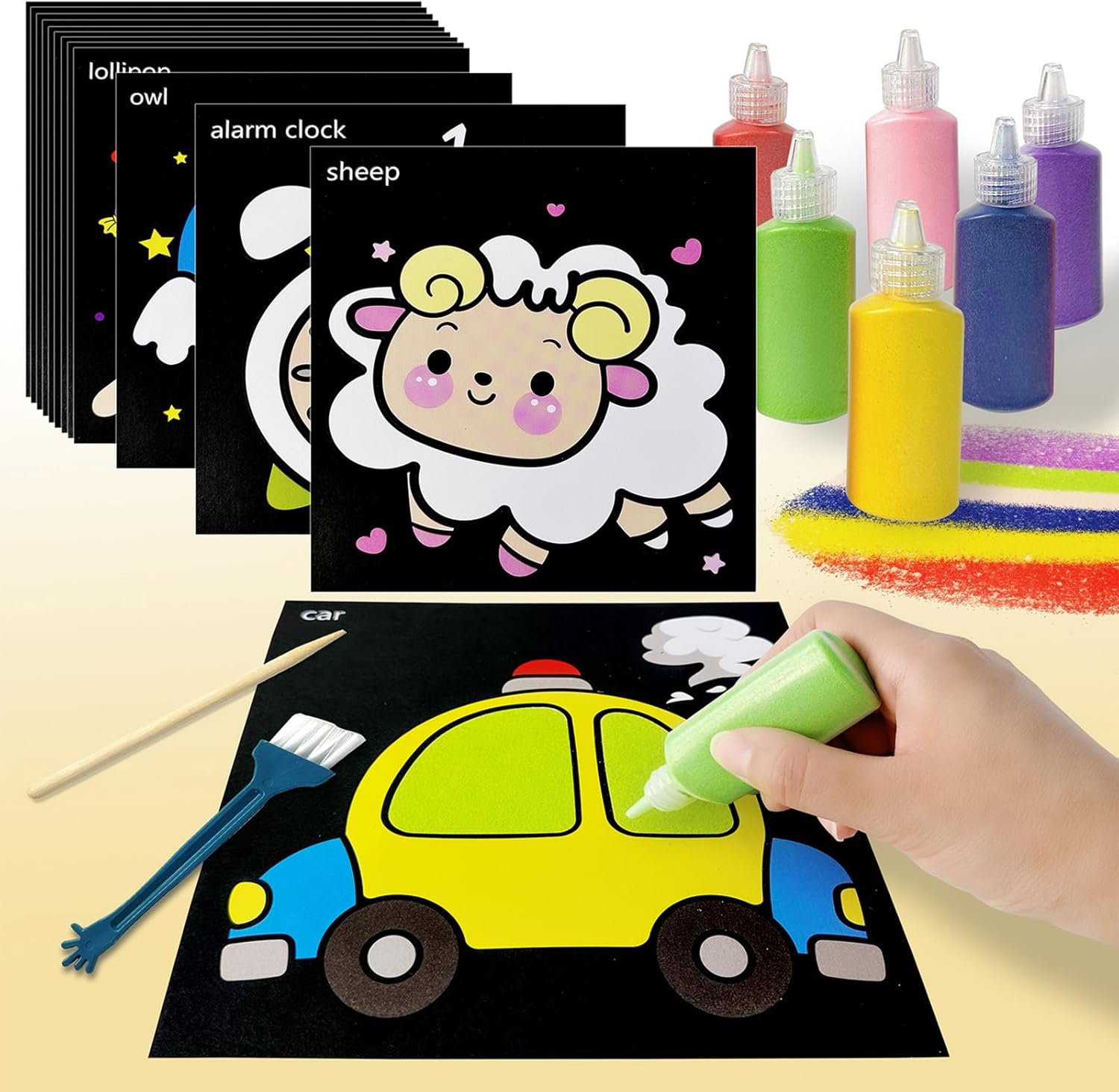 Adatto per compleanni per bambini, Natale o laurea, i nostri set d'arte sabbia fungono da favore della festa, coinvolgendo bambini tutte le età con divertimento personalizzato e creativo nostro set all-inclusive con 6 bottiglie sabbia, 8 fogli adesivi spazzola e bastone, garantendo divertimento infinito senza altri acquisti richiesti Scatena creatività tuo figlio con nostro set d'arte sabbia, perfetto per l'arte per bambini e crafting fai-da-te, scatenando l'immaginazione e divertimento pratico I bambini possono mostrare le loro bottiglie d'arte sabbia uniche come mestiere duraturo o condividerle come regalo premuroso e personalizzato Perfetto per le aule, nostro partito d'arte sabbia favorisce non migliorano le abilità motorie, insegna anche ai bambini stratificazione del colore e creazione motivi, unendo divertimento e l'educazione senza soluzione continuità