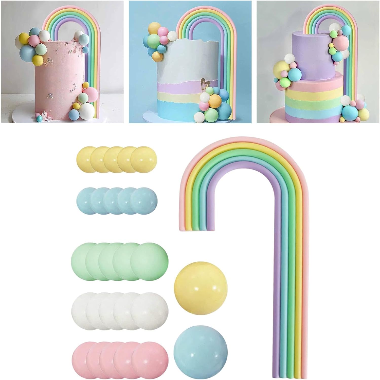 Ideale per qualsiasi celebrazione: esalta matrimoni, compleanni, shower o feste a tema arcobaleno con un fascino accattivante, ottimo per torte, centrotavola Materiale: decorazione arcobaleno realizzata in robusta pasta polimerica; palline di schiuma leggera per torte e riutilizzabili per più celebrazioni Occasione: le decorazioni per feste a tema arcobaleno sono ideali per feste di compleanno, eventi a tema principessa, shower e raduni a tema oceano Dimensioni versatili: include un grande topper arcobaleno (5 x 9,5 pollici) misure di palline decorative (0,8, 1,2 e 1,6 pollici) per design dinamici per torte Set completo da 28 pezzi: include 1 topper per torta arcobaleno a forma di macaron e 27 palline colorate di varie dimensioni, ideali per decorazioni per feste.