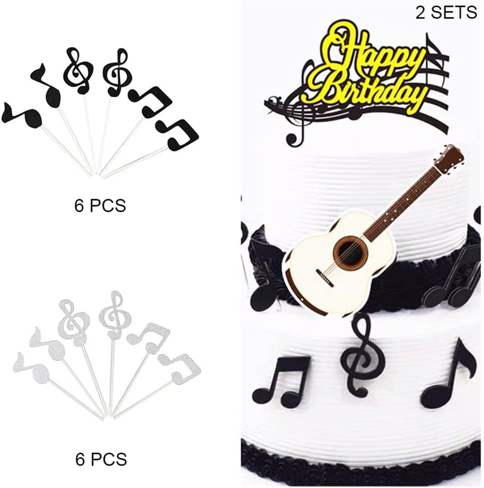 28 toppers per cupcake a tema musicale. .Include spartito, chitarra e decorazione per torta Happy Birthday. Sono tutti delicati ed eleganti e fungono da decorazioni per torte. ❤ Realizzati con materiali di alta qualità, i nostri prodotti sono sicuri, non tossici e sicuri da usare. Per favore non metterli nel forno. I nostri prodotti sono progettati con una grafica accattivante che attira l'attenzione e rende la tua festa impressionante per i tuoi ospiti. ❤Le note musicali e la chitarra carine rendono la festa più unica, speciale e interessante. Perfetto per cupcake, muffin, frutta, decorazioni per feste e attività come matrimoni, feste in casa, feste di Natale, compleanni, baby shower, lauree, San Valentino, anniversari ❤Se hai domande sui nostri prodotti, non esitare a contattarci e, se non sei soddisfatto del prodotto, puoi contattarci in qualsiasi momento per restituirlo. Saremo felici di aiutarti e risponderti il più velocemente possibile.