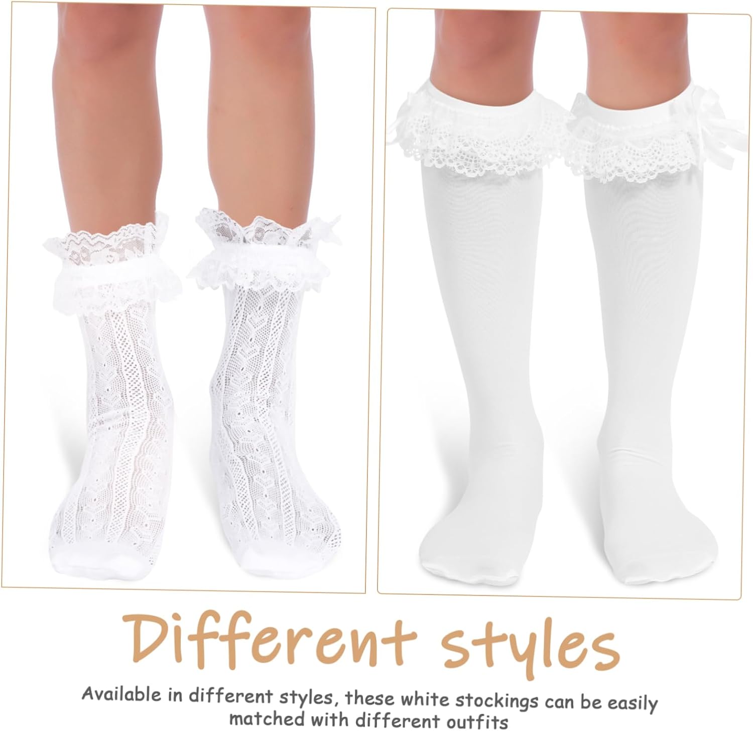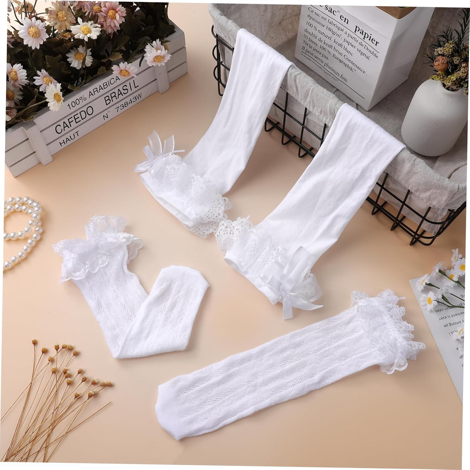 Il pacchetto include 2 paia di calzini Caratteristiche - Dettaglio elegante: l'elegante dettaglio del fiocco aggiunge un tocco delicato e alla moda, rendendo questi calzini un accessorio indispensabile calzini al ginocchio con fiocchi - : Calzini bianchi al ginocchio con fiocco - Opzioni multiple: con le diverse calze in questo set, puoi scegliere la coppia adatta per completare il tuo outfit e dare stile ai calzini dirndl da donna -Vestibilità flessibile: caratterizzati da una vestibilità flessibile, questi calzini da donna adattano a diverse forme del piede, garantendo il massimo comfort calzini lunghi con volant -Pizzo delicato: il delicato bordo in pizzo migliora l'estetica generale, aggiungendo un tocco sofisticato al tuo outfit calze bianche con fiocco -Materiale: calzini lunghi bianchi in spandex -Dimensioni: 45,30X13,50X0,60 cm/17,80X5,31X0,24 pollici calzini bianchi con fiocco - Morbidi e comodi: realizzati con materiali in tessuto morbido, questi calzini da donna offrono comfort, rendendoli ideali per l'uso quotidiano con calze di pizzo Descrizione della merce calze bianche con stile con i nostri calzini a balze per donna, caratterizzati da dettagli in pizzo e adorabili fiocchi.calzini bianchi con fiocco Indossali con le tue ballerine o tacchi preferiti per mostrare il loro aspetto unico.calzini con fiocchi Queste calze bianche sono ideali sia per contesti casual che formali, rendendole aggiunte versatili al tuo guardaroba