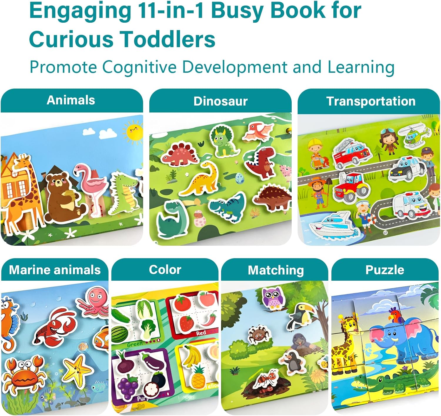 【10 Temi di Apprendimento Coinvolgenti】Questo busy book Montessori include animali della foresta, creature marine, dinosauri, veicoli, cibo, parti del corpo, frutta, verdura, il ciclo di vita di una farfalla e puzzle. 【Stimola lo sviluppo cognitivo precoce】Questo quiet book interattivo incoraggia i bambini a scoprire il mondo, migliorando curiosità, osservazione e memoria. 【Migliora concentrazione e problem-solving】Con puzzle e attività divertenti, questo busy book aiuta i più piccoli a rafforzare attenzione e pensiero logico. 【Ottimo regalo per bambini】 Aiuta il tuo bambino a stare lontano dagli schermi mentre impara e si diverte. Questo gioco Montessori 1 anni è perfetto per giocare sia all’interno che all’esterno ed è un ottimo compagno di viaggio. Un regalo ideale per compleanni, feste o come strumento didattico per bambini e bambine dai 1 ai 5 anni. 【Perfetto per imparare ovunque】 Compatto e facile da trasportare, questo busy book per bambini è perfetto per viaggi in auto, in aereo o per attività all’aperto, offrendo sempre un’esperienza educativa e divertente.