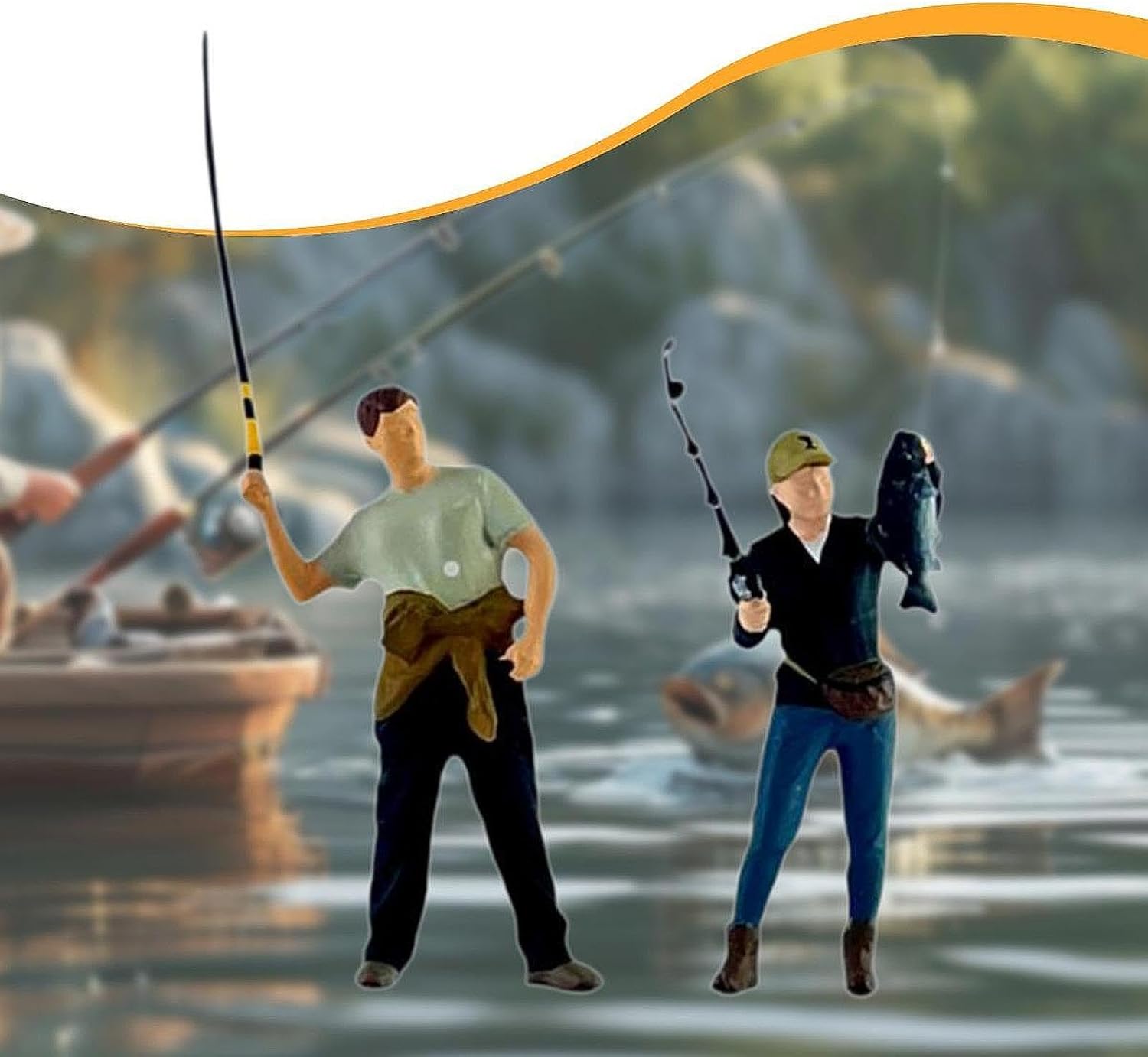 Ideale per scene in scala 1/64: migliora la visualizzazione delle tue miniature con queste figure di pesca meticolosamente realizzate, per diorami in scala 1/64 e progetti fotografici. Dettagli dipinti a mano: ogni figura in scala 1/64 è confezionata singolarmente e dipinta a mano da abili artigiani, offrendo un livello di dettaglio ideale per le collezioni. Materiale in resina di alta qualità: realizzate in resina di qualità, queste figure in diorama 1:64 sono di alta qualità, rendendole una preziosa aggiunta alla collezione di qualsiasi appassionato di modelli. Dimensioni realistiche: alte circa 3-4,5 cm, queste figure da pesca da 1/64 sono perfettamente dimensionate per aggiungere realismo e profondità alle tue scene in miniatura. Il set completo include due personaggi: la confezione contiene due figure di pesca finemente dettagliate con una pescatrice che lancia la sua canna e un compagno maschio, pronto a dare vita ai tuoi display statici.
