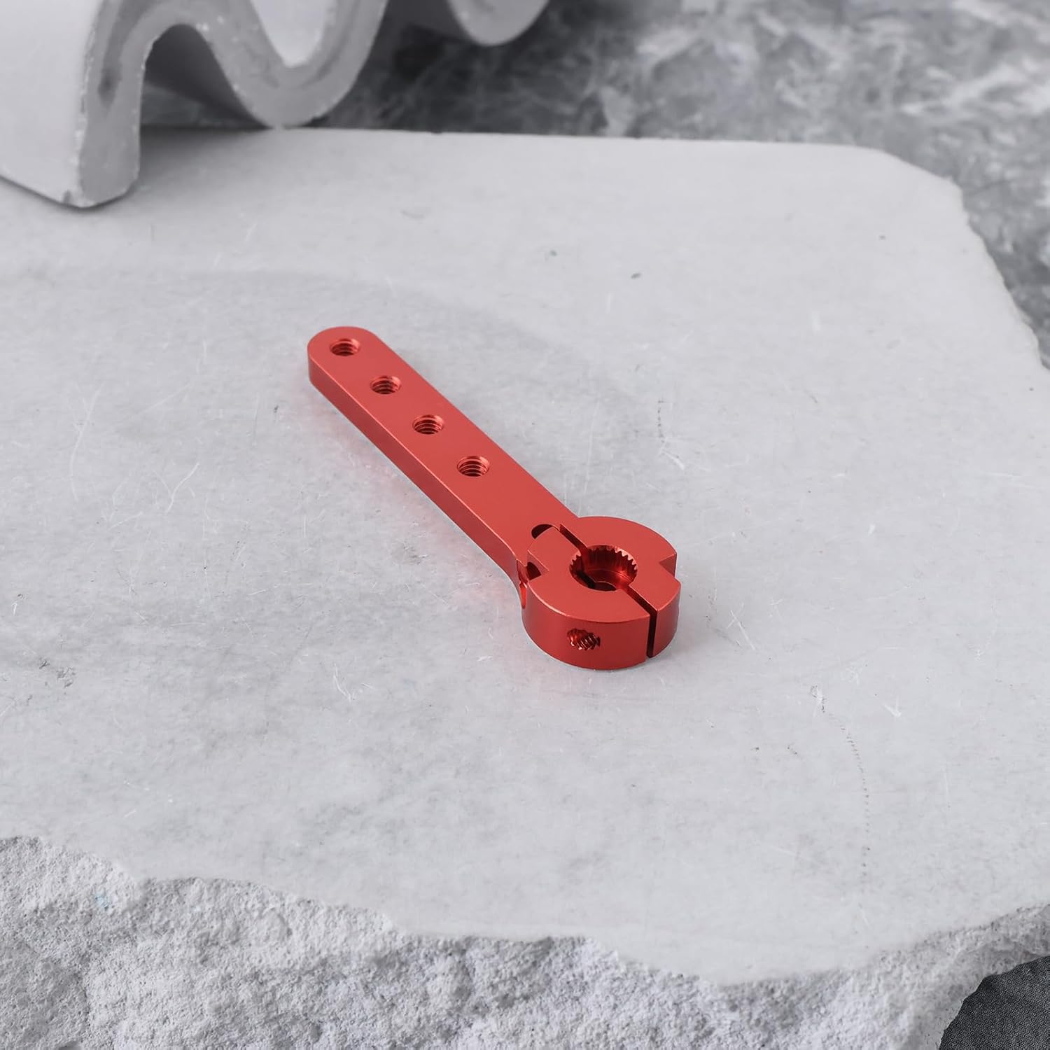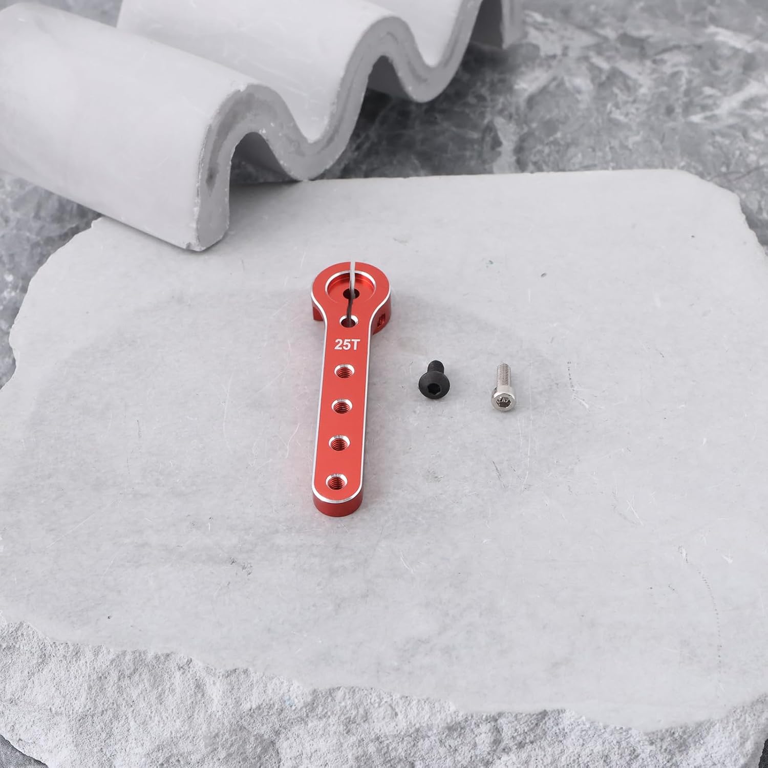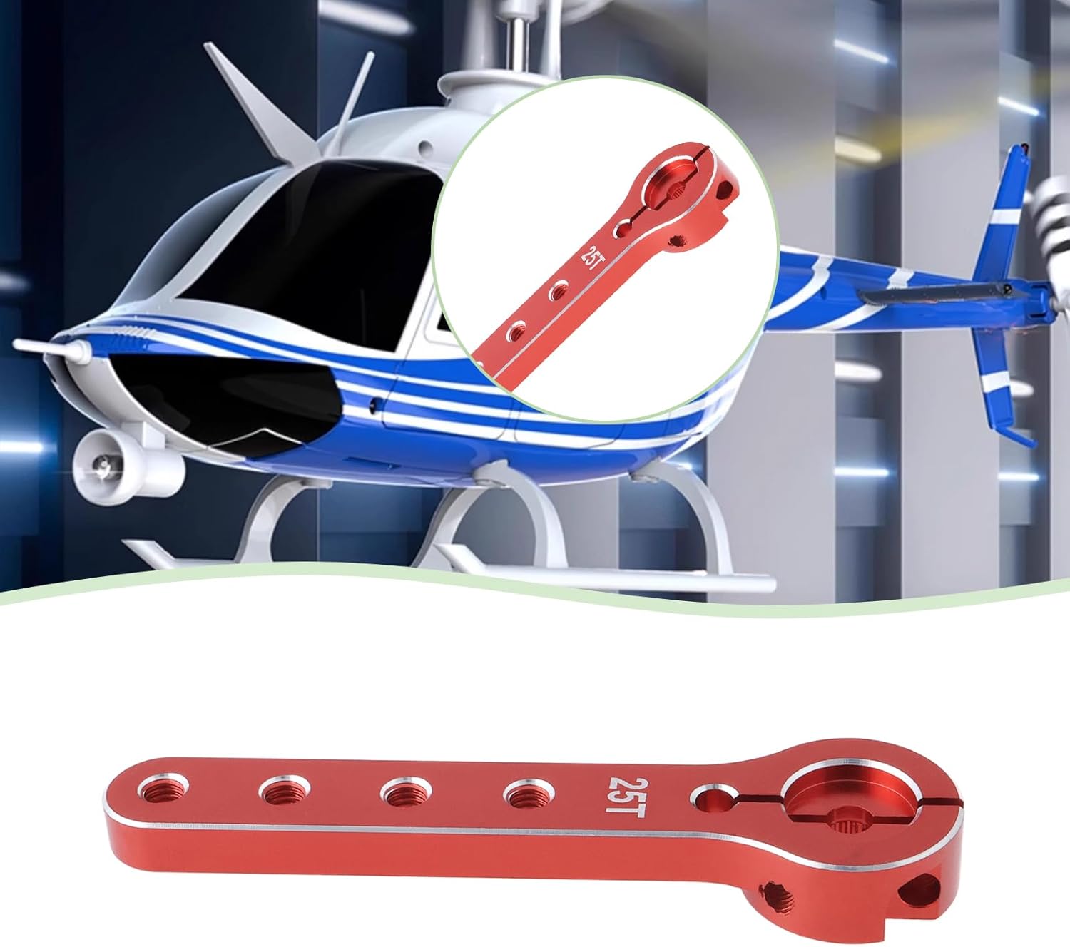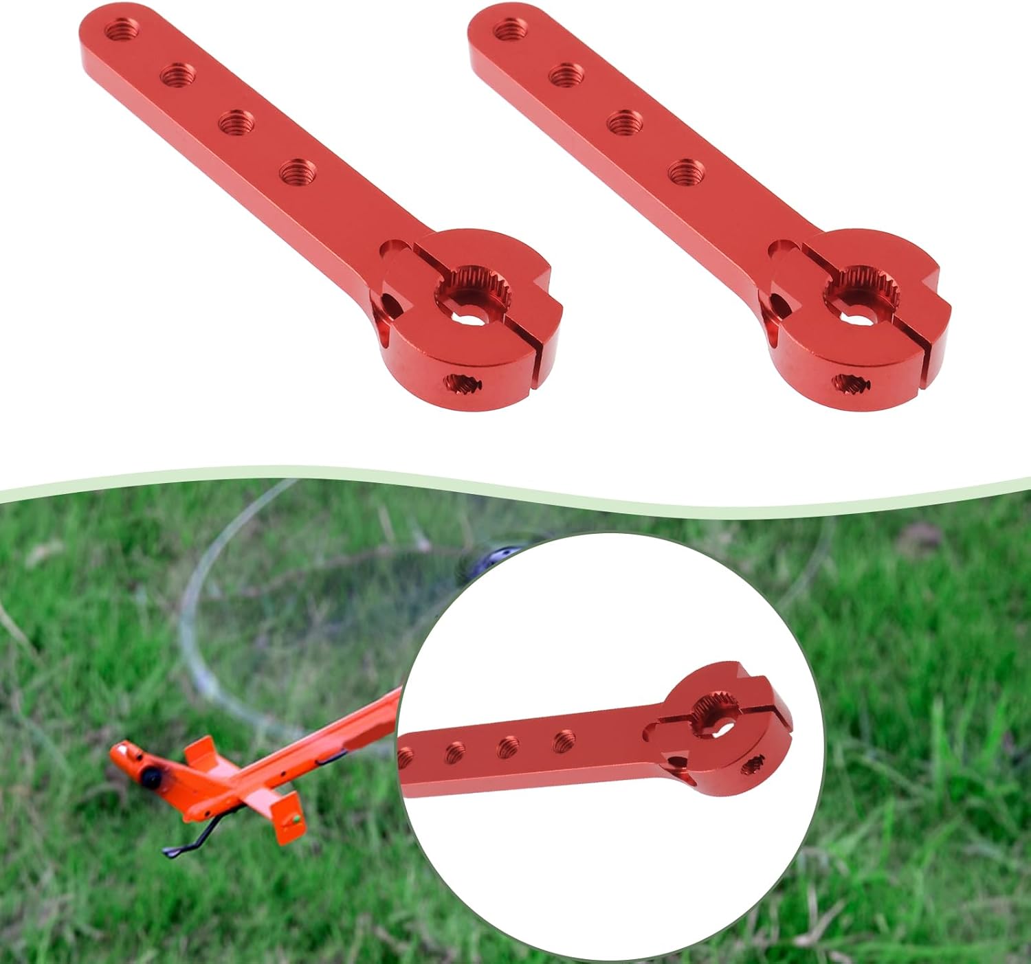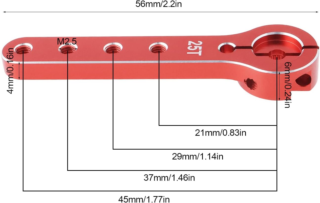 Compatibilità : Compatibile con 30-100 CC aeroplani leggeri, compatibile con Futaba, compatibile con Savox e compatibile con Go Tech. Questa versatilità assicura un'integrazione perfetta con la tua configurazione RC esistente, migliorando la tua esperienza di volo senza la necessità di ulteriori modifiche. Dimensioni : Con una lunghezza complessiva di 56 mm e più fori a 21 mm, 29 mm, 37 mm e 45 mm, questo braccio servo consente regolazioni precise. 25T Spline per una facile installazione : Con un design a 25T spline, questo servo braccio assicura un processo di installazione semplice. È adatto per modelli di auto RC in scala 1/10, offrendo versatilità che va oltre i soli aeroplani. Goditi rapidi aggiornamenti senza problemi, mantenendo la tua attenzione sul divertimento del volo. Costruzione : Realizzato in lega di alluminio, questo braccio servo offre eccezionale resistenza e durata. Completo di viti : La confezione include 2 viti nere e 4 viti argentate per una facile installazione. Non dovrai acquistare hardware aggiuntivo, rendendo comodo iniziare subito con l'aggiornamento.