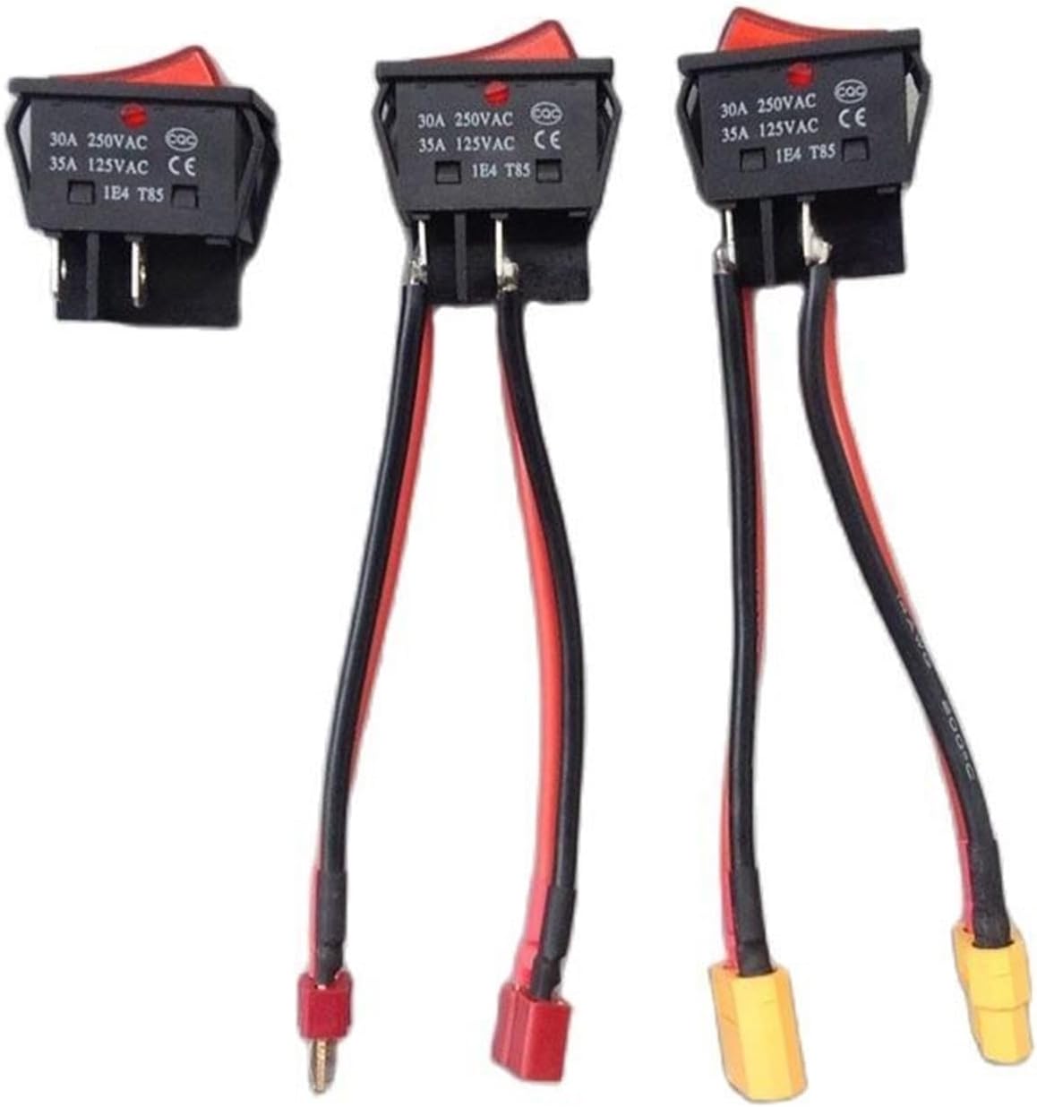 HIGH CURRENT CARRYING : This boat switch is designed to carry high currents up to 30A/250VAC or 35A/125VAC, ensuring stable operation under high loads. COMPATIBLE VOLTAGE: Supports DC 12V and 24V voltages, suitable for systems with different voltage requirements, providing a flexible power solution. COMPACT SIZE DESIGN: Dimensions of 32*25*32mm (L*W*H) for easy installation. DESIGNED FOR MOTORS: Especially suitable for brushed motors of 550/775 models, ensuring a perfect match with the motor.