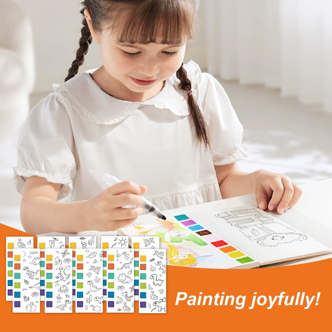 Ideale come regalo: il nostro libro da colorare ad acquerello per bambini è perfetto come giocattolo da viaggio, come premio di classe, come scrigno del tesoro o come regalo premuroso per ogni occasione. Libro da colorare ben progettato: grazie alla carta super spessa, il colore non trasuda, garantendone la durata. Ogni pagina del libro da colorare può essere facilmente strappata grazie alle linee di taglio. Educativo e divertente: stimola la creatività, il riconoscimento dei colori e la coordinazione occhio-mano. I nostri libri da colorare per bambini offrono un'alternativa sana e coinvolgente agli schermi e incoraggiano l'apprendimento ludico. Dipingere senza sporcare per i più piccoli: l'innovativo design 3 in 1 combina colori, pennelli e libri da colorare in un unico pacchetto. Progettato con colori vivaci, è un regalo perfetto per i bambini in età prescolare e per chi studia a casa. Dimensioni ideali per tutti: questo libro di acquerelli misura 9,64 x 8,70 x 0,7 pollici, con pagine di dimensioni 8,26 x 6,88 pollici: una dimensione adatta per una facile maneggevolezza e per esporre disegni luminosi e colorati.