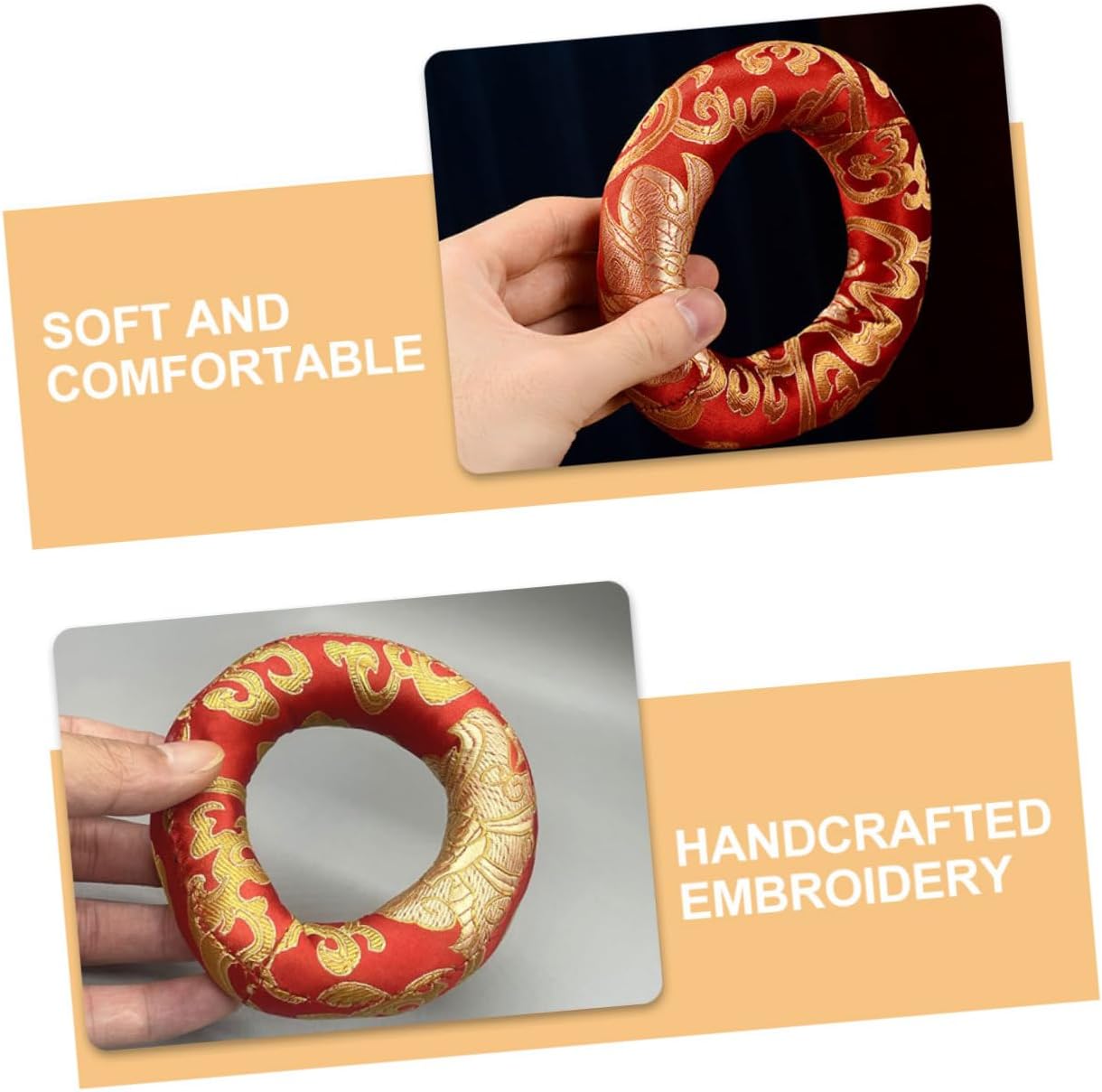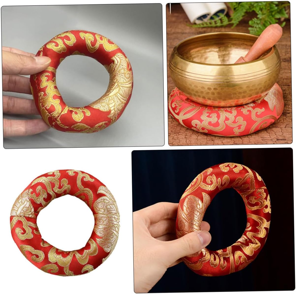 Ricami artigianali: ogni cuscino per campane tibetane presenta intricati ricami realizzati a mano, che lo rendono unico e speciale. Base per campana tibetana per yoga: progettata specificamente per l'uso con campane tibetane e yoga, fornisce un supporto stabile Facile da sostituire e pulire: il cuscinetto della campana tibetana è facile da sostituire e pulire, garantendo comodità e pulizia Morbido e confortevole: realizzato con materiali morbidi e confortevoli, questo cuscino è facile da trasportare e ideale per l'uso in movimento Migliora la qualità del suono: riduce efficacemente le e il rumore, migliorando la qualità del suono e la risonanza della tua campana tibetana