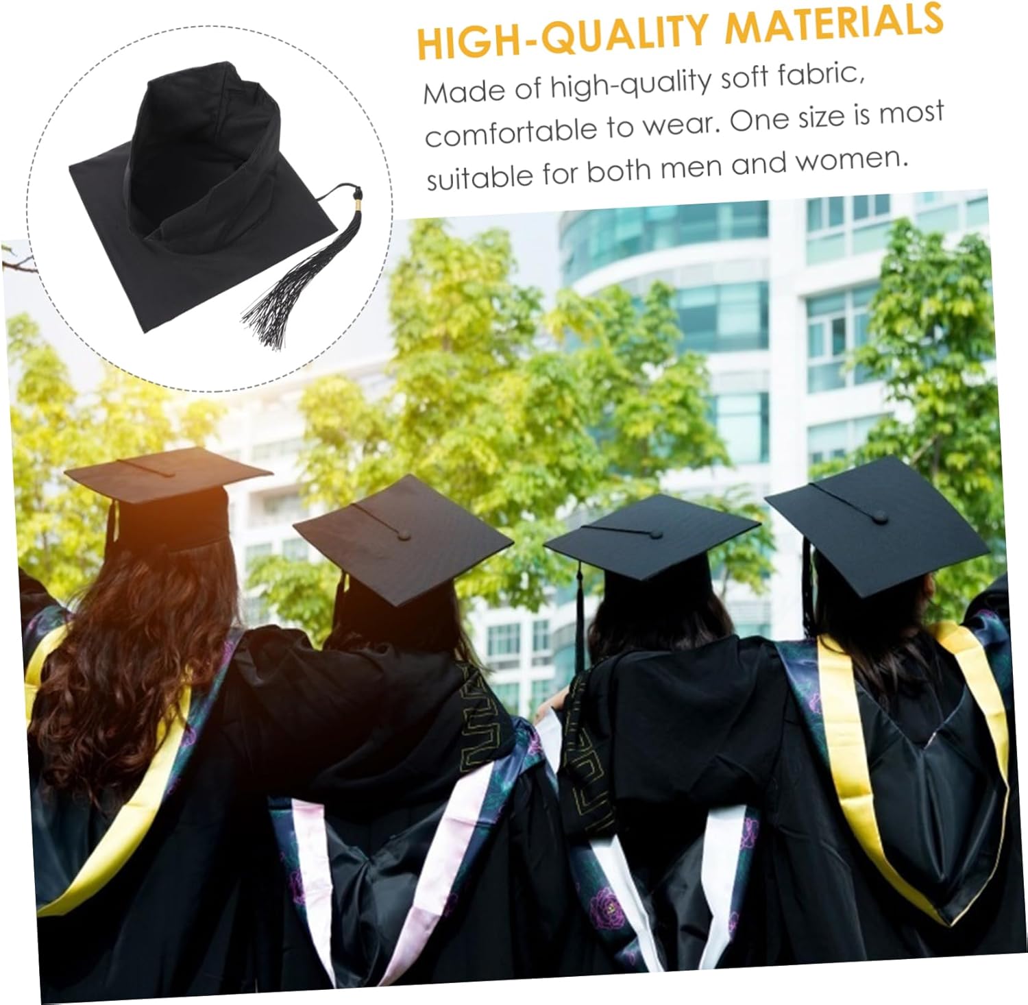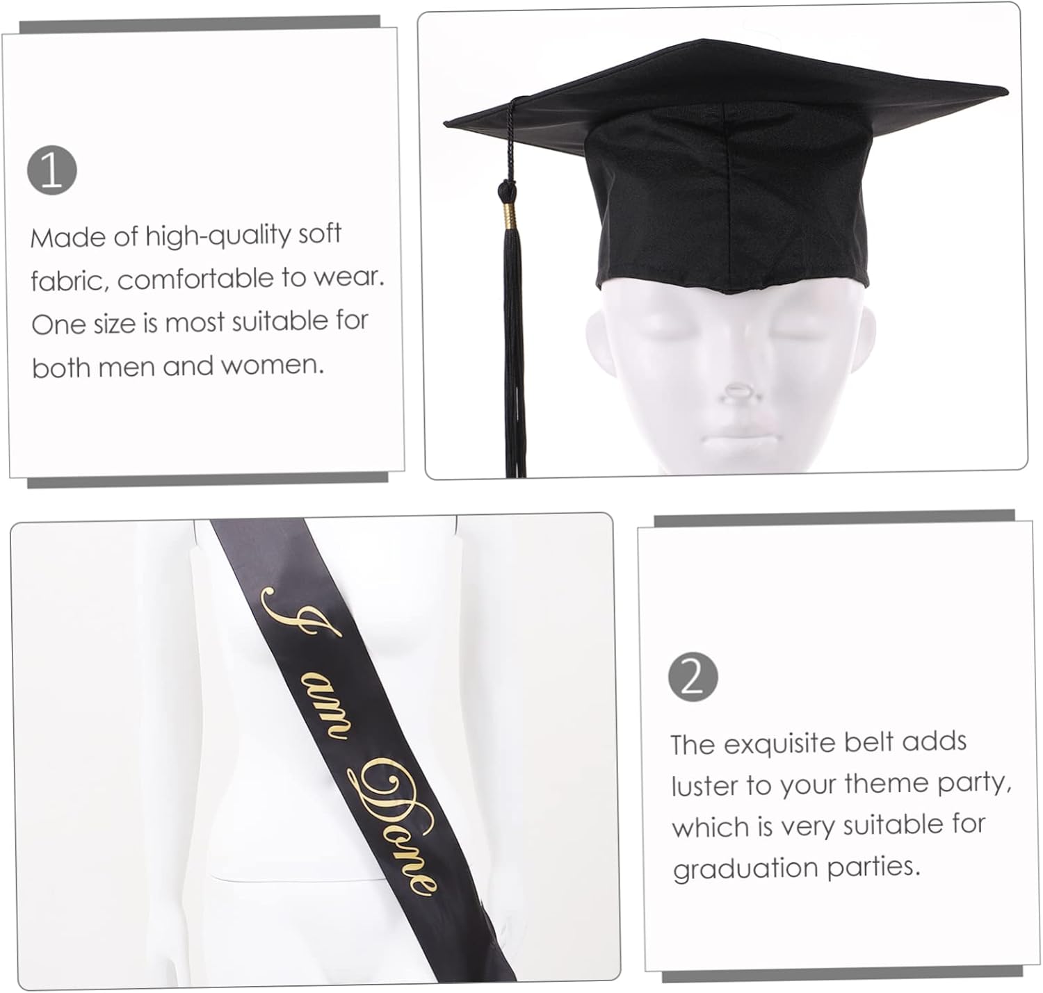 dei pacchetti 1 x berretto da laurea 1 x fascia da laurea Caratteristiche - Dimensioni: circa 24,00X24,00X10,00 cm/9,43X9,43X3,93 pollici Cinture per galateo della laurea. - Materiale: Cappello da laurea in tessuto. - : Graduazione nera. - Vale la pena possederla, non solo come decorazione, ma può anche essere una cintura per l'etichetta delle feste. - Realizzata in tessuto, questa fascia è comoda e può essere indossata con la tracolla per la laurea. - Ravviva la tua festa a tema, regala un po' di divertimento e allegria a te, ai tuoi compagni di classe e ai tuoi insegnanti con gli accessori per la festa di laurea. - Taglia unica, adatto sia per uomo che per donna. Cappello da laurea. - Inoltre, invialo ai tuoi amici, compagni di classe e fatti una foto con loro: sarà la fascia per la laurea. Informazioni sulla merce Accessori per feste di laurea Questa fascia dal design speciale, che può creare un divertimento speciale alla tua festa. Articoli per feste L'articolo è un set di fascia per feste di laurea e cappello da laurea, realizzato in materiale di stoffa di qualità superiore. Articoli per la laurea È fantastico per feste di laurea, feste a tema scolastico