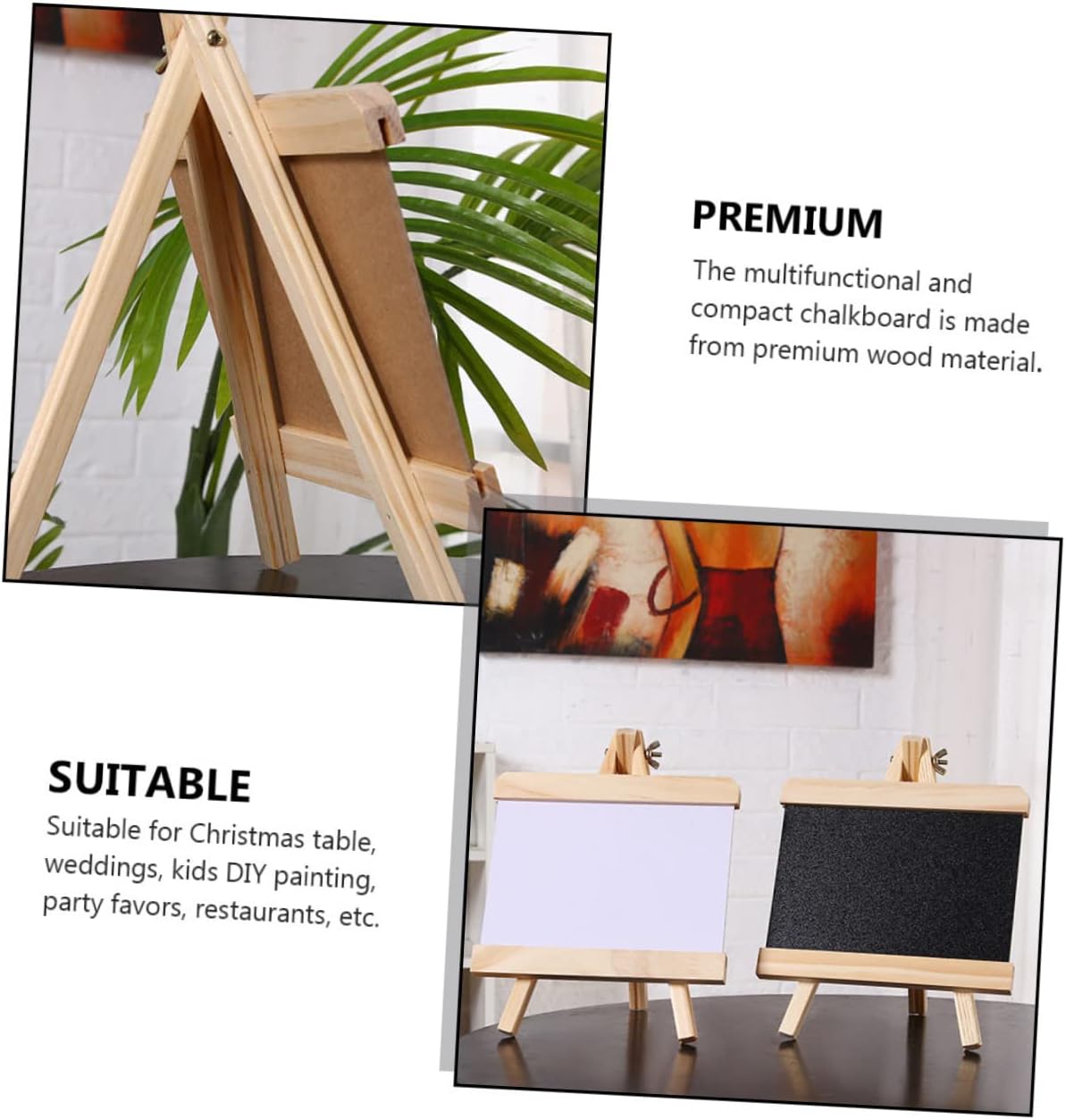 Lavagna per bambini: realizzata in materiale di legno, la piccola lavagna con staffa è abbastanza robusta, tavolo da disegno per bambini Lavagna in legno: questa è una piccola lavagna con supporto, ti consente di condividere facilmente messaggi con i tuoi ospiti, mini tavolo da disegno in legno Piccola lavagna: può essere utilizzata ripetutamente ed è facile da cancellare e pulire, anche i bambini possono usarla come lavagna per la casa Lavagna da ufficio: ideale per scrivere messaggi o avvisi, può essere utilizzata anche come decorazione per il tavolo da pranzo o come tavolo da pittura per bambini Lavagna multifunzione: pezzo straordinario e unico, altamente decorativo e per questa occasione, grandi amici che hanno esigenze simili, mini tavolo da disegno