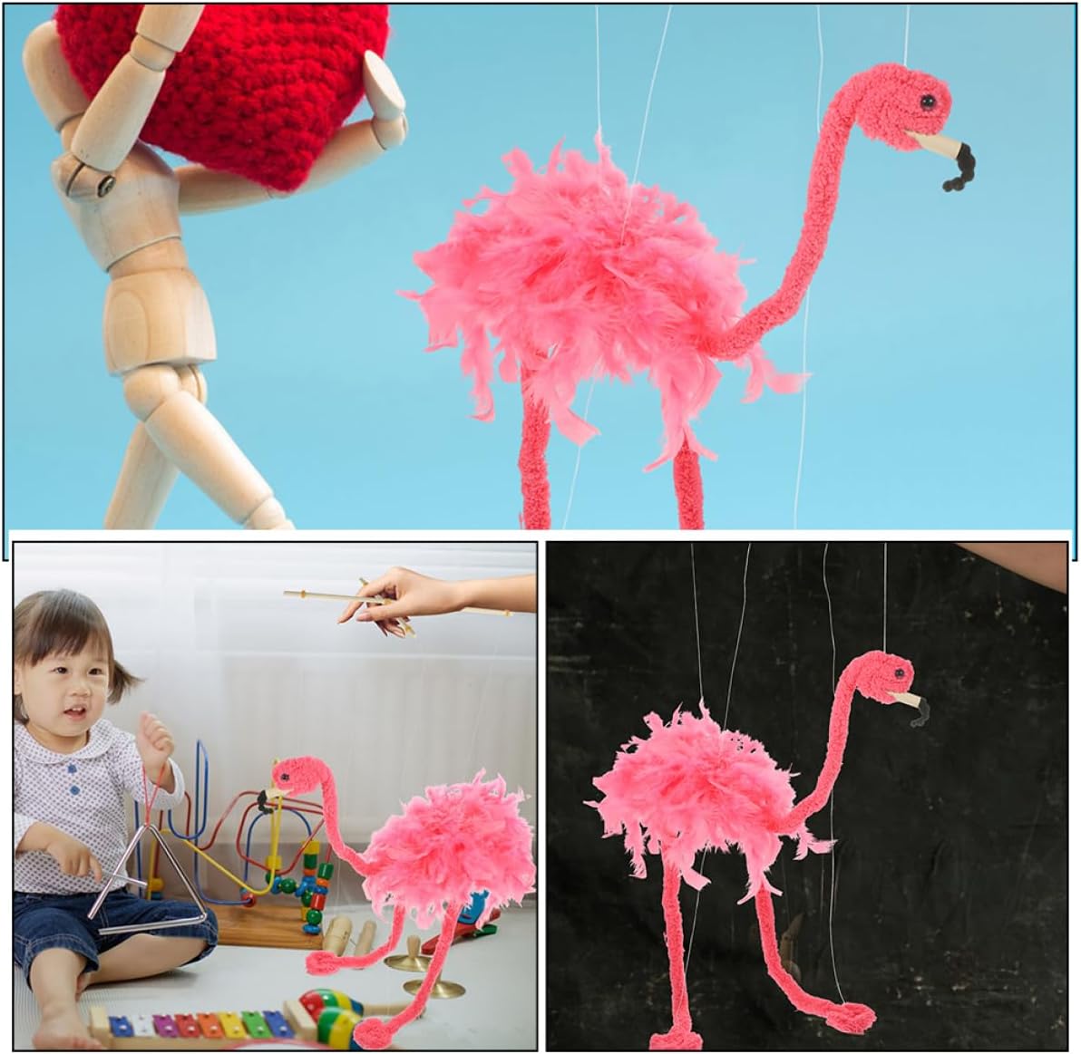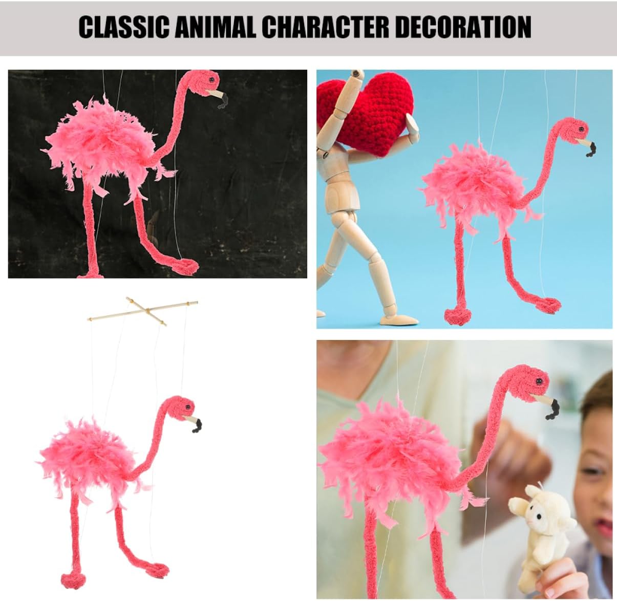 Giocattolo fenicottero: pregevole fattura con aspetto attraente, adatto per decorare il soggiorno, la festa, la caffetteria o qualsiasi occasione di festa, giocattolo di marionette Marionette per adulti: la marionetta porta più divertimento a casa quando non può giocare all'aperto, e il vivace rende la marionetta un giocattolo accattivante e interattivo Marionette: ti tengono lontano dallo schermo, giocano con i tuoi familiari, promuovono l'espressione emotiva, marionette di animali di peluche Marionette di animali: la marionetta è adorabile, creativa e significativa, avrai un'esperienza di utilizzo con essa, artigianato di figure Giocattoli marionette: caratteristici e squisiti con design a fenicottero, semplici e generosi nel design, linee morbide, marionette uniche