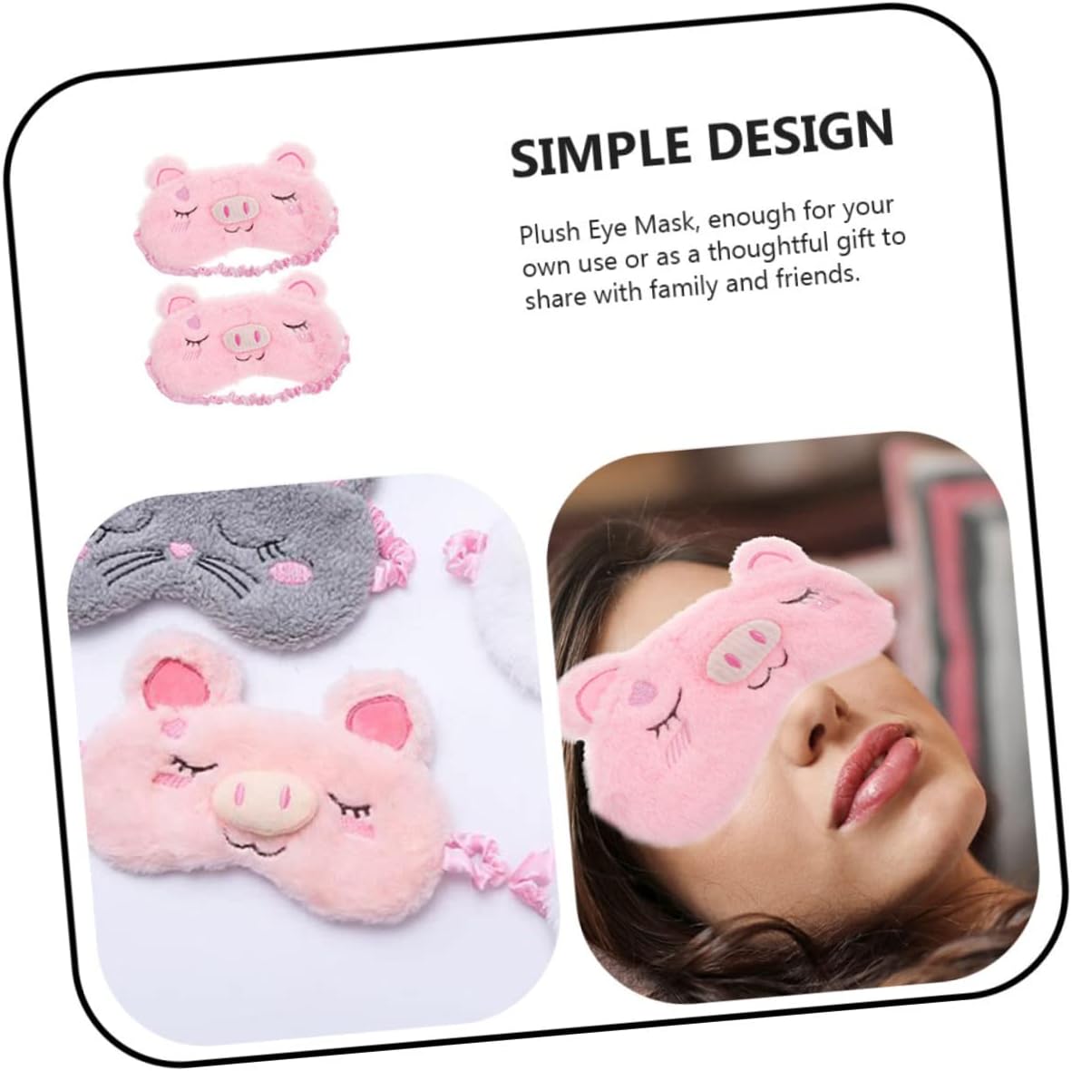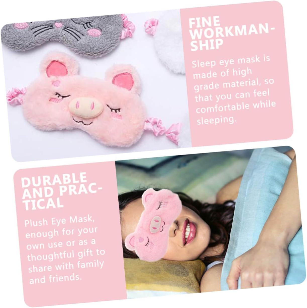 Coperture per gli occhi: design di animali dei cartoni animati, aggiungi più divertimento al sonno, adatto per pigiama party, pigiama party e pigiama party, maschera per gli occhi per dormire Maschera per dormire rosa: la maschera per gli occhi per dormire è realizzata in materiale, leggero e traspirante, piacevole per la pelle, di maiale Bende per giochi di società: la maschera per gli occhi presenta una vestibilità sagomata per un comfort completo, che copre la degli occhi, bloccando completamente la luce senza aggiungere pressione scomoda, maschere per dormire Maschera per dormire: buona ombreggiatura, può far rilassare completamente gli occhi, bloccare la luce, aiutarti ad addormentarti rapidamente, lasciare che il tuo sonno sia protetto da interferenze luminose, maschera per gli occhi Pieghe cieche per il gioco: blocca completamente la luce, aiuta la pressione oculare e attribuisce alla fatica, maschera per dormire da viaggio