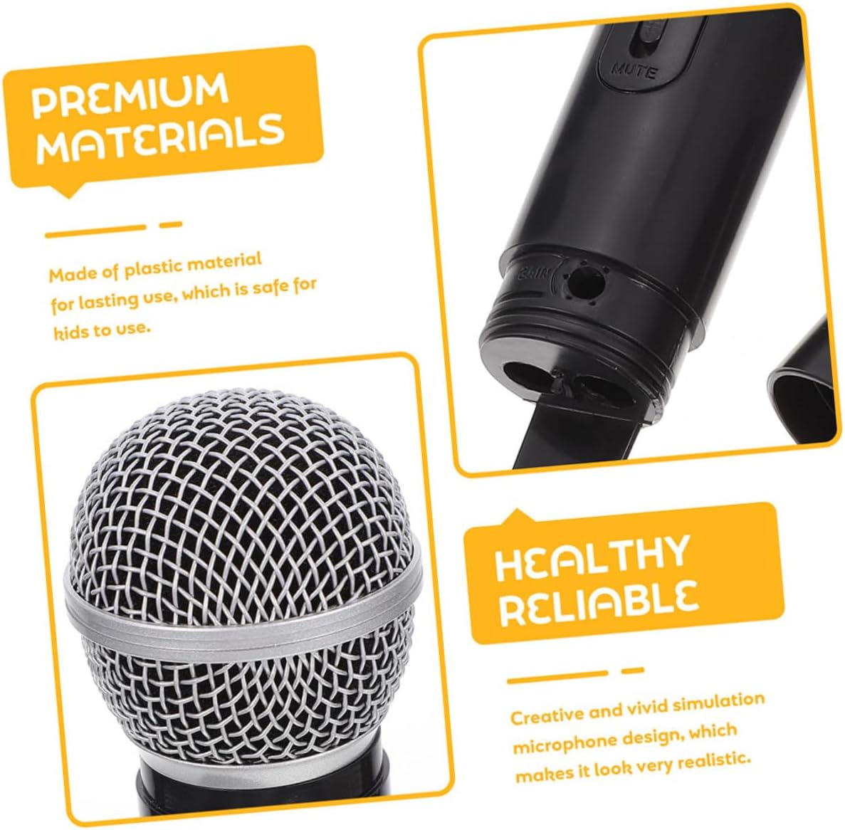 Giocattolo microfono in plastica: ha un design semplice, ma è molto pratico nell'uso, il che ti offre comodità, giocattoli con microfono simulato per bambini Giocattoli con microfono: non solo possono essere usati come giocattoli di finzione per bambini, ma possono anche essere usati come oggetti di scena, per natale e halloween. Giocattolo con microfono finto: ottimo accessorio per esercitarsi a parlare in pubblico, cantare, esibirsi in cosplay, ecc., giocattolo con microfono finto I bambini fingono: design speciale e lavorazione artigianale, è la sostituzione per il tuo vecchio oggetto di scena , accessorio per foto Microfono: leggero, non appesantisce la presa, può essere utilizzato da bambini, microfono per feste
