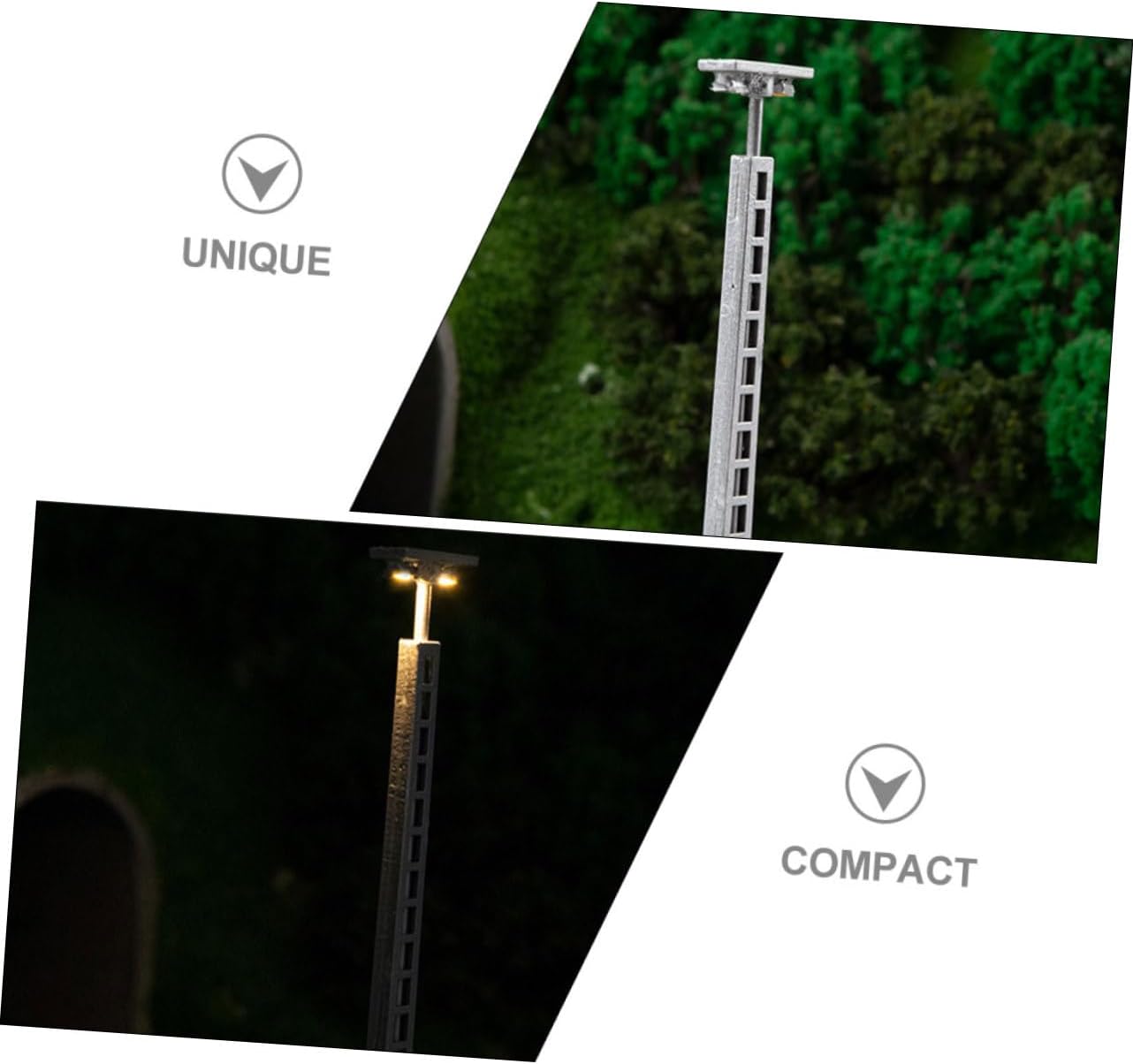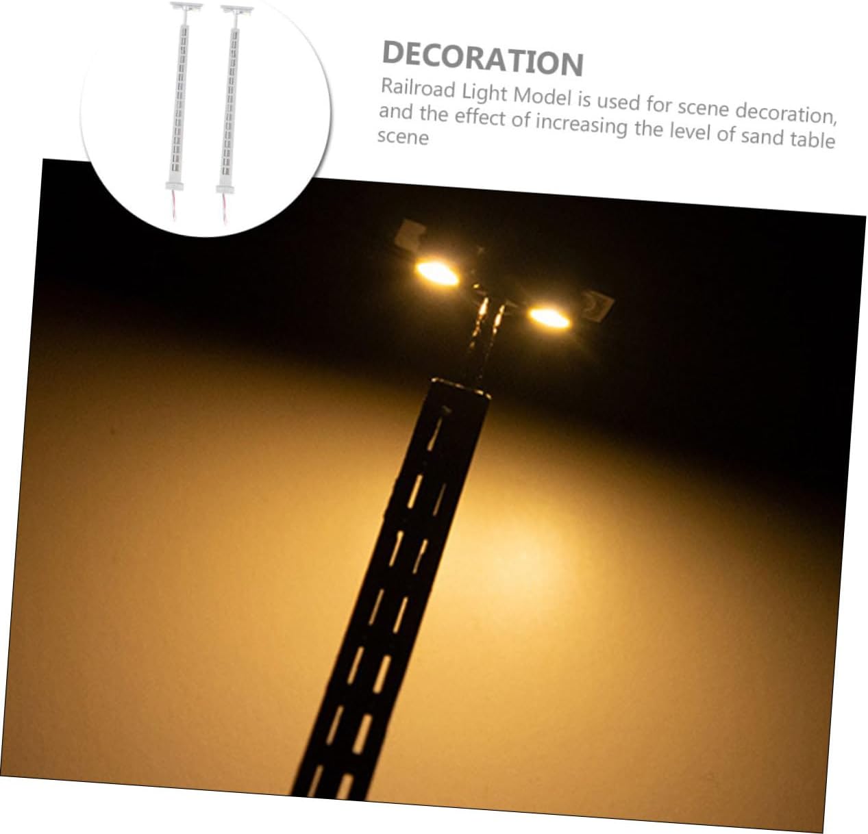 Modellino di lampioni ferroviari: può essere utilizzato come supporto fotografico per scattare bellissime foto, decorative e . Decorazioni per il layout del tavolo di sabbia: modello di lampione ferroviario, modello di treno stradale, lampioni a LED doppi, LED a doppia testa, modello di lampione stradale, un realistico modello di mini-ferrovia per l'arredamento del tavolo di sabbia, rende la tua mini casa più delicata. Lampioni stradali per case delle bambole-- 【lampione stradale da tavolo con sabbia】 lampioni modello treno ferroviario 2 pezzi lampioni ferroviari 1:87 lanterna percorso lampione treno lampione casa delle bambole giardino fatato lampioni per micro paesaggi posiziona la lampada ferroviaria nella tua mini casa o stanza per un aspetto più realistico dettaglio, rendi la mini casa più affascinante. Modello leggero del layout del treno: pregevole fattura e buon processo, il modello leggero della ferrovia non è facile da deformare e danneggiare. Micro ornamenti paesaggistici-- 【decorazioni di scene a led】 adatte per mini casa, ottima decorazione per la tua mini casa, creando scene di vita colorate.