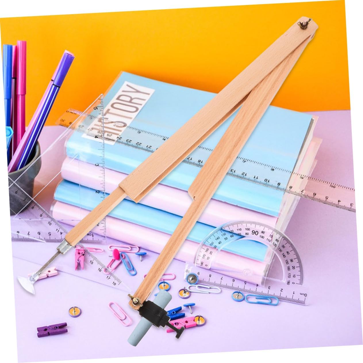 Design completo: questa bussola in legno è progettata per soddisfare tutte le tue esigenze di disegno, rendendola strumento indispensabile sia per insegnanti che per studenti Selezione flessibile del raggio: regola facilmente il raggio per disegnare cerchi di varie dimensioni, fornendo la flessibilità necessaria per diverse attività di disegno Robusta struttura in legno: realizzata in legno robusto, questa bussola è costruita per durare, offrendo un'eccellente durata e resistenza alla deformazione Aiuto didattico: ideale per uso didattico, questa bussola aiuta gli insegnanti a dimostrare in modo efficace i concetti geometrici e ad aiutare gli studenti nella loro pratica Ampia applicazione: ideale per il disegno, la lavorazione del legno e altri compiti di precisione, questa bussola è strumento versatile che può essere utilizzato in varie impostazioni