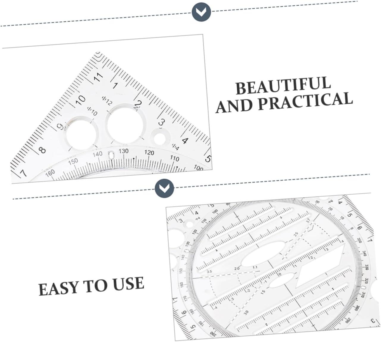 Righello per architetto: multifunzionale e versatile, può essere utilizzato per una varietà di campi, edilizia, professionale, architettura, ingegneria, materiale scolastico, ecc. Stencil da disegno: materiale plastico pratico e sicuro. semplice e comodo da usare, puoi acquistarlo per te. Stencil geometrici: adatti per design artistico, modelli di costruzione, architettura, redazione di home office, disegno. Forniture per l'architettura: ideali per la stesura e il disegno, l'architettura, il modello di costruzione e il modello di disegno. Righello da disegno: questi versatili righelli da disegno architettonico possono essere utilizzati per condividerli con la famiglia e gli amici.