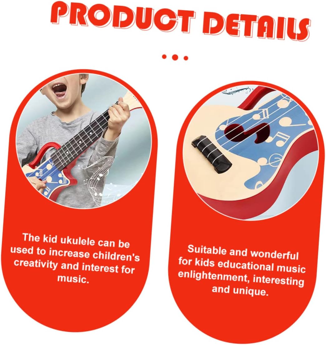 Strumenti musicali per bambini: il suono può attirare l'attenzione dei bambini, stimolare il loro interesse per la musica e migliorare il senso della musica, strumento musicale per bambini Mini chitarra per bambini: un fantastico per i bambini, sviluppa il talento musicale del tuo bambino, divertente e pratico, giocattolo ukulele per bambini piccoli. Giocattolo musicale: realizzato artigianalmente, con cura, non ferirà la mano del bambino quando suona, strumento per bambini piccoli. Strumenti musicali per bambini: con una lavorazione raffinata, questo giocattolo ukulele per bambini è realistico e molto sicuro da suonare per i bambini, giocattolo chitarra per bambini Giocattolo musicale per bambini piccoli: un buon giocattolo musicale educativo precoce, un giocattolo per l'asilo o per l'educazione della prima infanzia, una chitarra giocattolo per bambini