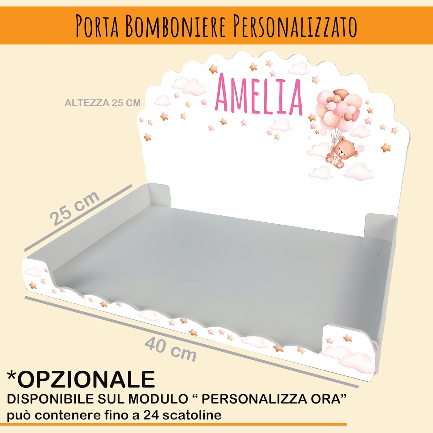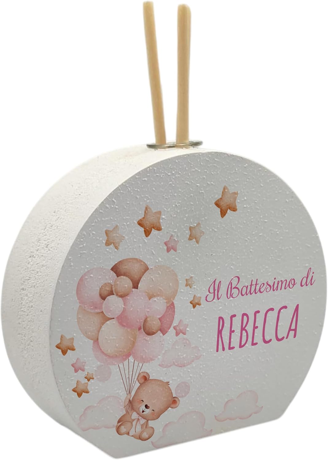 🎀 Bomboniera tenera per battesimo femmina – Diffusore con orsetto che vola tra palloncini e nuvole, ideale per un evento dolce e raffinato. 🔸 Set completo 2 pezzi – Include 2 diffusori profumati con 6 bastoncini, scatola personalizzata e bigliettino coordinato. 🎨 Personalizzazione facile – Aggiungi nome, data e dedica direttamente su Amazon cliccando “Personalizza ora”. 🧸 Design a tema orsetto – Con palloncini rosa e stelle, perfetto per bambine e atmosfere da sogno. 🌿 Finitura buccia d’arancia – PVC resistente con superficie opaca e delicatamente texturizzata. 📦 Bomboniera pronta da regalare – Arriva già con bigliettino stampato e scatola abbinata. 📏 Dimensioni ideali – 9x8x3 cm: compatto, profumato, perfetto come ricordo del battesimo.