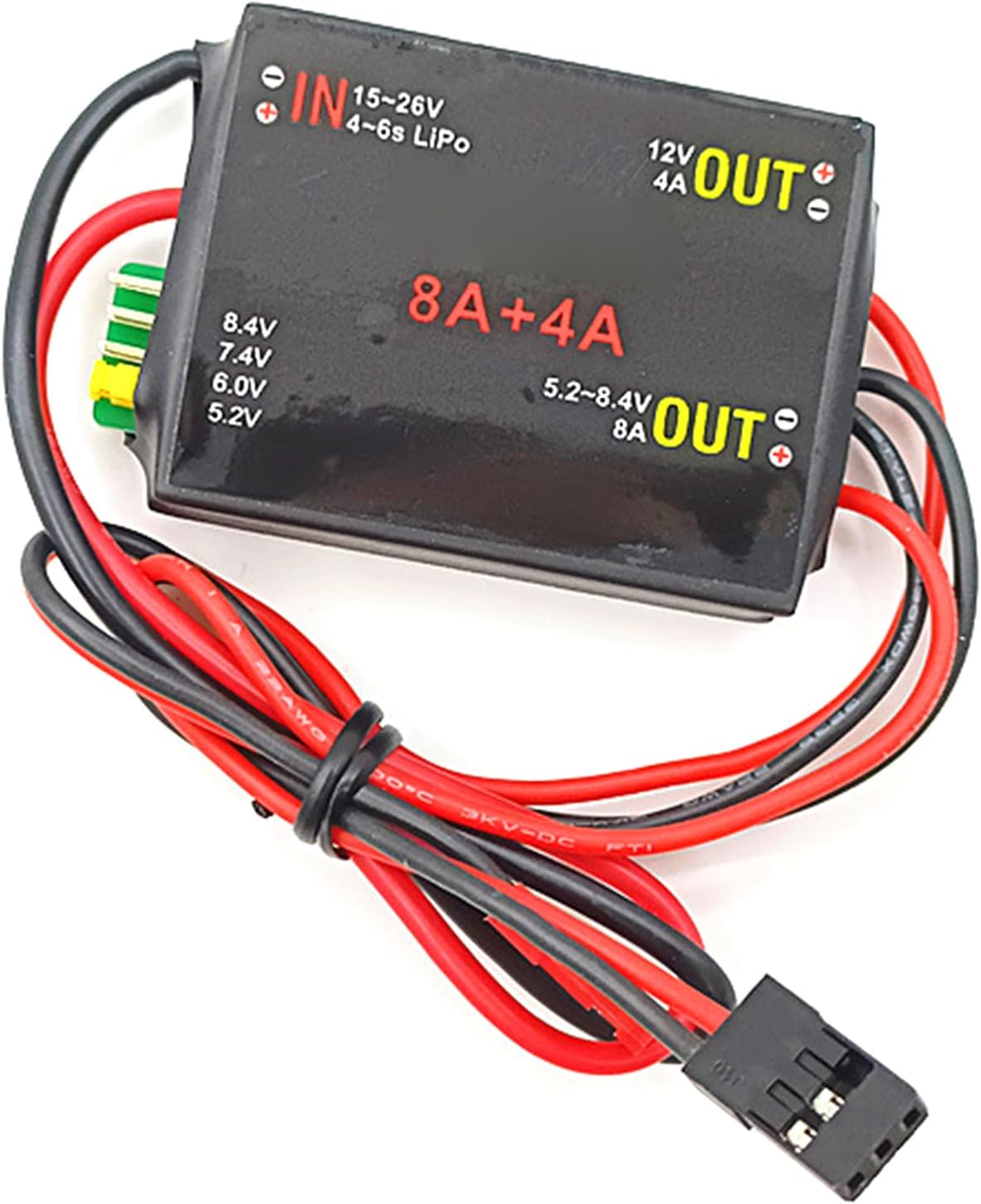 Utilizzando chip regolatore di tensione ad alta efficienza, l'efficienza di conversione supera il 90% Le tensioni di uscita possono essere selezionate in quattro marce (5.2/6.0/7.4/8.4V), che possono soddisfare l'uso di apparecchiature di modello di aeromobili di varie specifiche di tensione. Doppia uscita, può trasportare una corrente maggiore. Con protezione da sovracorrente, cortocircuiti in uscita protezione contro il surriscaldamento e altre funzioni. Interruttori esterni, facile da aprire e chiudere UBEC.