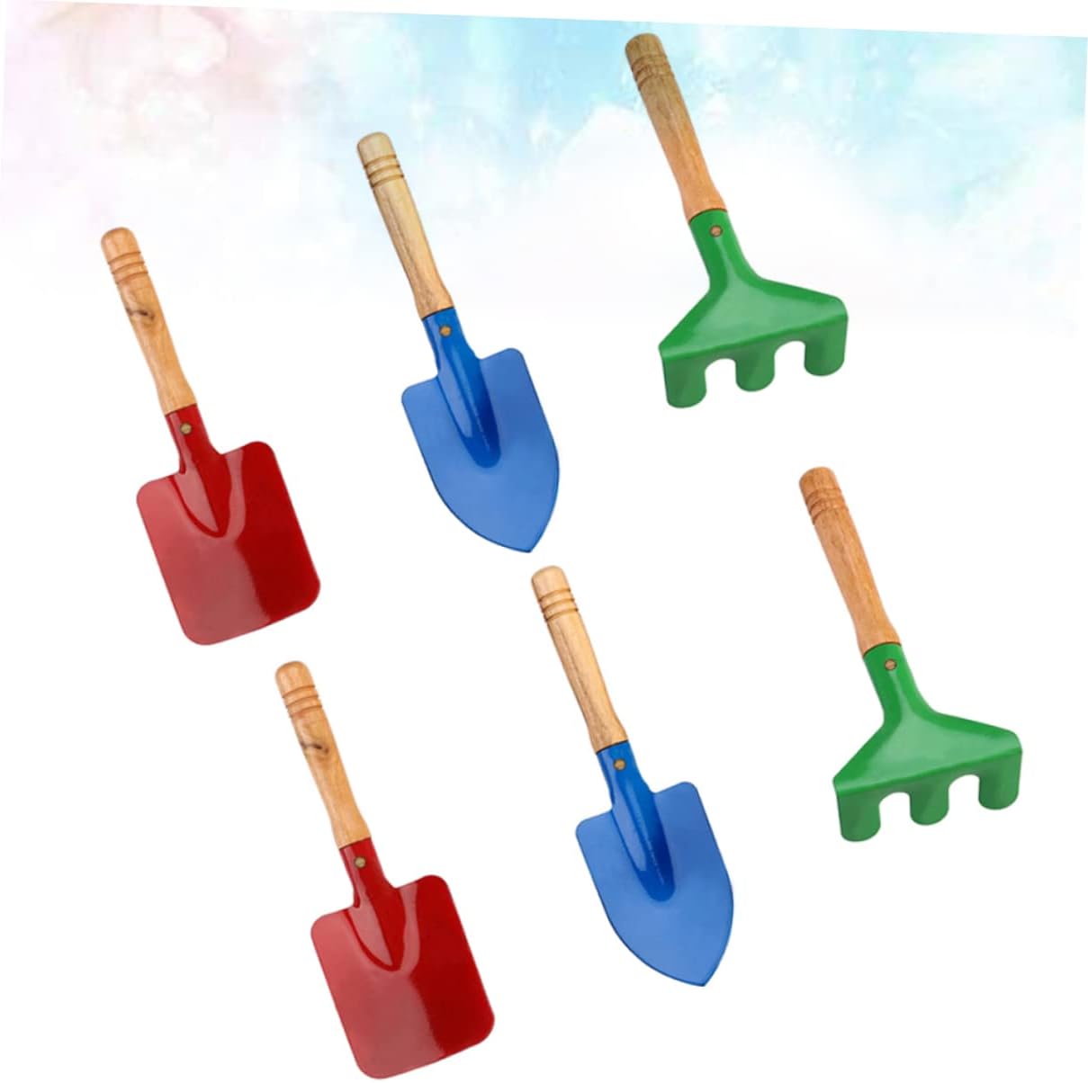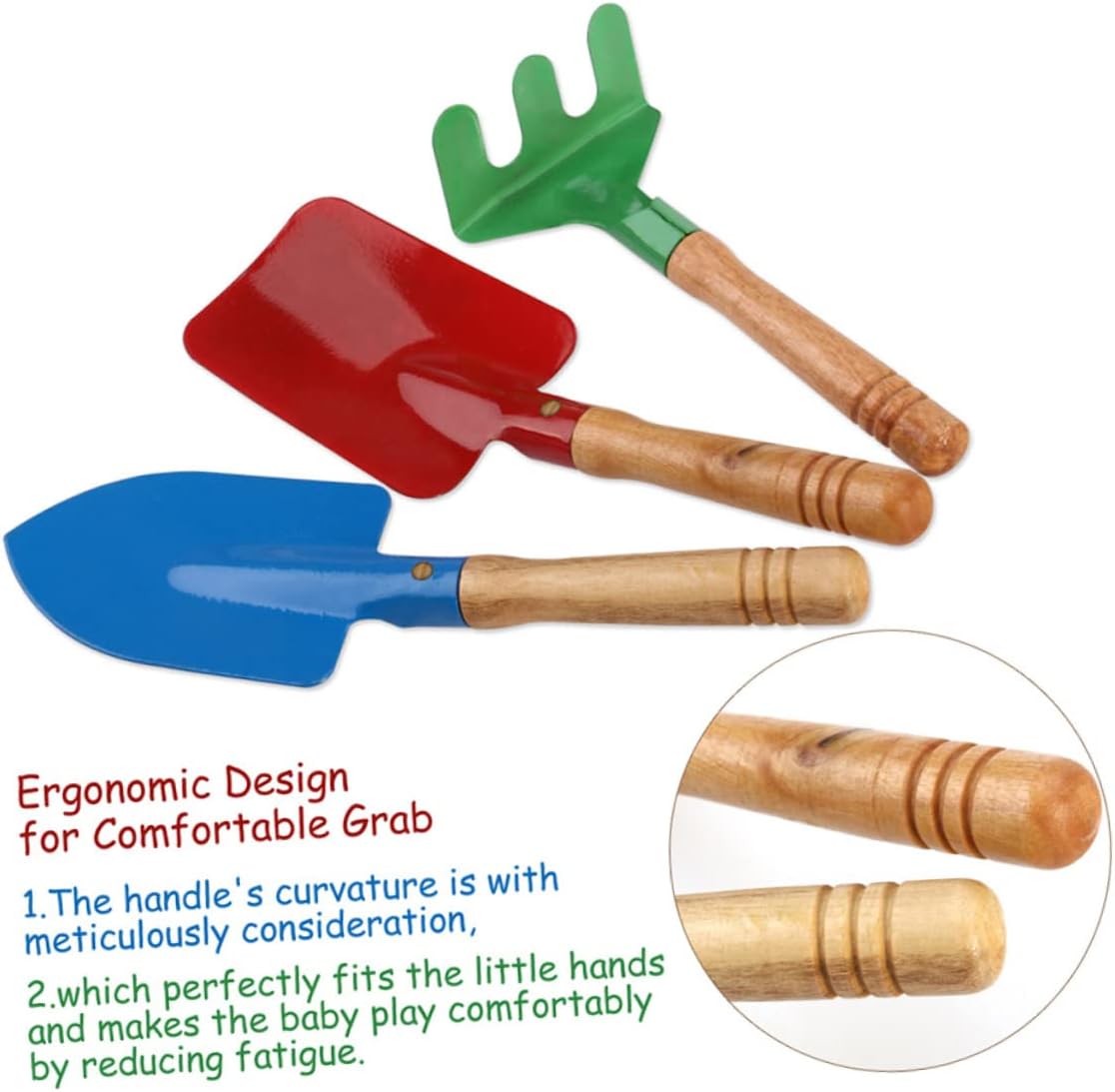 Mini attrezzi da giardino: ogni set include una cazzuola, un rastrello e una pala, giocattolo da giardino Giocattolo con attrezzi da giardino: facile da tenere e molto sicuro, mini attrezzo da giardino Attrezzo da giardino in legno: realizzato con materiale per un uso duraturo, giocattolo da giardino Attrezzo da giardino per bambini: dotato di manico in legno antiscivolo, colori vivaci e design portatile, giocattolo da giardino. Attrezzi da giardino colorati: questi attrezzi sono super e divertenti per i tuoi ragazzi o ragazze, giocattolo da giardino