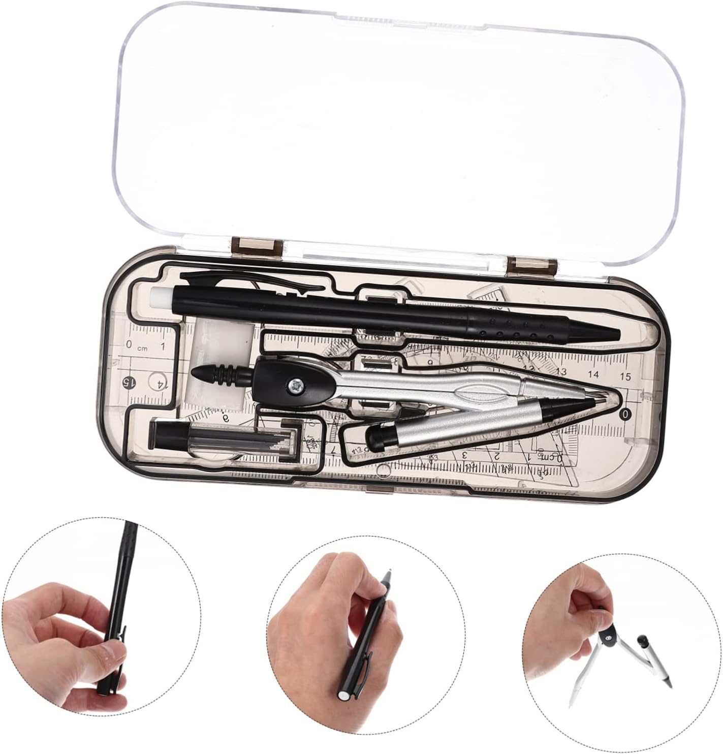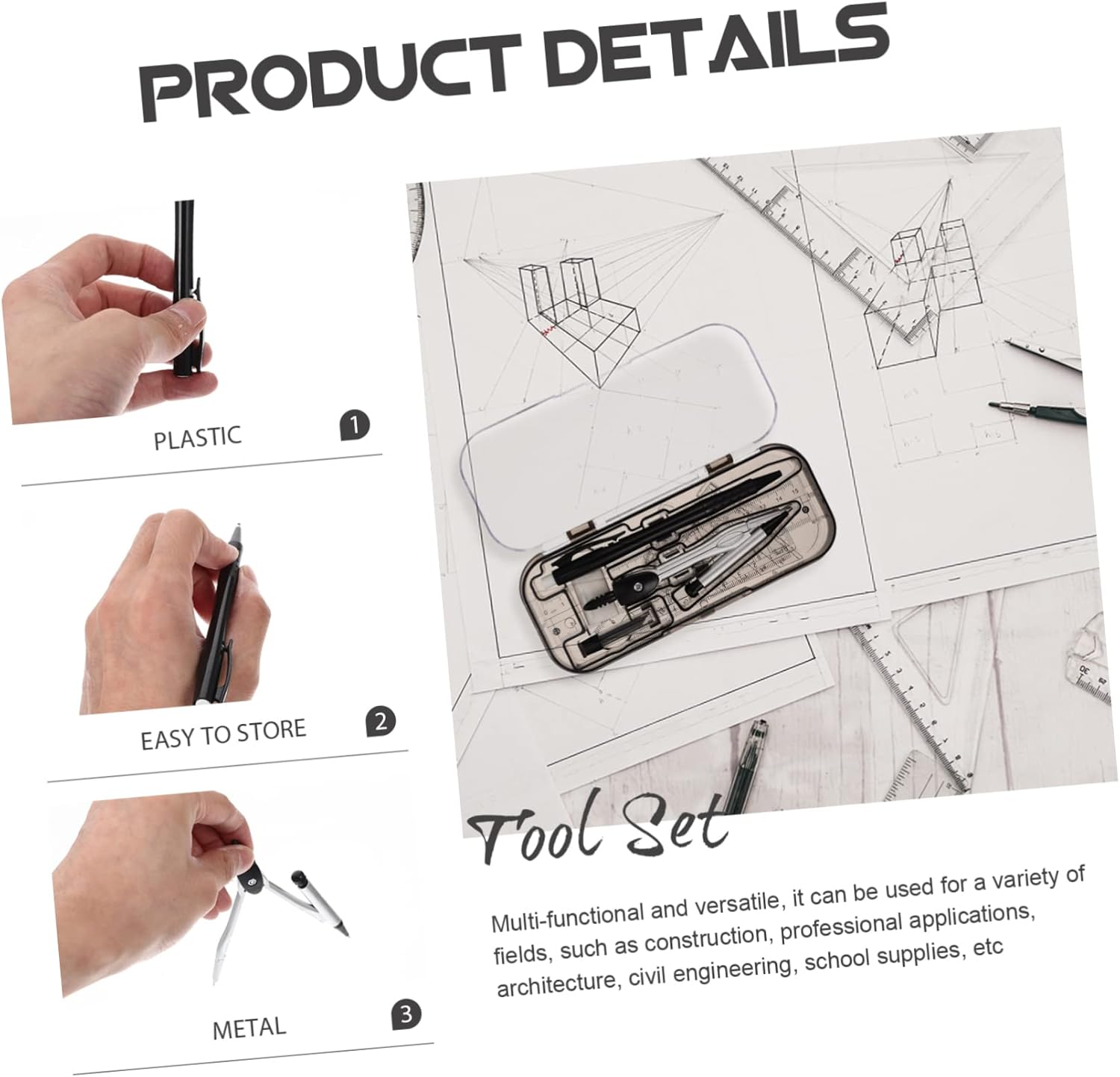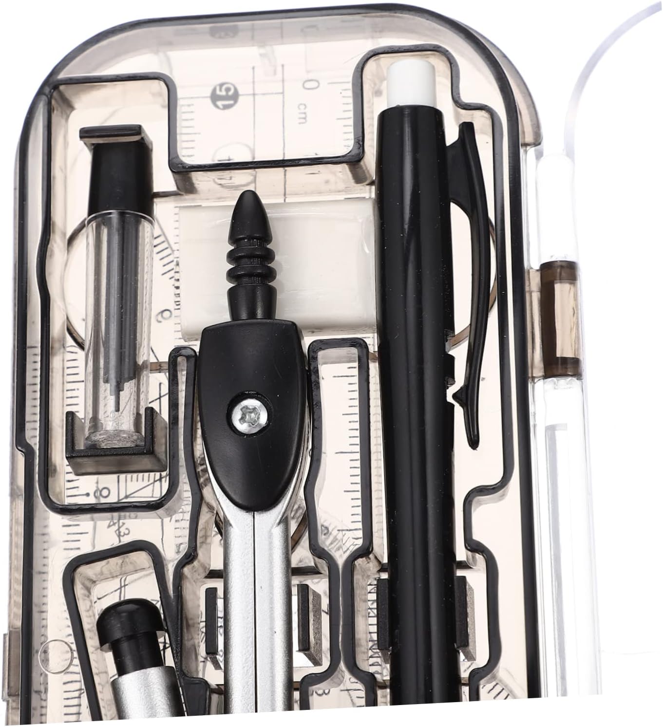 Compasso con goniometro e triangolo: un valido aiuto per artisti, ingegneri, designer, architetti, studenti e altri, kit compasso compatto La scuola deve avere: un buon set per insegnanti e studenti, che un buon aiuto quando si misura qualcosa, righelli di misurazione Strumento di disegno di progettazione: ti aiuta a migliorare l'efficienza lavorativa e a risparmiare tempo con progetti di disegno e misurazione, cancelleria per studenti Kit di disegno tecnico: leggero e portatile, molto comodo da portare ovunque tu voglia, materiale per ufficio Kit di disegno professionale: puoi acquistare facilmente questo set di kit matematici pratici presso uno strumento di misurazione matematica