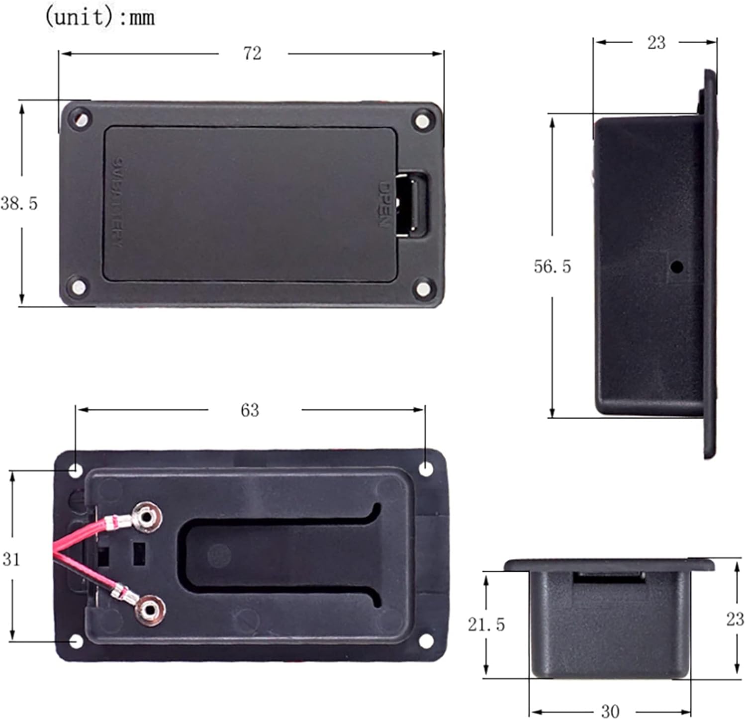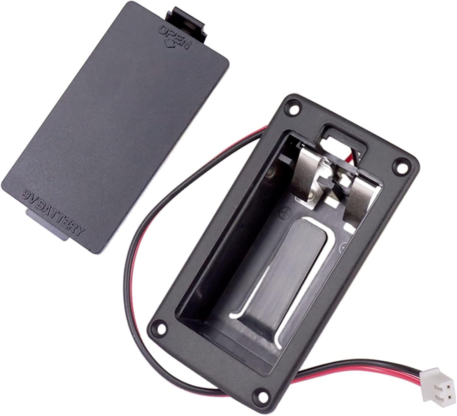 Scatola batteria per basso elettrico (la batteria non è inclusa). Adatto alla maggior parte delle batterie standard da 9 V. Utilizzato per molte applicazioni (incluso il cablaggio della chitarra). Perfetto per quella scatola della batteria mancante o rotta, rimuovi semplicemente la scatola della batteria rotta.