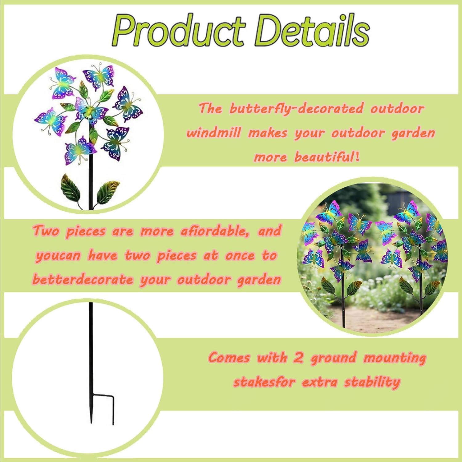 【Mulino a vento a farfalla】Questo set da 2 mulini a vento presenta un delizioso motivo a farfalla che aggiungerà colore al tuo spazio esterno a ogni leggera rotazione. 【Resistente agli agenti atmosferici】adatto per uso esterno, la girandola può funzionare normalmente in tutti i tipi di condizioni atmosferiche e resistente alle intemperie, senza preoccupazioni per pioggia, neve, gelo o nevischio. 【Design raffinato】La girandola a farfalla ha un design raffinato, che aggiunge un tocco di eleganza al tuo cortile e al tuo giardino. 【Facile da installare】Le parti della girandola del mulino a vento da giardino sono molto facili da installare, basta stringere tutte le parti e inserirle nel terreno o nel prato 【Ampia applicazione】 La girandola può essere utilizzata non solo come decorazione esterna del cortile e del giardino, ma anche come regalo perfetto per la famiglia e gli amici, decorazione per le vacanze di Natale.