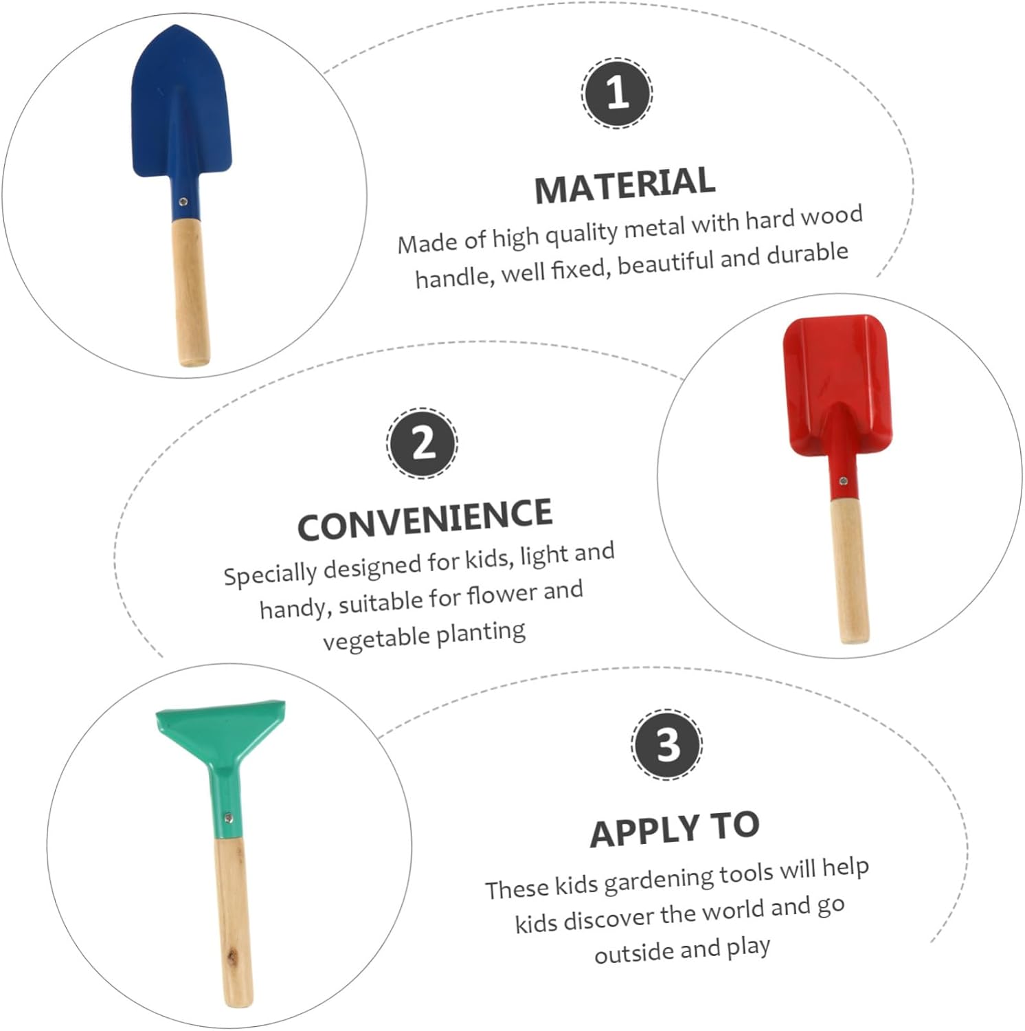 Attrezzi da giardino per : realizzati in metallo con manico in legno , ben fissati, belli e accessori da giardino per Attrezzi da giardinaggio per : questi attrezzi sono fantastici e adorabili, i colori vivaci li rendono i preferiti persone, attrezzi da giardinaggio per Attrezzo da giardino per : perfetto per manine dei più , non troppo affilato, non troppo pesante e senza bordi, cazzuola per piantare per Apprendimento del giardinaggio per : manico in legno è robusto, , non facile da staccare mani, giocattolo da giardinaggio per Attrezzi da scavo per : pratici e belli, questi 3 attrezzi da giardino sono per i amano giocare in giardino