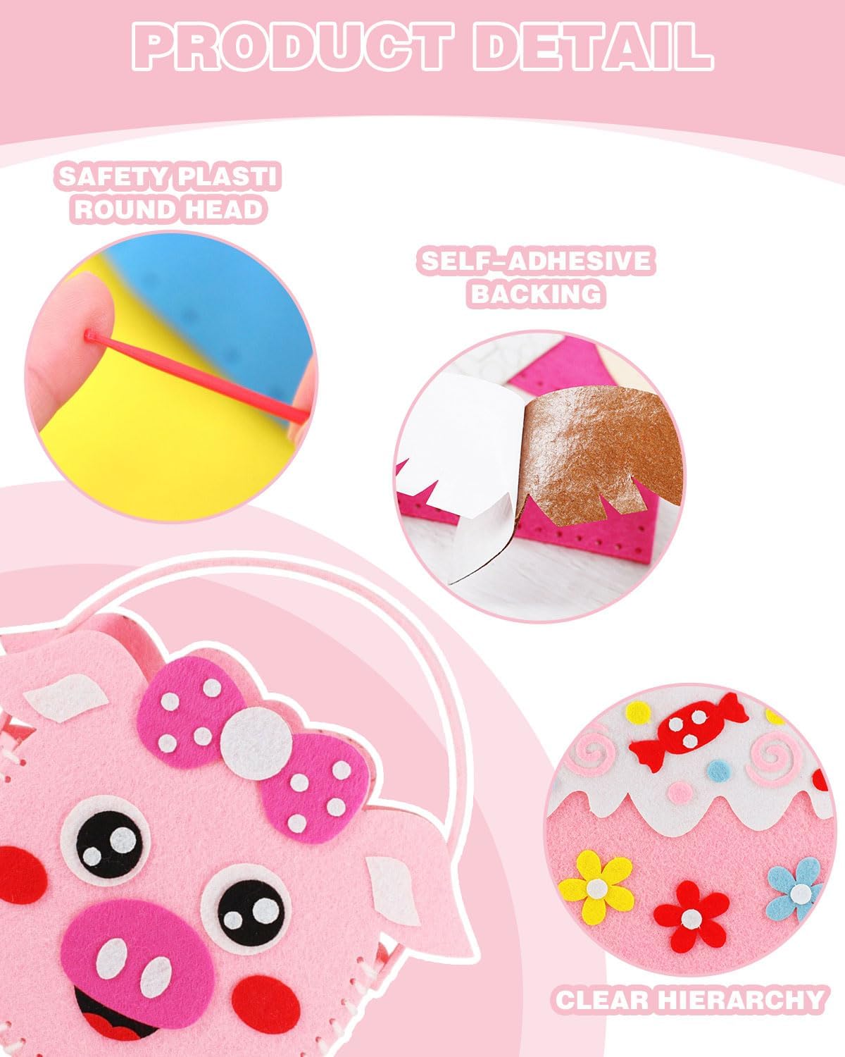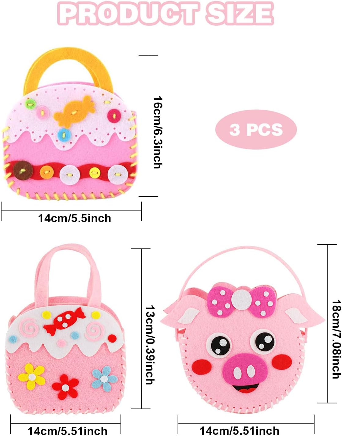 Super kit da cucito per bambini: la confezione contiene 3 borse tote pretagliate. Un numero sufficiente di kit da cucito per bambini per principianti, abbastanza per giocare con amici e familiari! I bambini possono scegliere tra una varietà di colori e fantasie, e le tasche rifinite possono contenere piccoli oggetti come caramelle, snack, piccoli asciugamani, ecc. Kit da cucito di alta qualità per bambini: questo kit per lavoretti di Halloween è realizzato in feltro di alta qualità, sicuro, atossico, morbido e confortevole al tatto. Le borse di diverse forme, dai dolci colori caramella, sono uniche e bellissime. Inoltre, siamo dotati di aghi in plastica, ideali per il cucito sicuro dei bambini. 8 Kit creativo per bambini facile da realizzare: il mio primo kit da cucito è facile da realizzare, tutti i tessuti sono dotati di forme preforate e pretagliate, adatto a principianti, giovani artigiani e a chi ama cucire e collezionare decorazioni in feltro. Basta seguire le istruzioni per creare una graziosa borsetta! Cucito educativo per bambini: Questa graziosa borsa in feltro non solo tiene i bambini lontani dai prodotti elettronici, ma li aiuta anche a sviluppare creatività, pazienza e immaginazione, migliorando l'attenzione, la concentrazione e le capacità pratiche. Un kit da cucito perfetto per bambini dai 5 anni in su! Set di lavoretti per bambini ampiamente utilizzato: lascia che i bambini realizzino le proprie borse! I kit da cucito per bambini sono regali fatti a mano ideali per amici, familiari, bambini e studenti per compleanni, festa dei bambini, Capodanno e Natale. I kit di cucito educativi possono essere utilizzati anche come giocattoli educativi per l'istruzione a casa, progetti scolastici e corsi estivi.