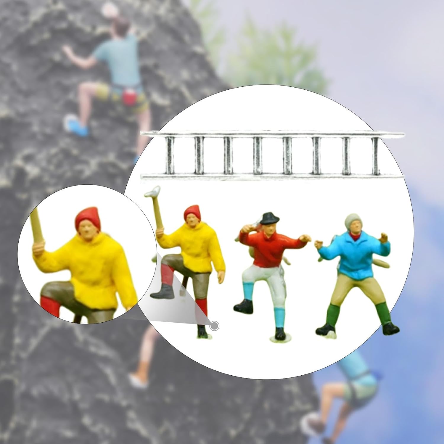 【La confezione include】: 1 scala e 3 mini personaggi con diverse tipologie e pose. Possono aiutarti a popolare le tue scene di modellismo. 【Ottimi regali】: i piccoli diorami sono regali da collezione ideali per bambini e adulti in occasione di compleanni e festival, sono belle aggiunte alla collezione di qualsiasi appassionato di modellismo 【Materiale di alta qualità】: le miniature di persone che si arrampicano su roccia sono realizzate in resina, hanno una lavorazione e dettagli raffinati, non si rompono facilmente e garantiscono un utilizzo prolungato. 【Ampie applicazioni】: i modelli di figure in miniatura 1:64 sono adatti per giocattoli da costruzione di scenari da tavolo di sabbia, modelli architettonici, decorazioni paesaggistiche in miniatura, accessori per case delle bambole, ornamenti da scrivania, ecc. 【Modelli in scala 1:64】: miniature di scalatori di montagna in scala 1/64, ideali per creare scene in miniatura realistiche a tema sportivo, ottimi oggetti di scena per la fotografia e per il layout.