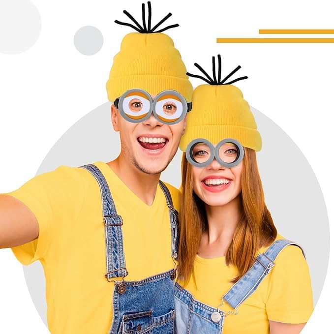 Brille ist sehr unbequem und starr, aber auch wenn man die Brille auf die Stirn hochschiebt erkennt man den Minion sofort. Gelbes T-Shirt dazu, Verkleidung fertig.